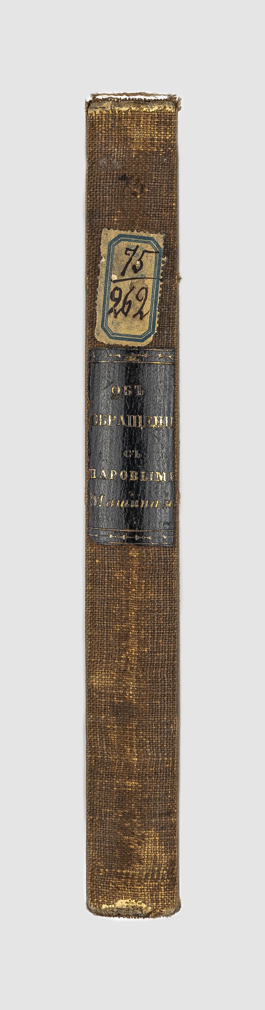 Золототисненое заглавие «Об обращении с паровыми машинами» (на корешке перепл.).