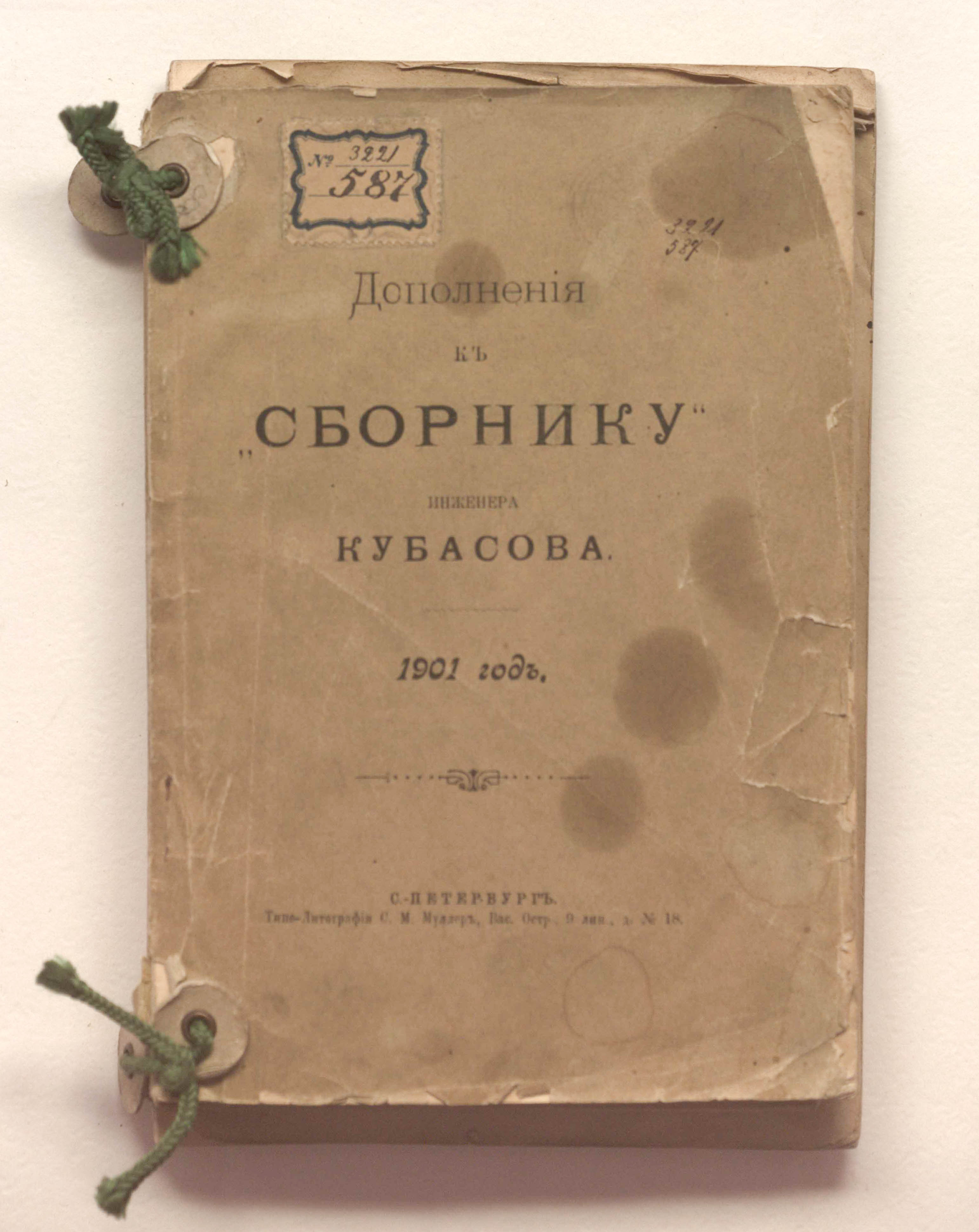 Дополнения к "Сборнику" инженера Кубасова. — Санкт-Петербург : Типо-литография С. М. Муллер, 1901. — [41], 11 с. ; 19х13,5 см.