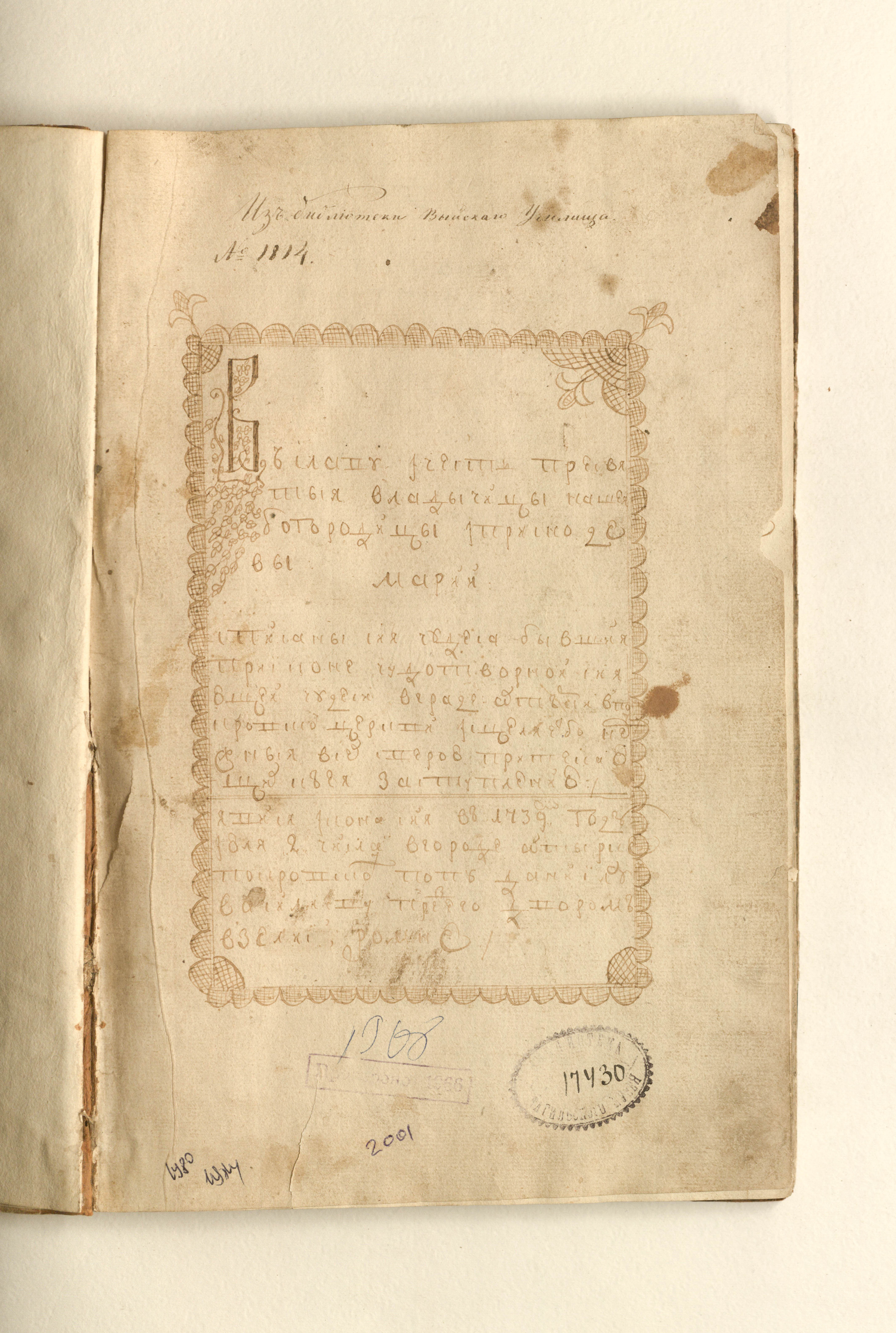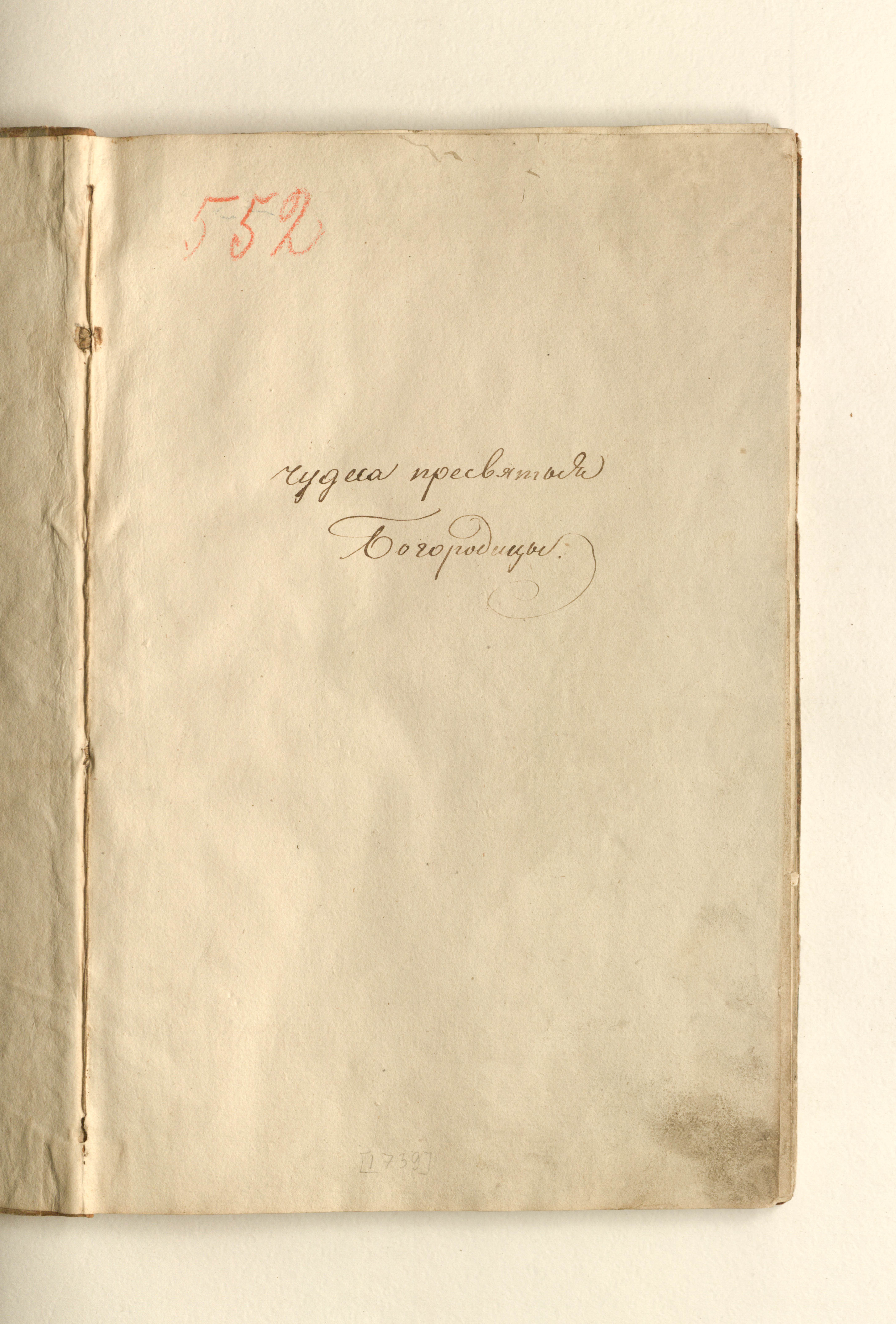Чудеса пресвятые Богородицы : [о чудесах Ахтырской иконы Божьей матери, явленной в 1739 году от рождества Христова] : [рукопись], [1751]. — 50 с. ; 31,5х20 см.