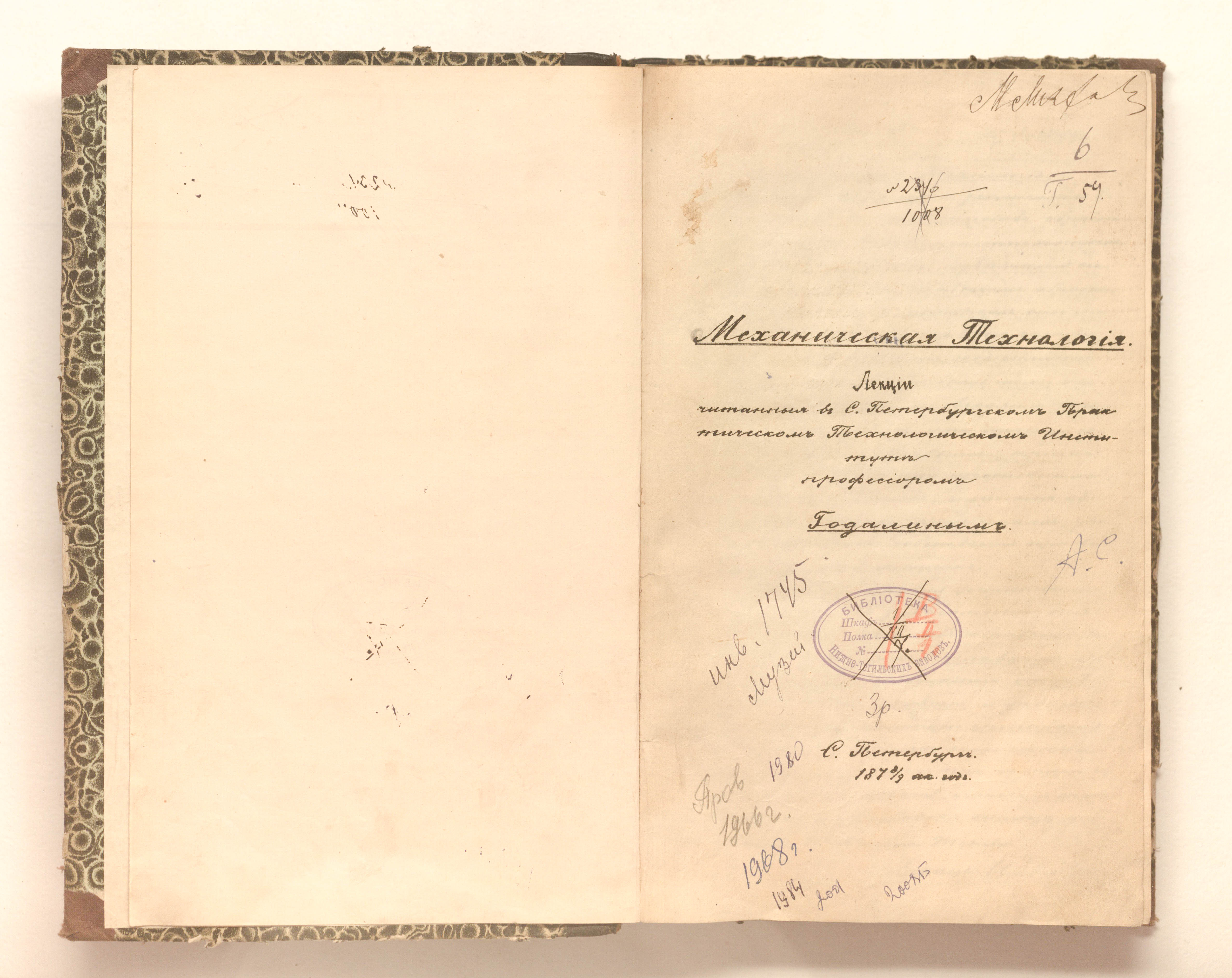 Механическая технология : лекции, читанные в Санкт-Петербургском практическом технологическом институте профессором Гадолиным / А. В. Гадолин. — Санкт-Петербург : Литогр. Технолог. ин-та, 1878-1879. — 395 с. ; 27,5х17 см.