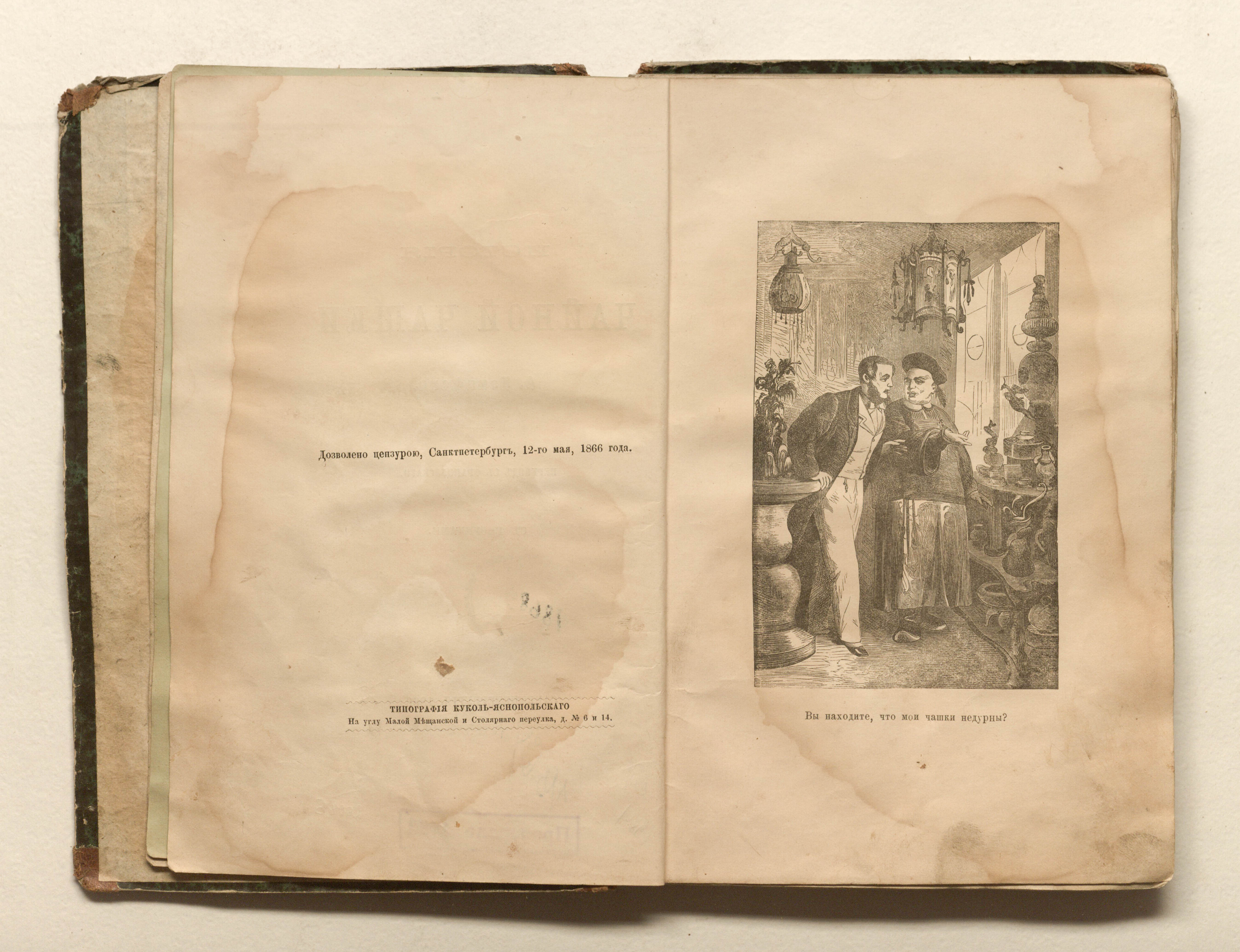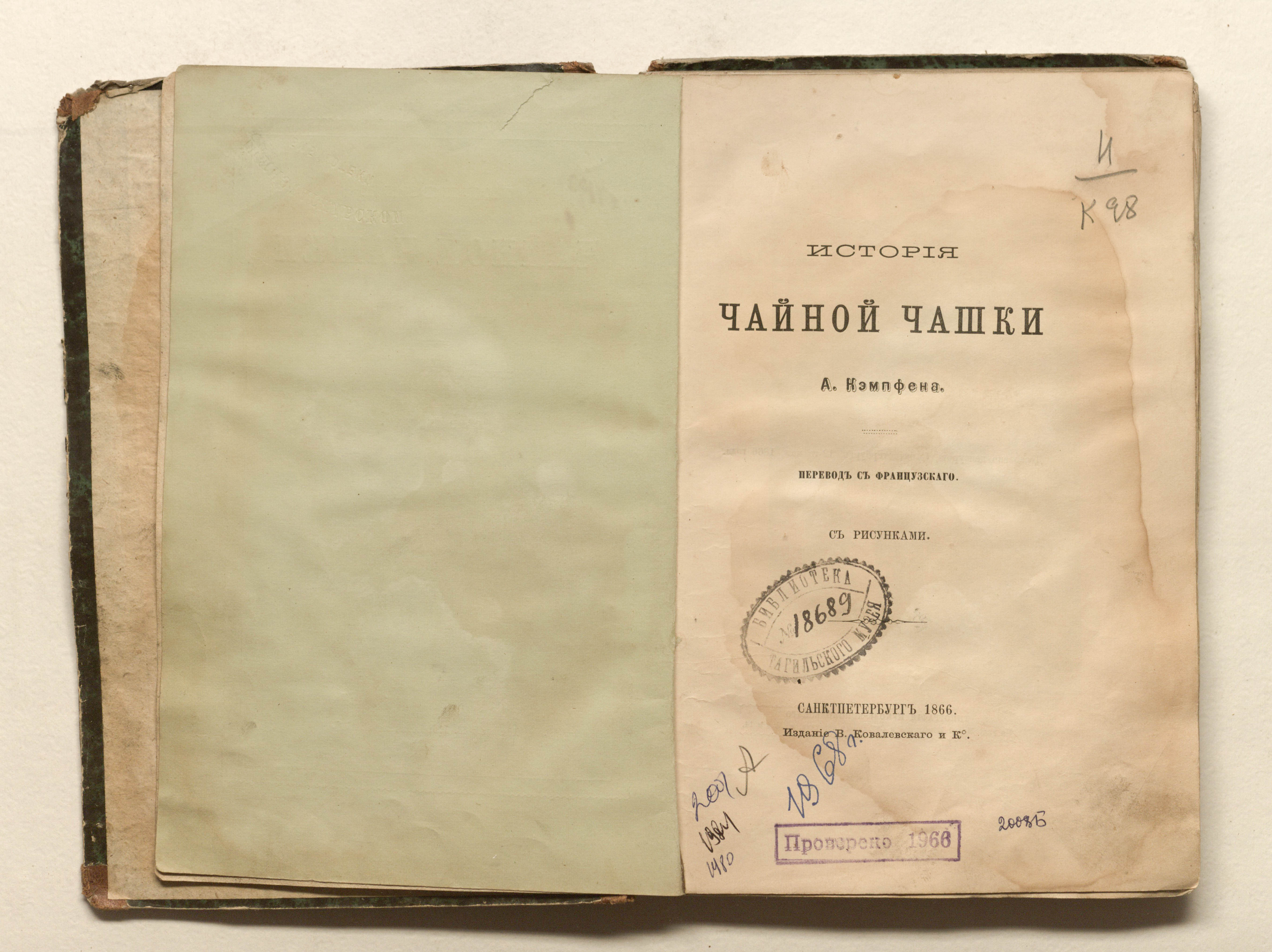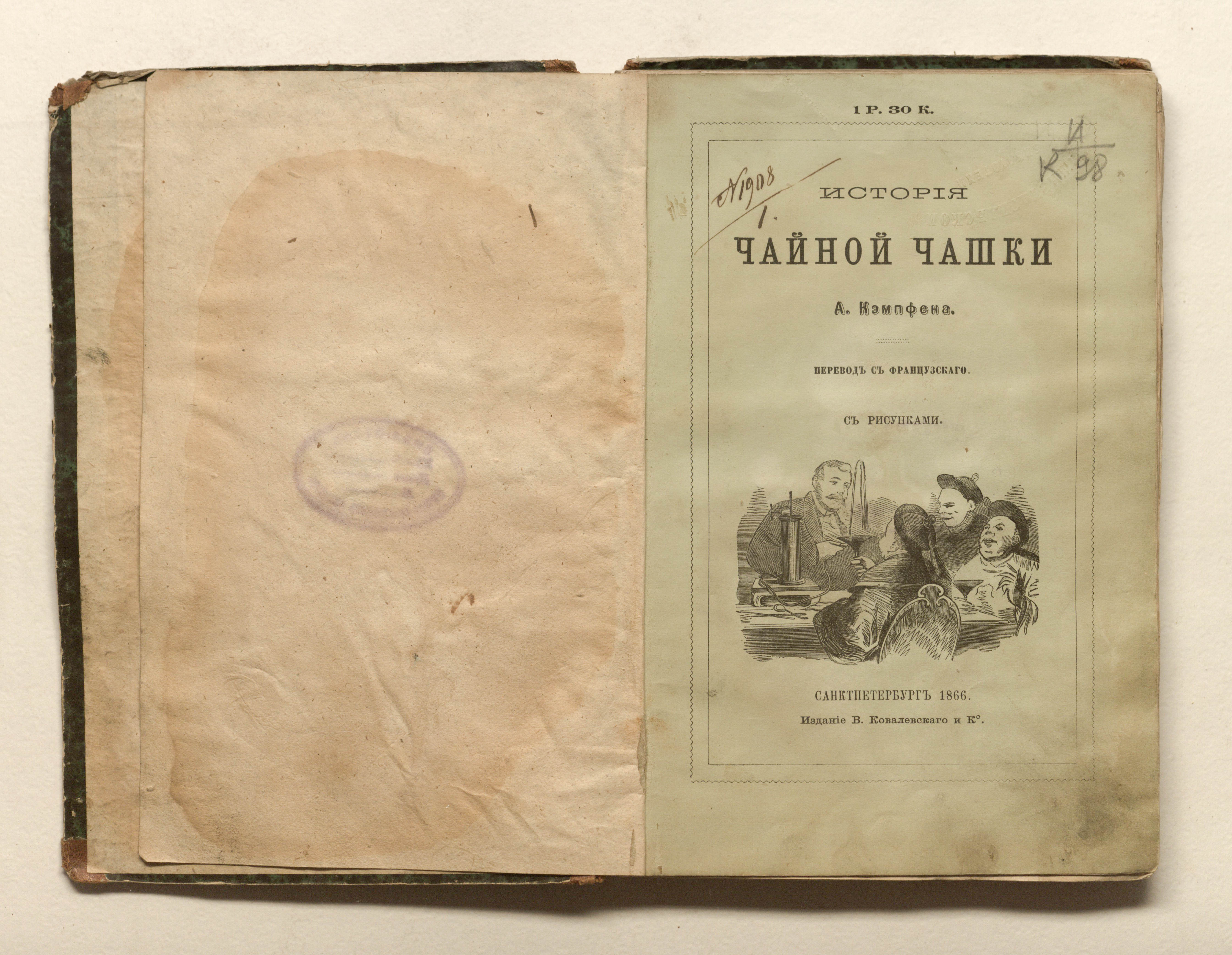 История чайной чашки : [повесть] / [соч.] А. Кэмпфена ; пер. с французскаго. — Санкт-Петербург : издание В. Ковалевского и К°, 1866. — 150 с. : 7 л. ил. ; 22х14,5 см.