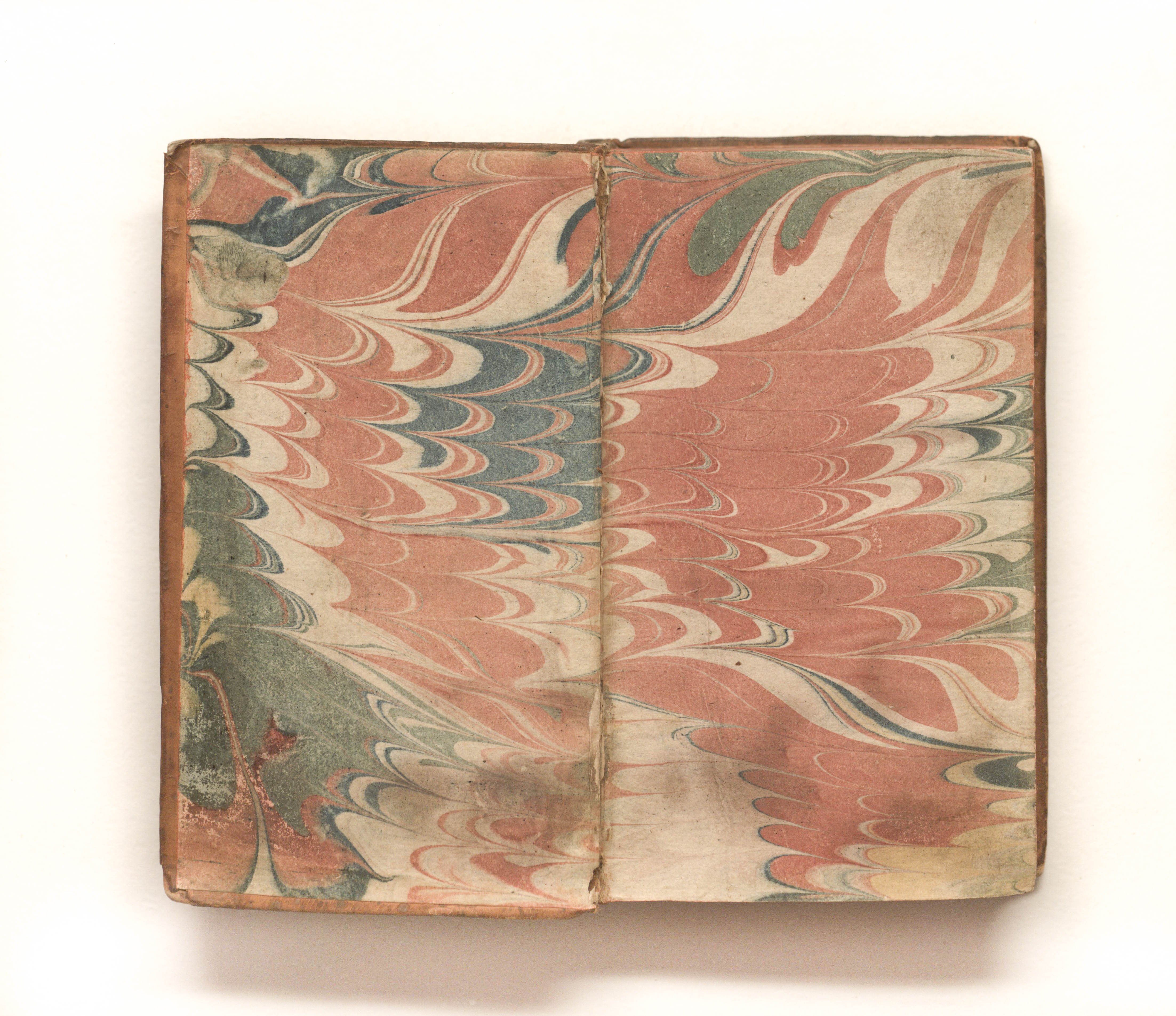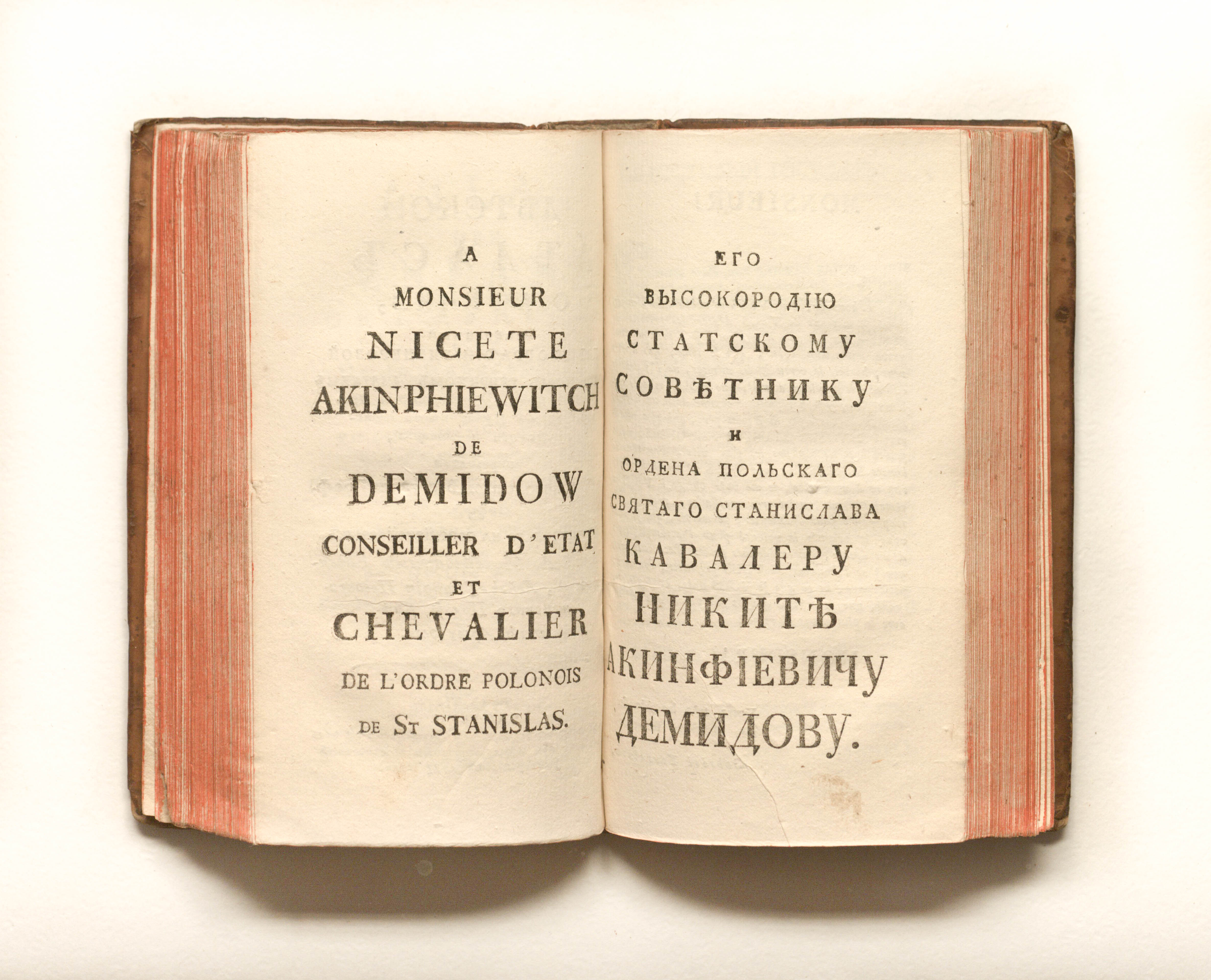 Книга в цельнокожаном владельческом переплете. Форзацы украшены бумагой с рисунком «павлинье перо». Обрез тонированный. Бумага верже.