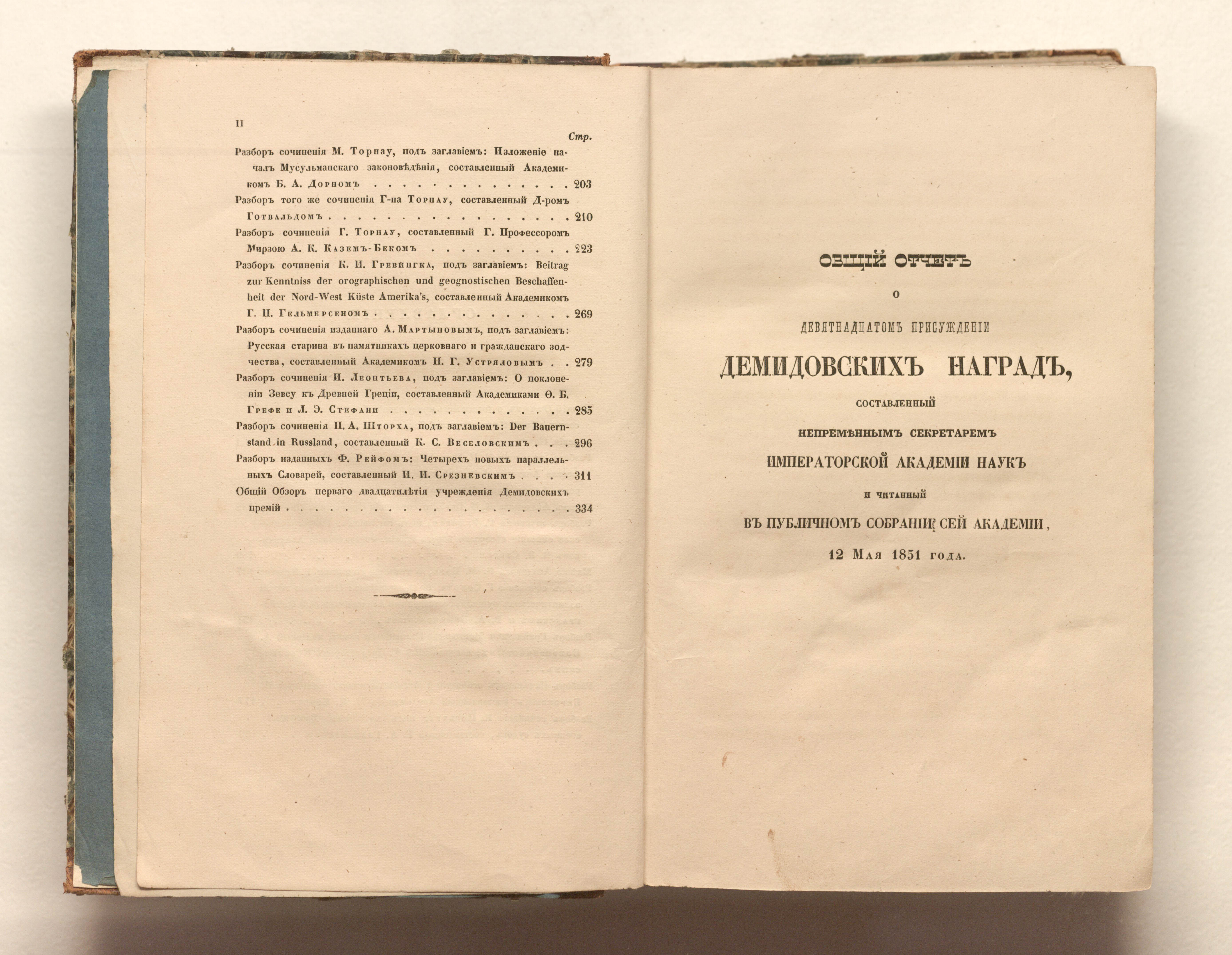 Двадцатое присуждение учрежденных П. Н. Демидовым наград. 17 апреля 1851 года. - Санкт-Петербург : в типографии Императорской Академии наук, 1851. – 354 с. ; 22,5х15 см.