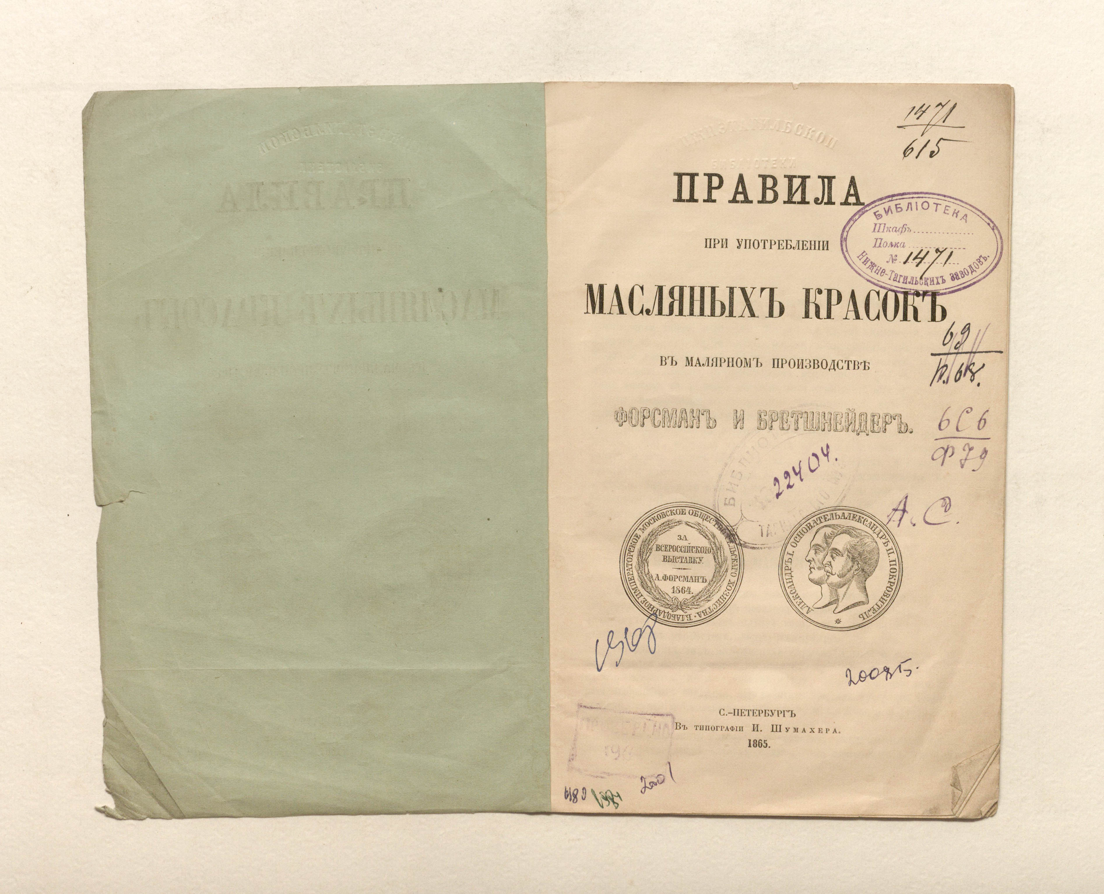Правила при употреблении масляных красок в малярном производстве / Л. Форсман, Бретшнейдер. — Санкт-Петербург : в тип. И. Шумахера, 1865. — 16 с. ; 20,7х13,5 см.