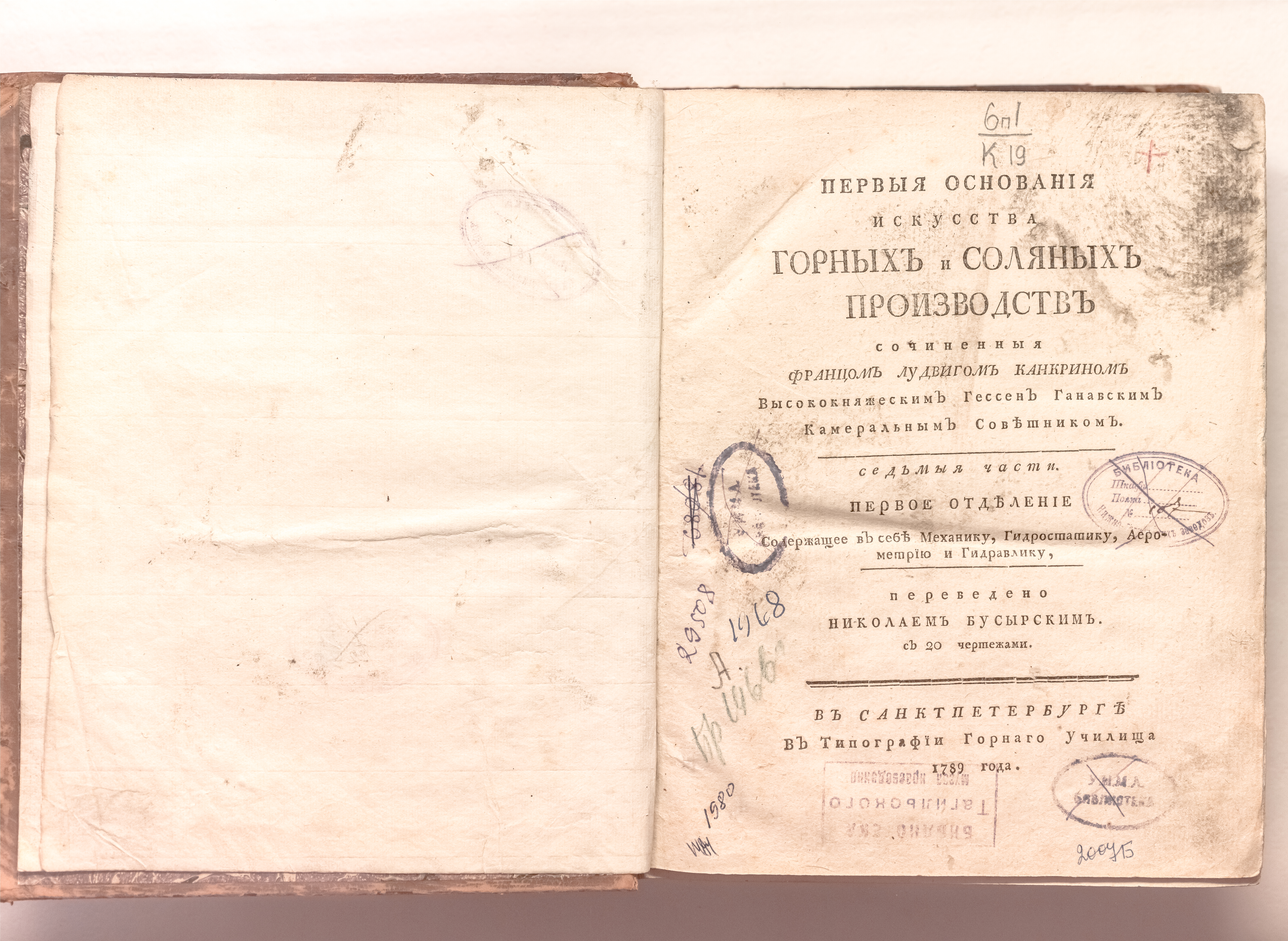 Первыя основания искусства горных и соляных производств, сочиненныя коллежским советником Францом Людвигом Канкриным