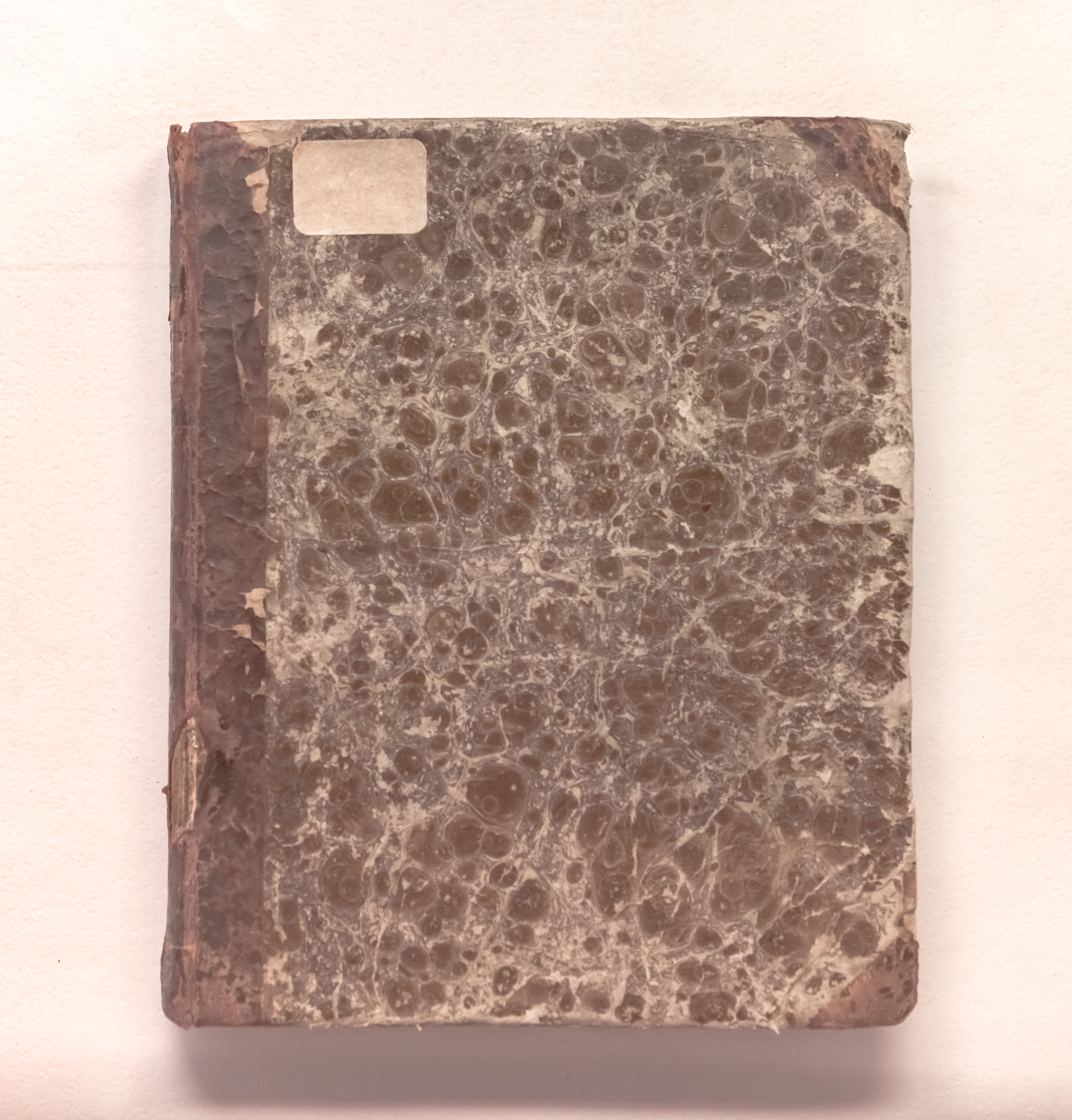 Книга в полукожаном владельческом переплете. Крышки переплета обтянуты бумагой с рисунком «под мрамор». Бумага верже.