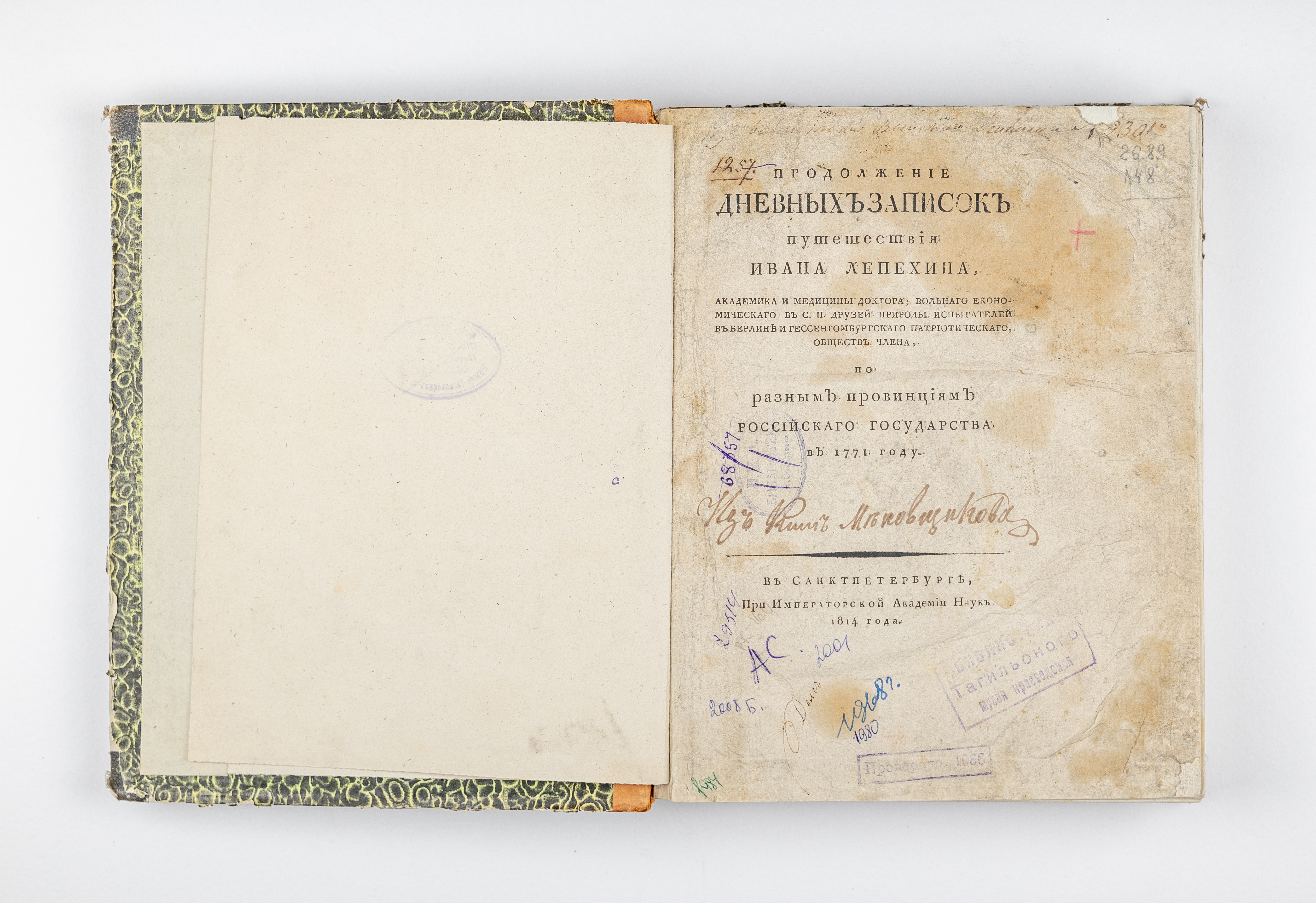 Ч. 3. Продолжение дневных записок путешествия Ивана Лепехина … – Санкт-Петербург : При Имп. Акад. наук, 1814. – [2], 28, 368 с., [11] с. : ил. ; 25,5х20 см.