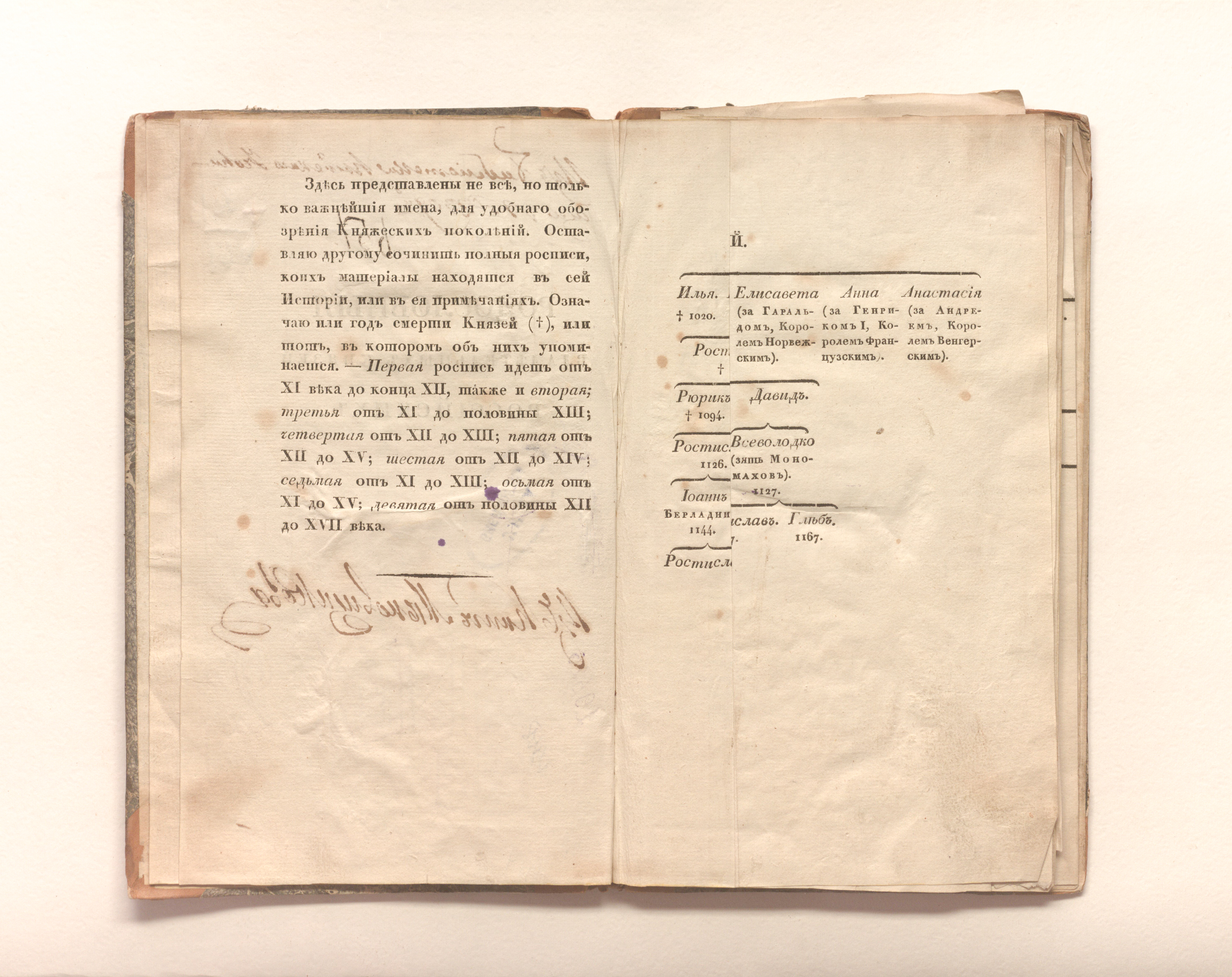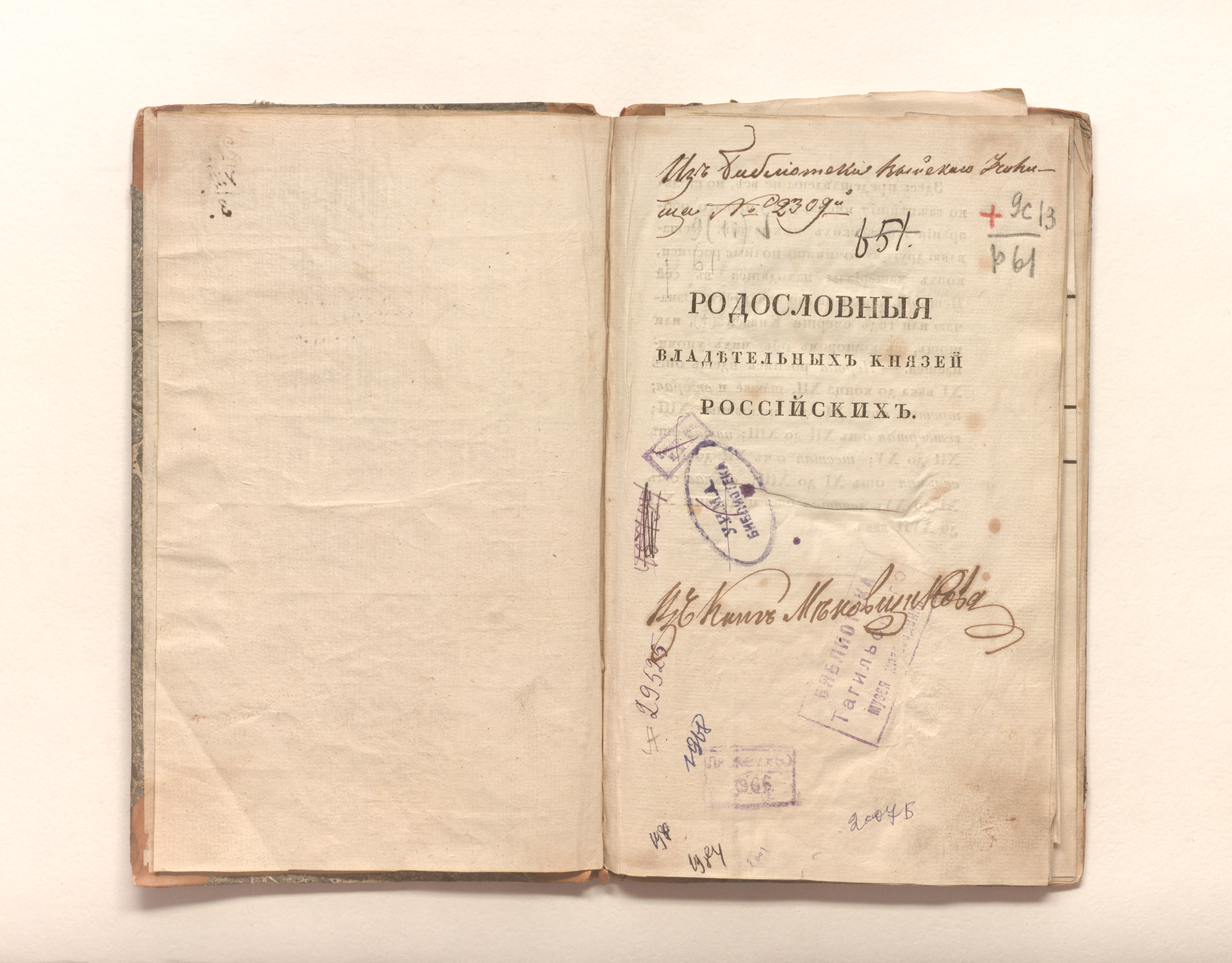 Карамзин, Николай Михайлович (1766-1826). История Государства Российскаго. Родословныя владетельных князей российских / Н. М. Карамзин. — Санкт-Петербург : Печатано в Военной типографии Главнаго штаба его императорскаго величества, 1819. — [2] с., IX л. табл. ; 23х14 см.