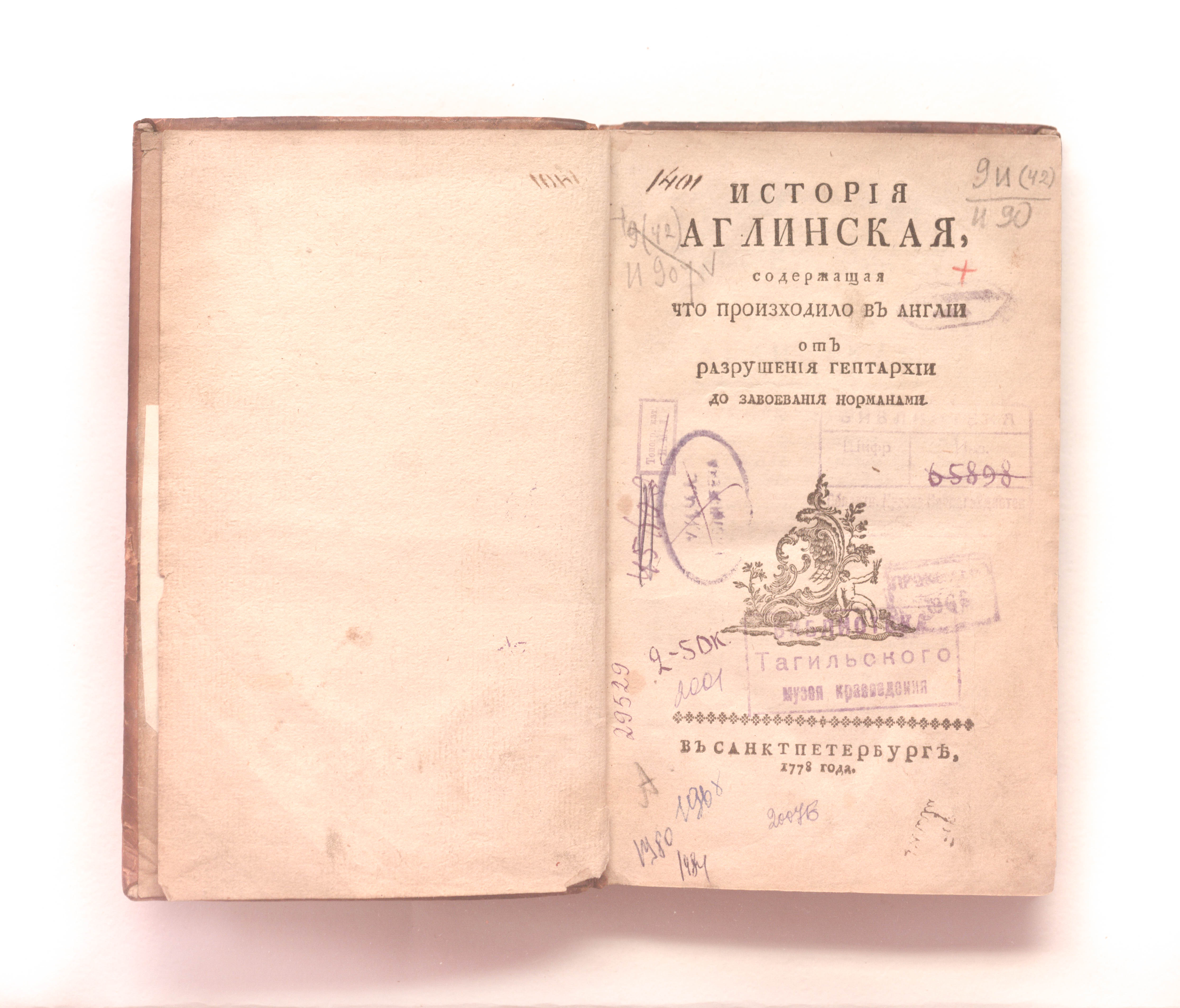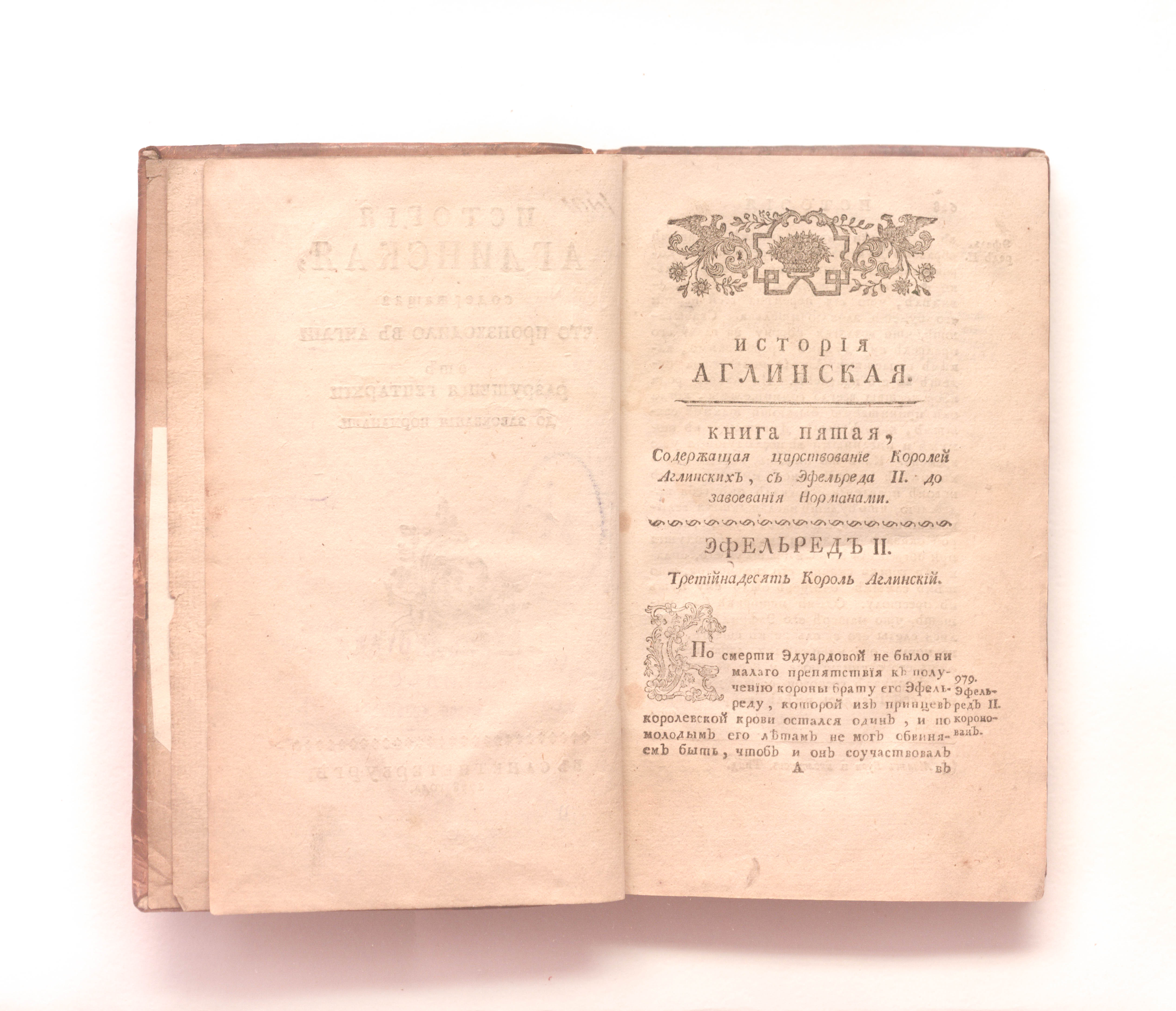 Рапен де Туара, Поль (1661-1725). История аглинская, содержащая что произходило в Англии от разрушения гепархии до завоевания Норманами: [в 6 кн]. Кн. 5. — Санкт-Петербург : Имп. Акад. Наук, 1778. — [2], 627-838, [1] c. ; 20х12 см.