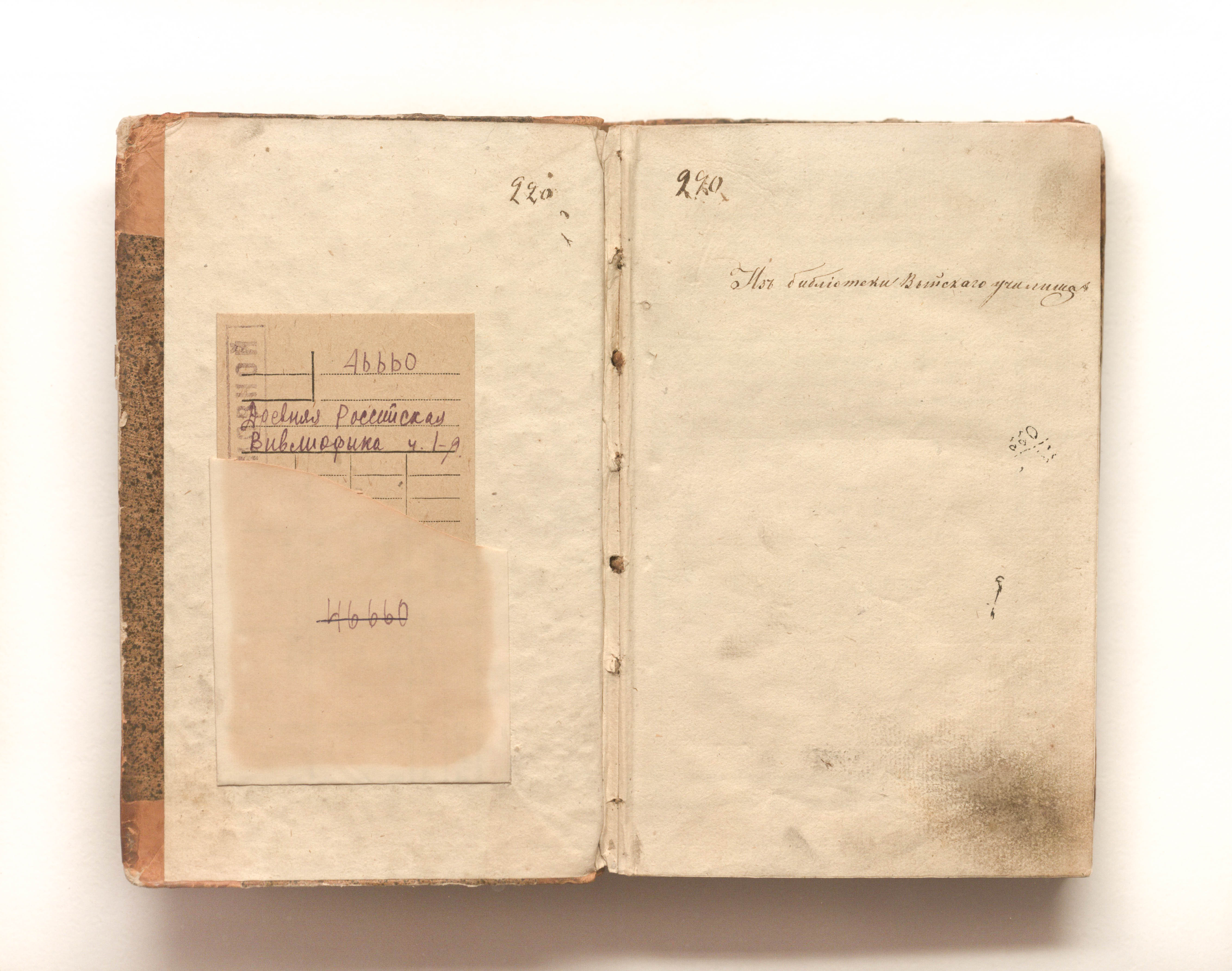 «Из библиотеки Выйскаго училища» (форзац); «Из библиотеки Выйскаго Демидовскаго училища № 135» (титл.).