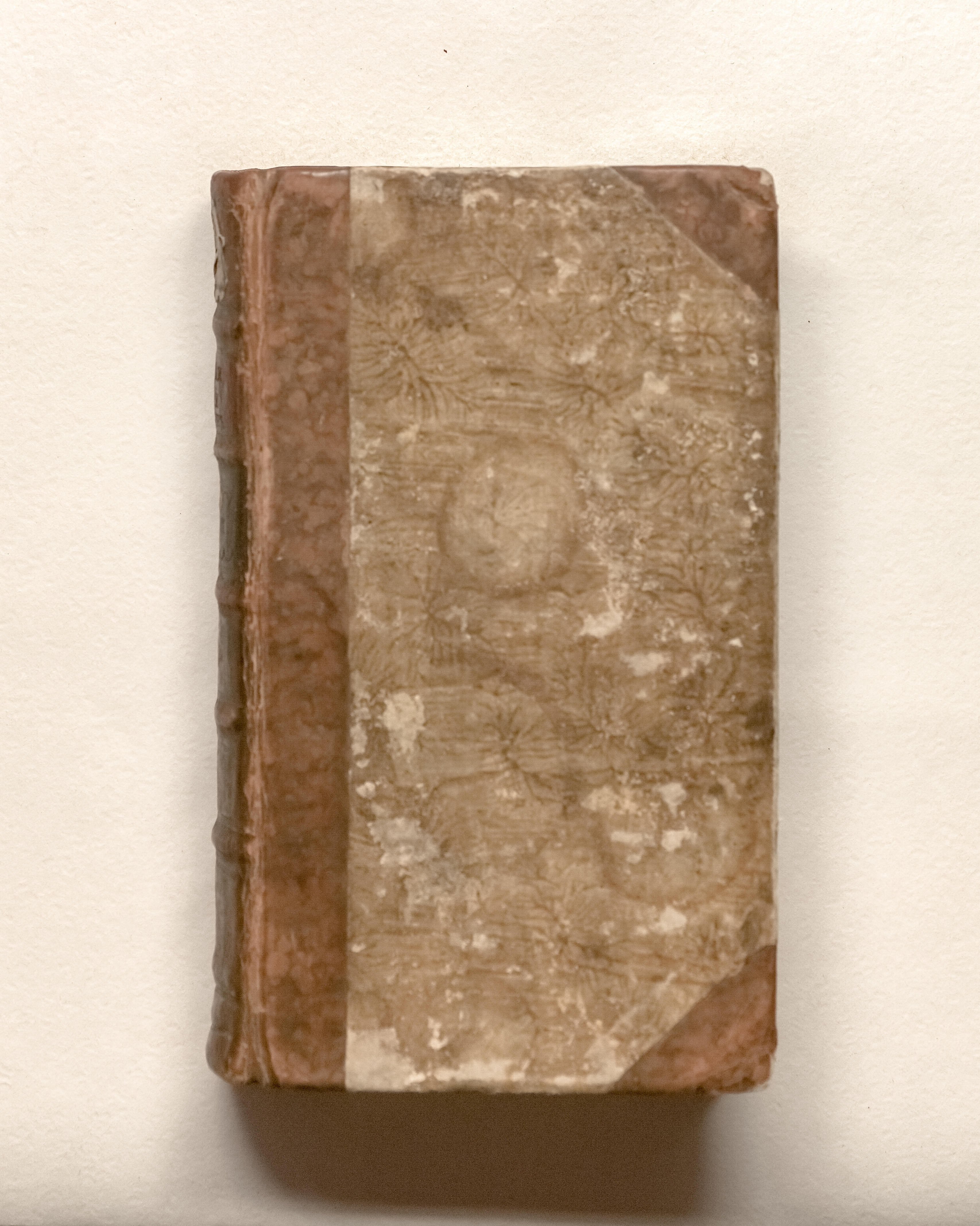 Книга в полукожаном владельческом переплете. Крышки переплета обтянуты бумагой с рисунком «под мрамор». Обрез тонированный. Бумага верже. Водяной знак (форзац).