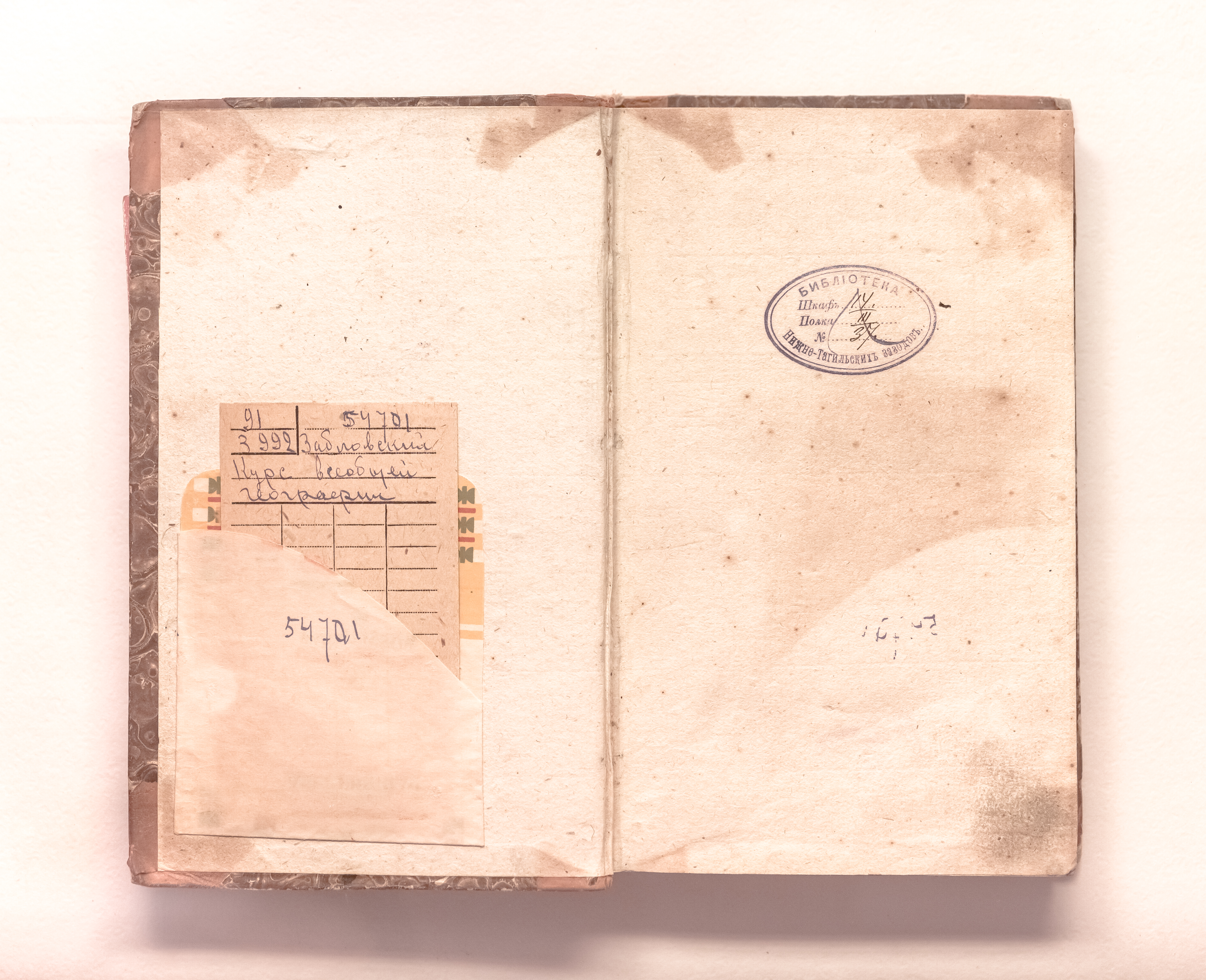«Библиотека Нижне-Тагильских заводов. Шкаф 14. Полка III. № 37» (форзац); "У.И.М.Л. Библиотека" (тит. л., с. 17).