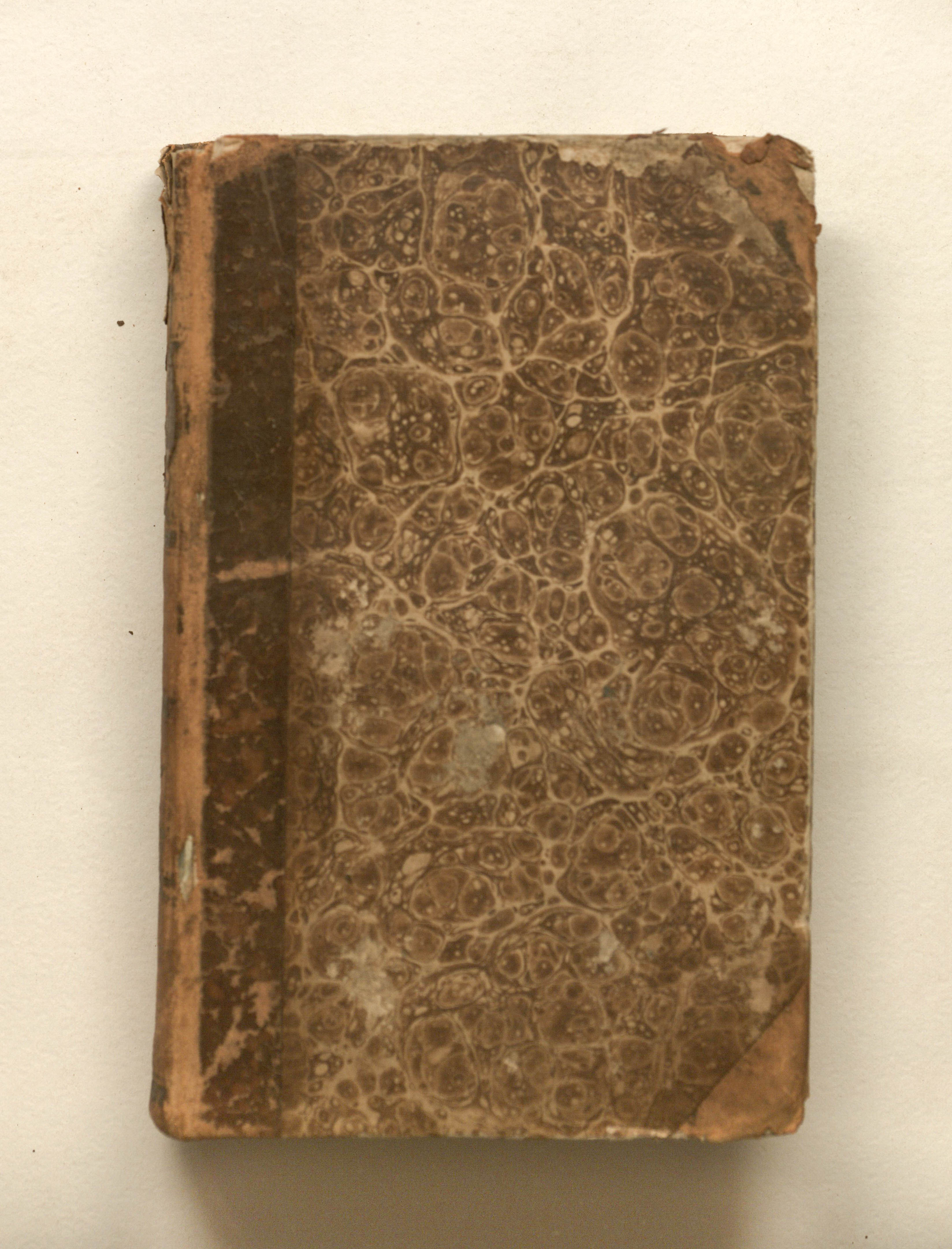 Книга в полукожаном владельческом переплете. Крышки переплета обтянуты бумагой с рисунком «под мрамор». Обрез тонированный. Бумага верже.