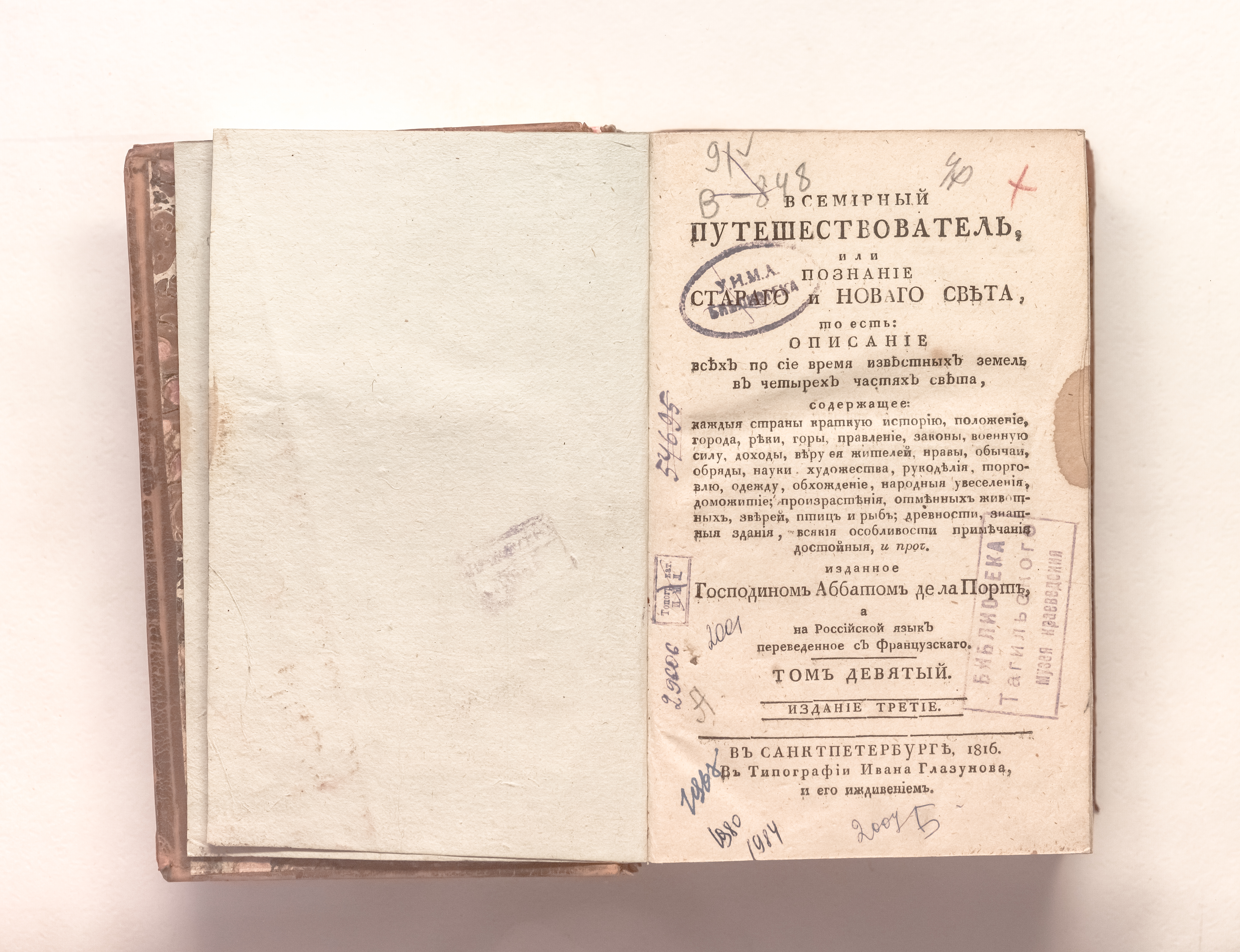 Всемирный путешествователь, или Познание Стараго, и Новаго света, то есть : описание по сие время известных земель в четырех честях света… изданное господином аббатом де ла Порт