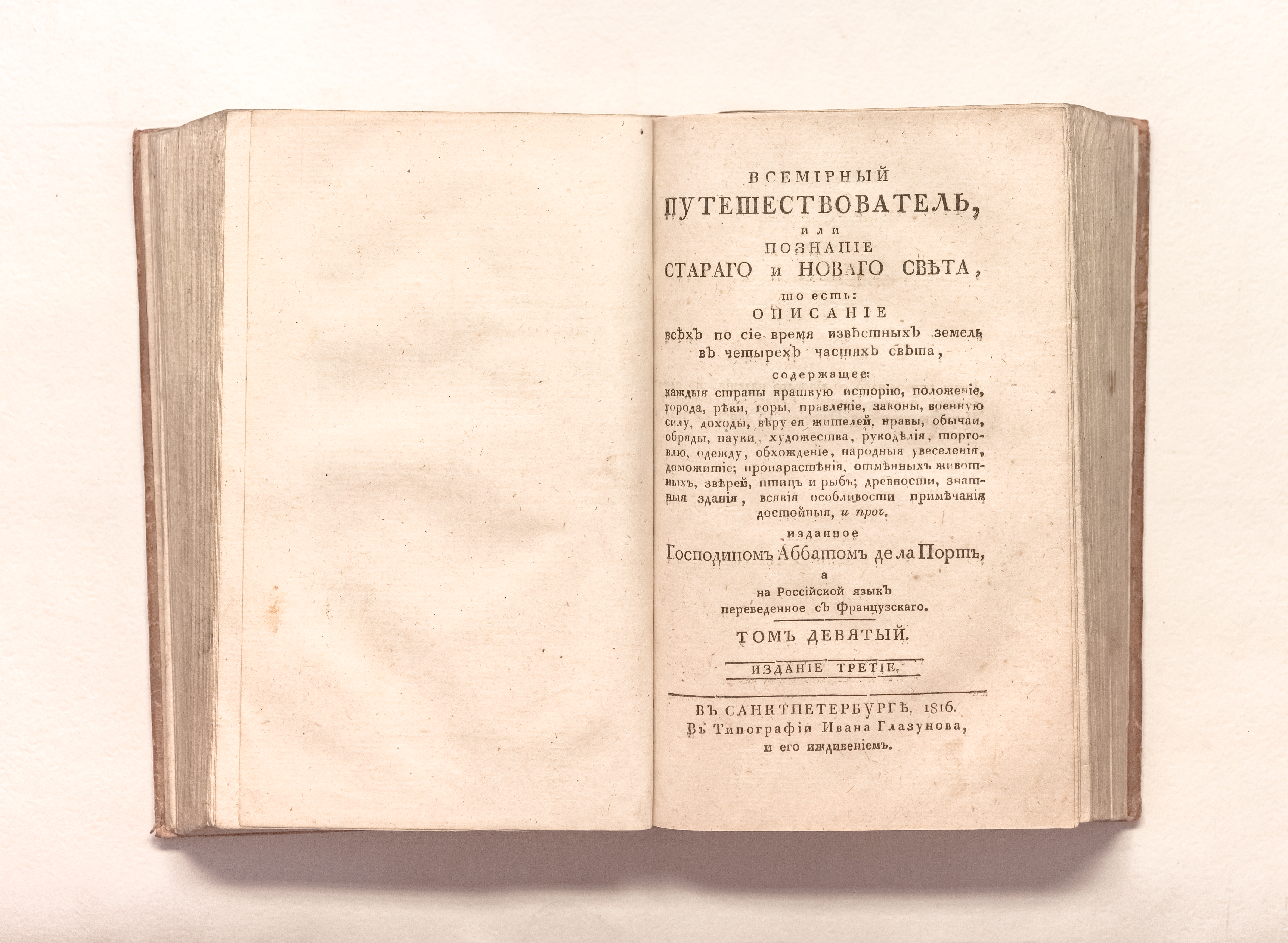 Всемирный путешествователь, или Познание Стараго, и Новаго света, то есть : описание по сие время известных земель в четырех честях света… изданное господином аббатом де ла Порт
