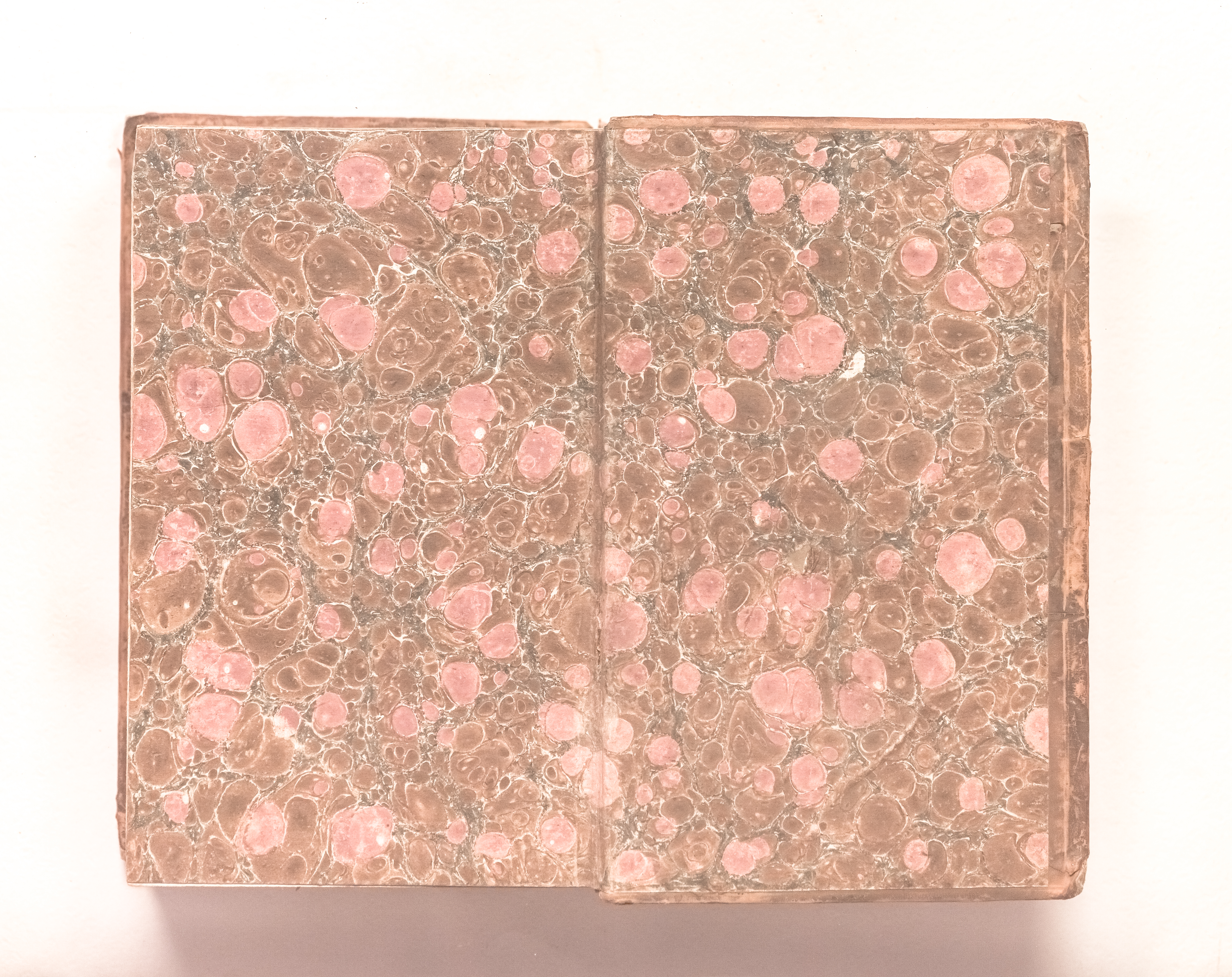 Книга в цельнокожаном владельческом переплете. Форзацы украшены бумагой с рисунком «под мрамор». Обрез тонированный. Бумага верже. Водяной знак (форзацы).