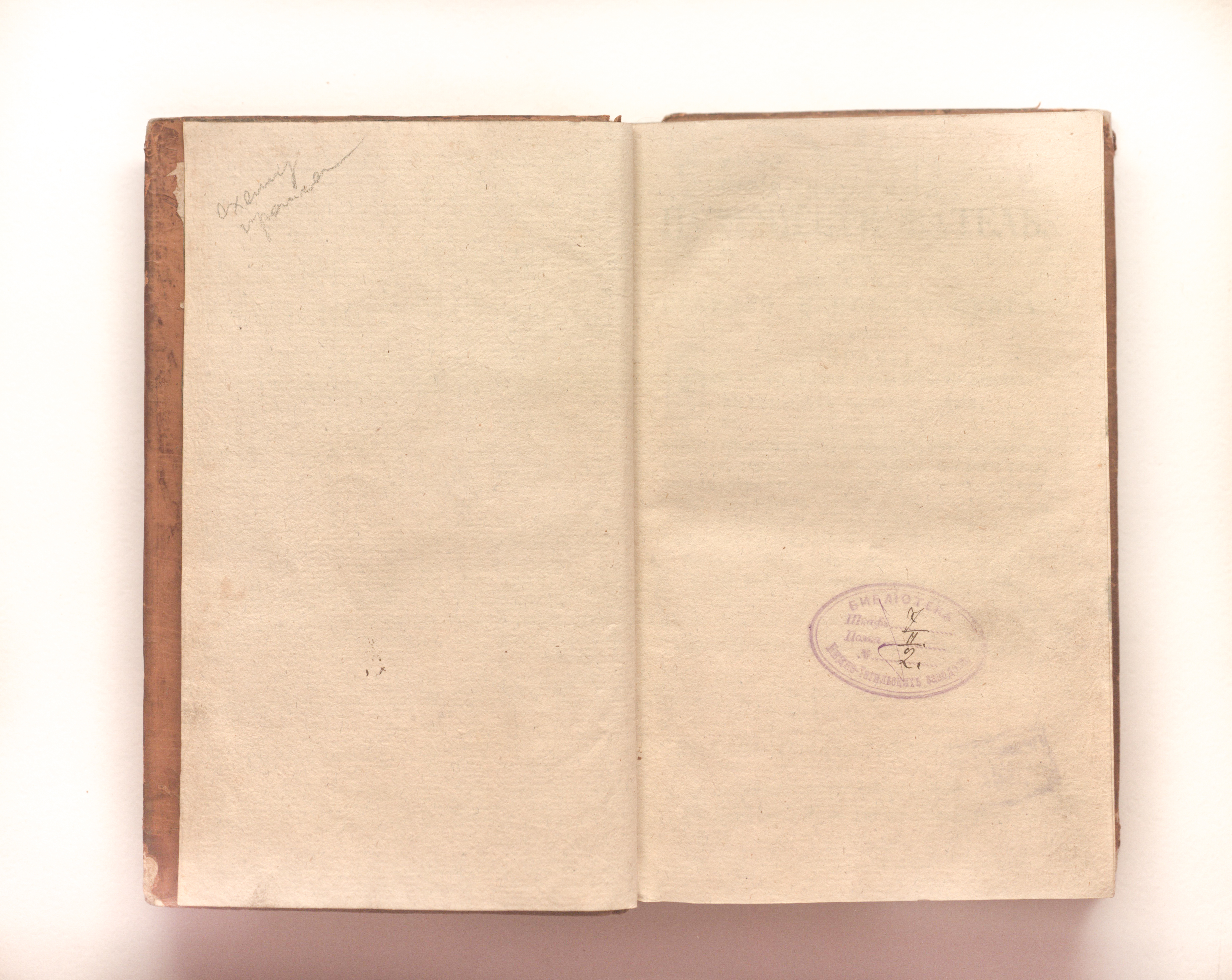 «Библиотека Нижне-Тагильских заводов. Шкаф 7. Полка II. № 2» (перепал. л.);