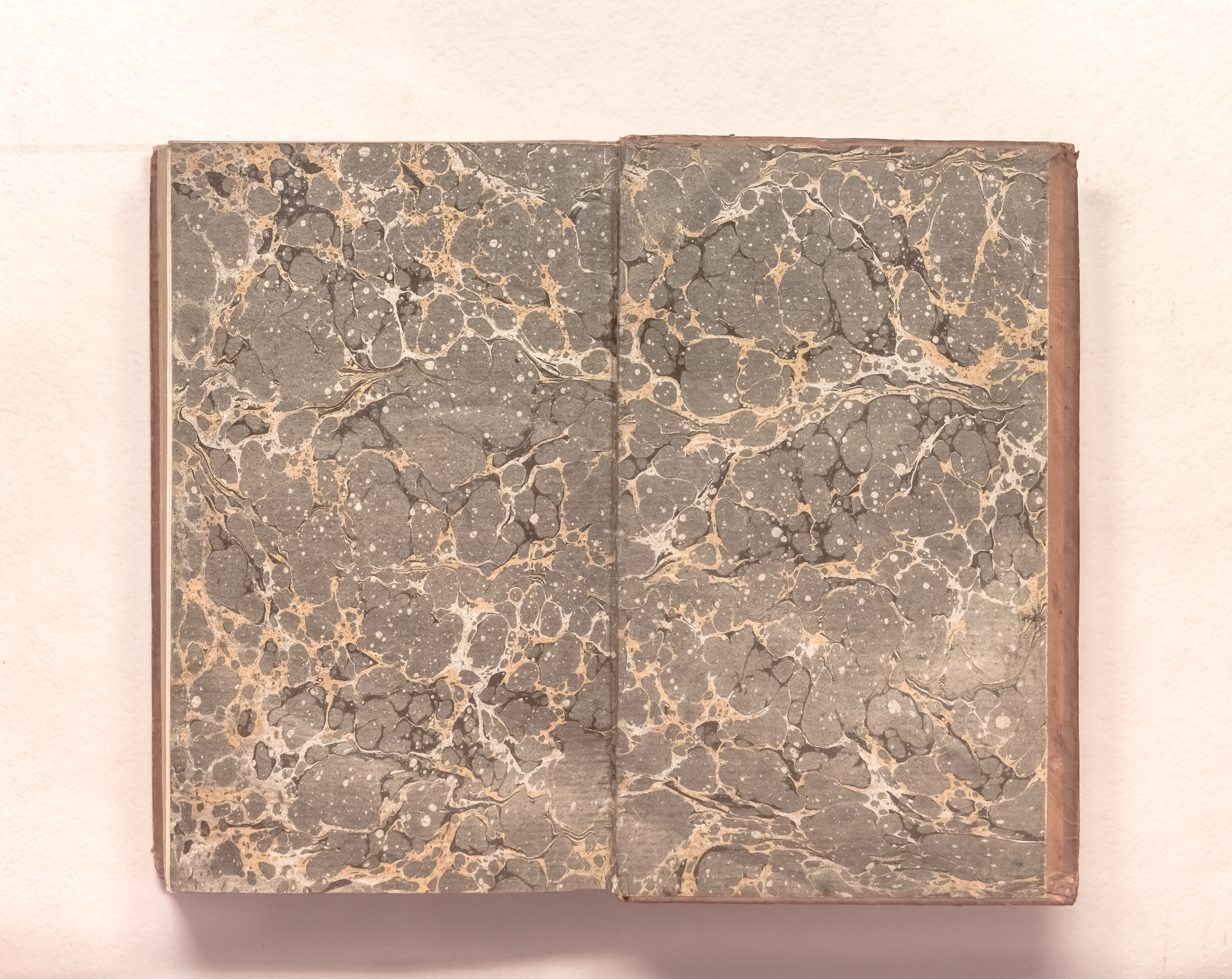 Книга в цельнокожаном владельческом переплете. Форзацы украшены бумагой с рисунком «под мрамор». Бумага верже.