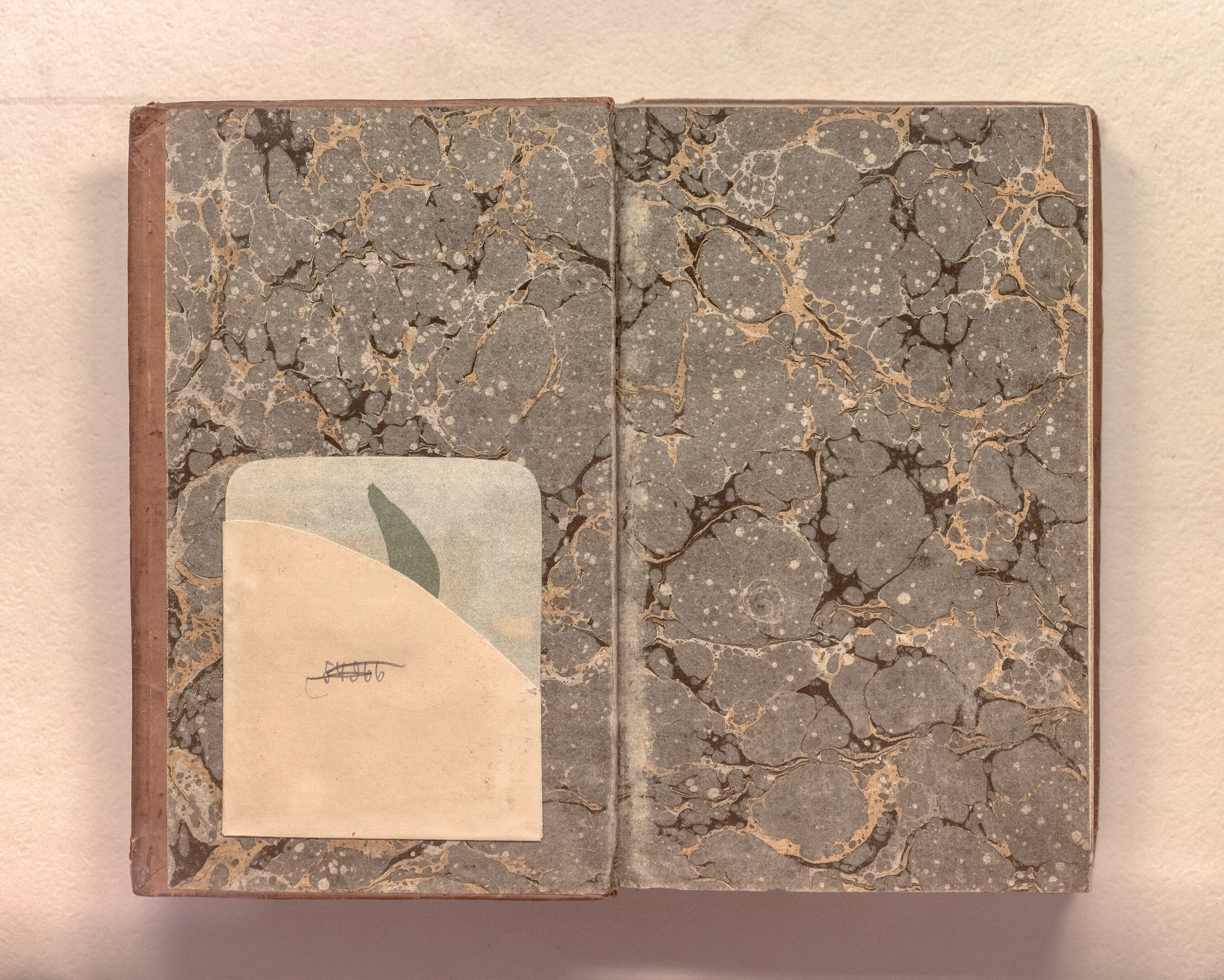 Книга в цельнокожаном владельческом переплете. Форзацы украшены бумагой с рисунком «под мрамор». Бумага верже.