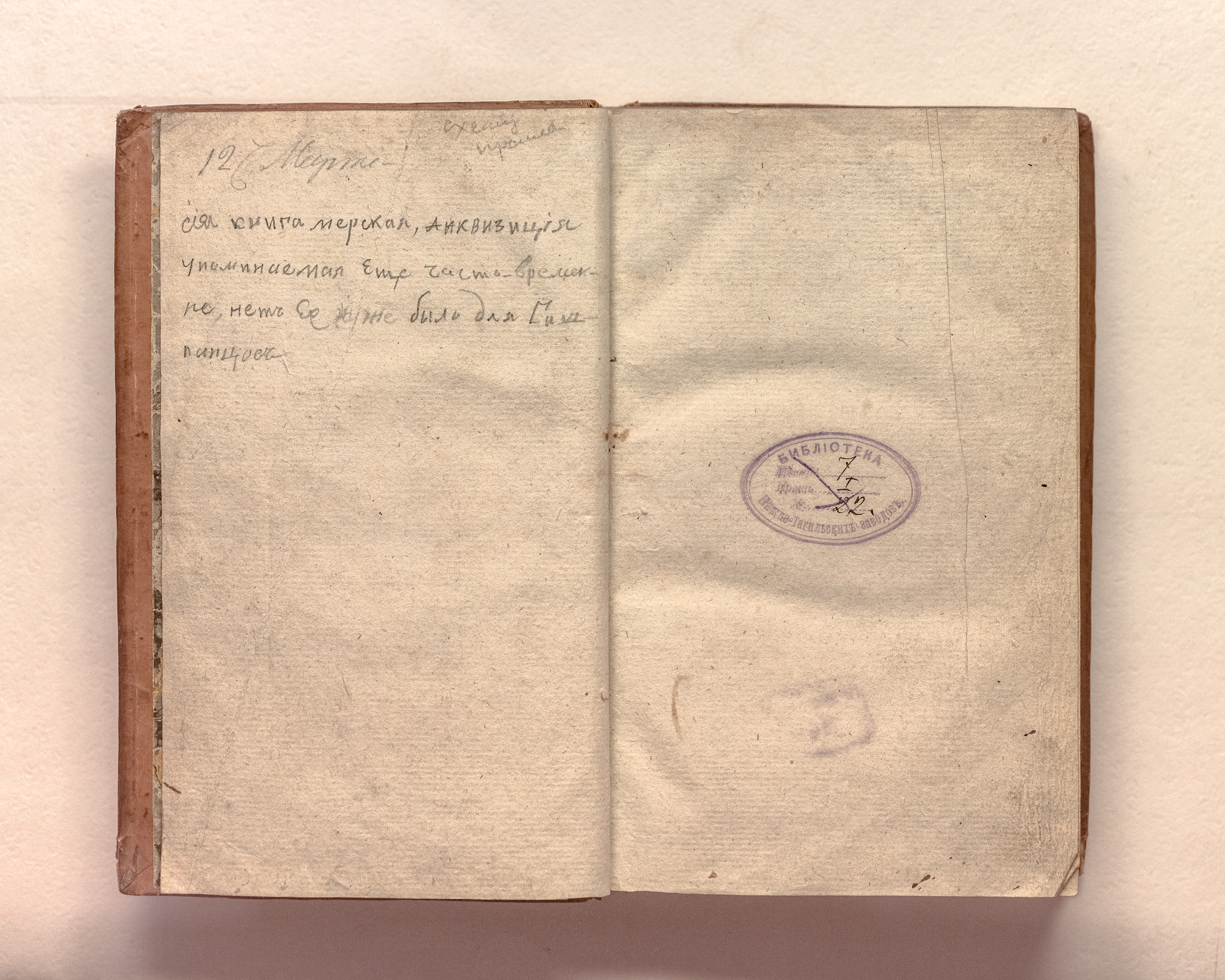 «Библиотека Нижне-Тагильских заводов. Шкаф 7. Полка I. № 22» (перепл. л.);