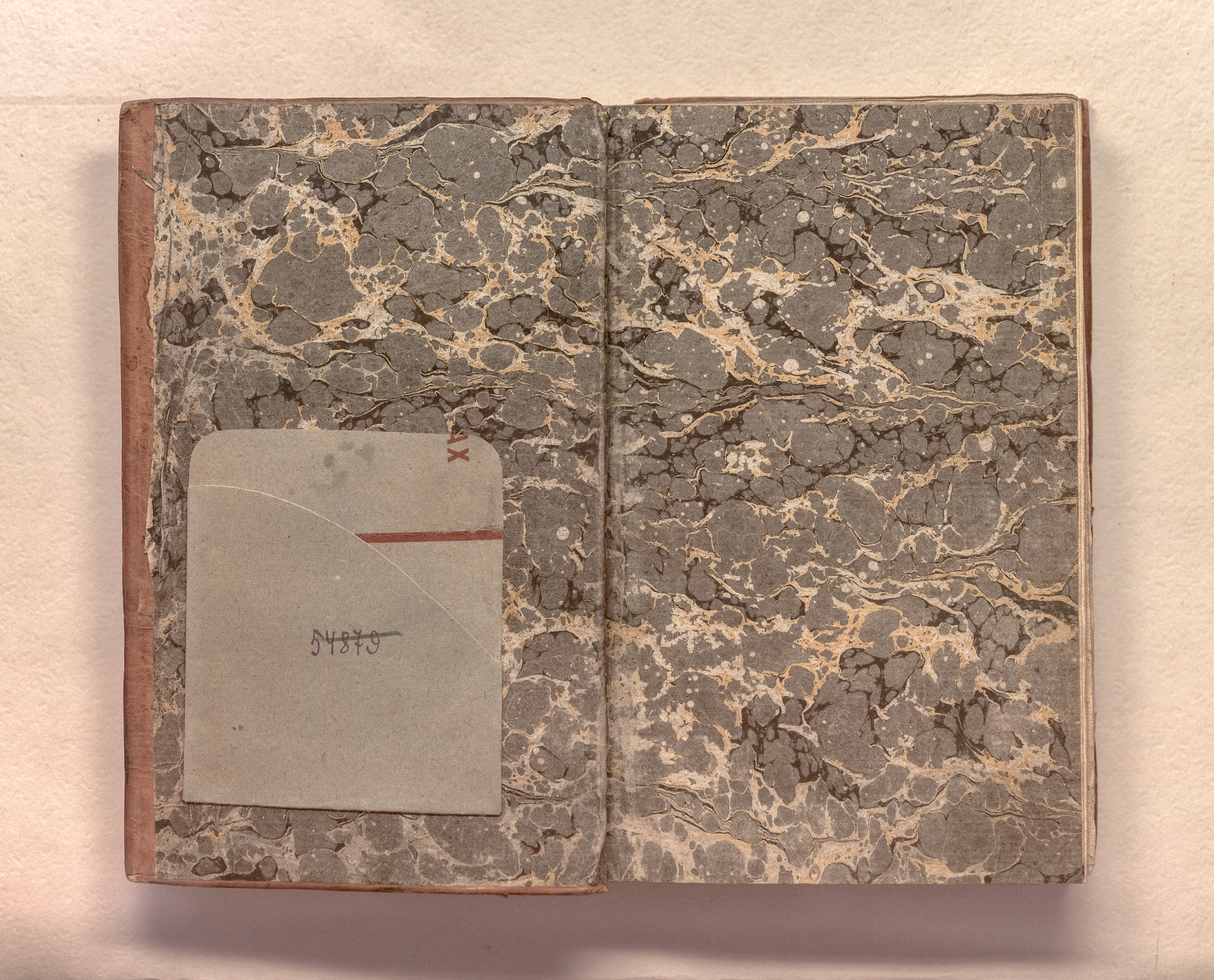 Книга в цельнокожаном владельческом переплете. Форзацы украшены бумагой с рисунком «под мрамор». Бумага верже.