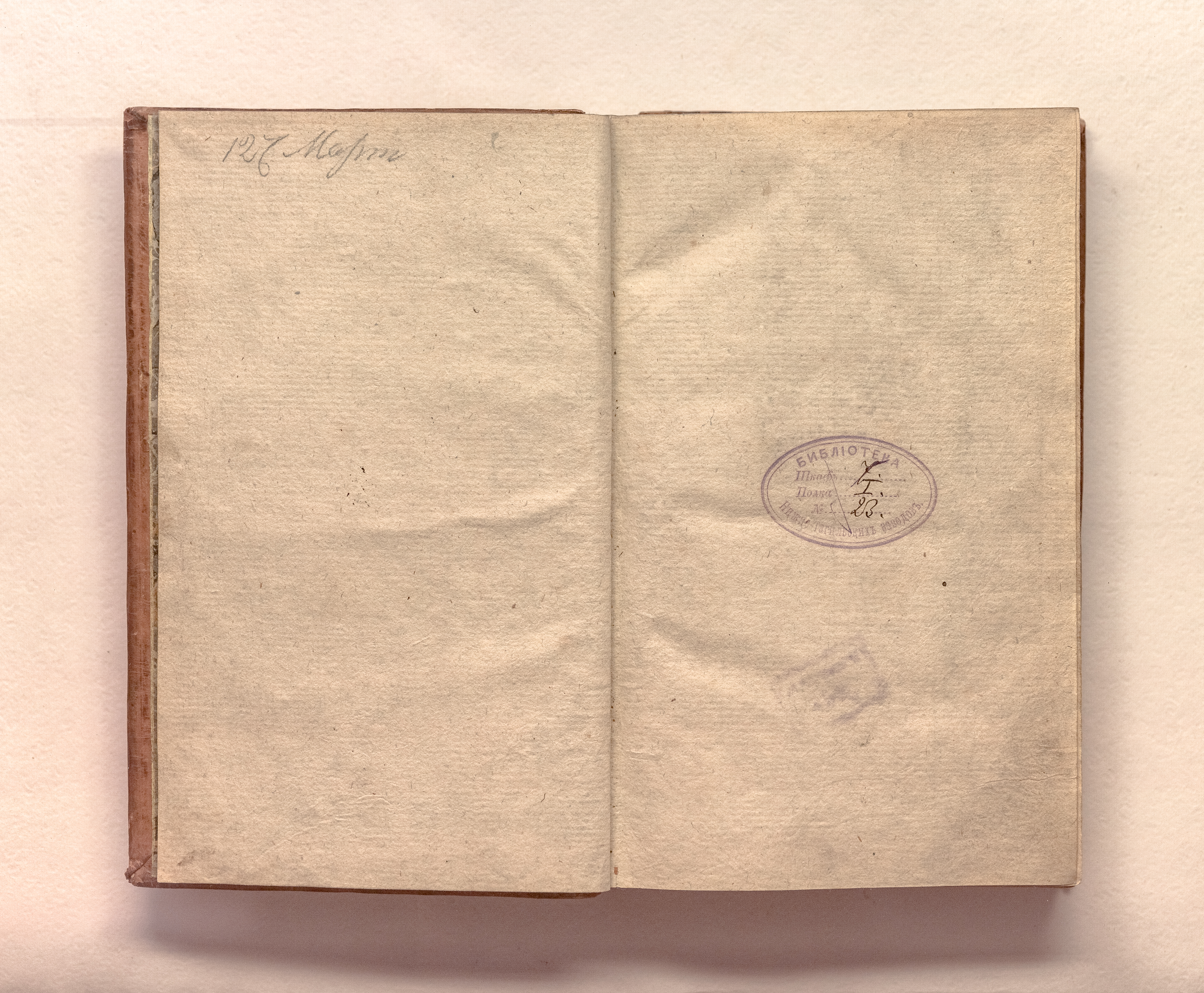 «Библиотека Нижне-Тагильских заводов. Шкаф 7. Полка I. № 23» (перепл. л.);