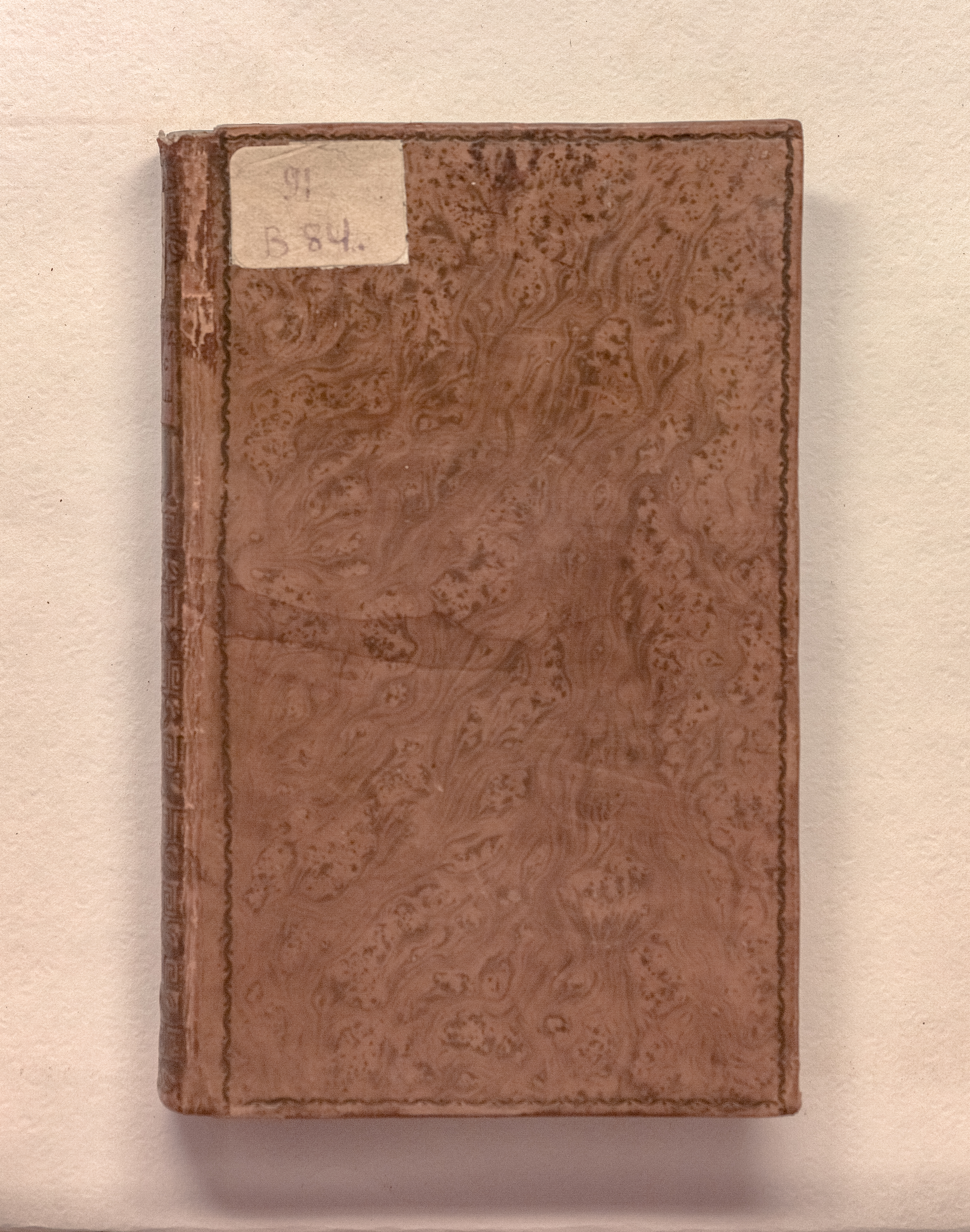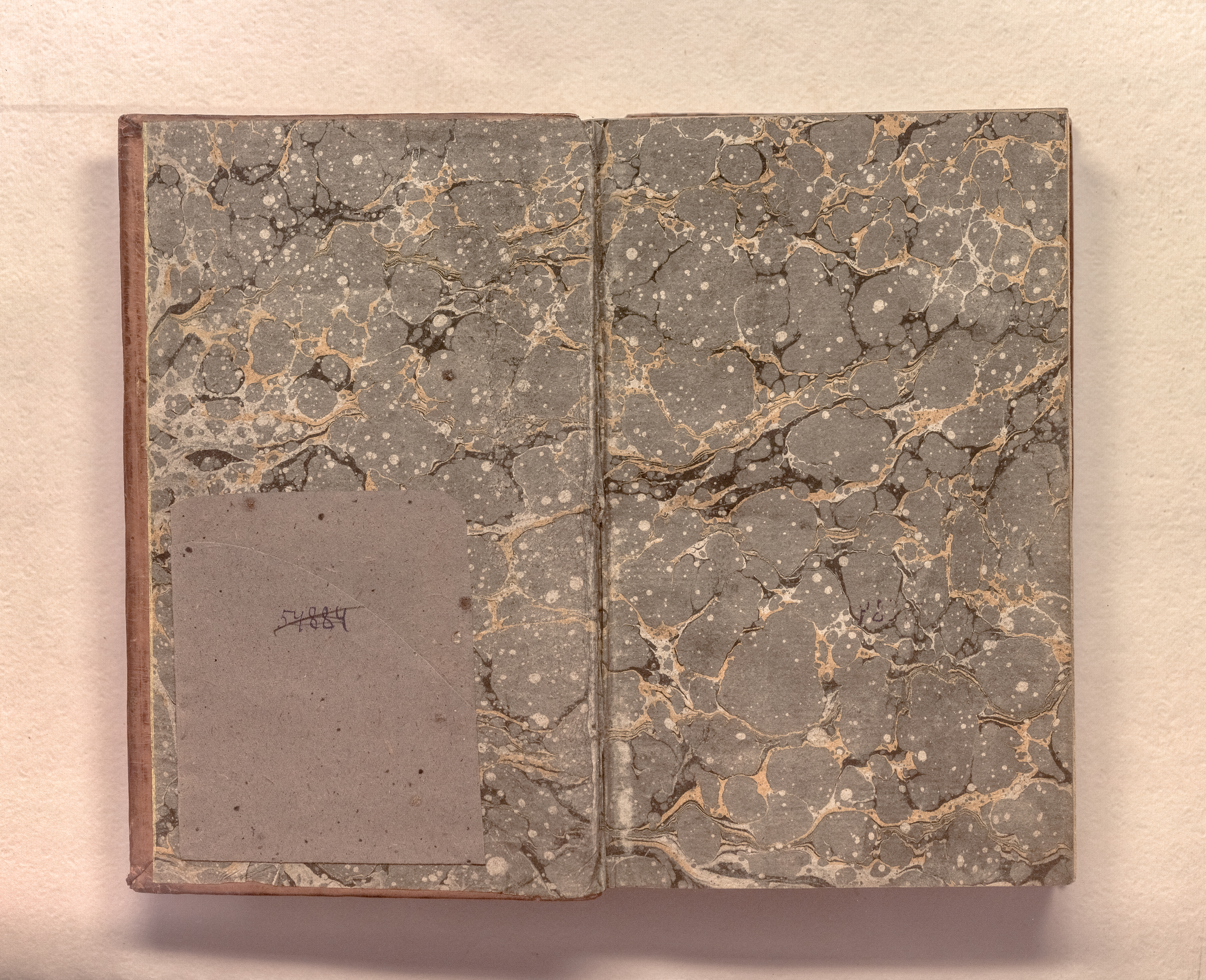 Книга в цельнокожаном владельческом переплете. Форзацы украшены бумагой с рисунком «под мрамор». Бумага верже.