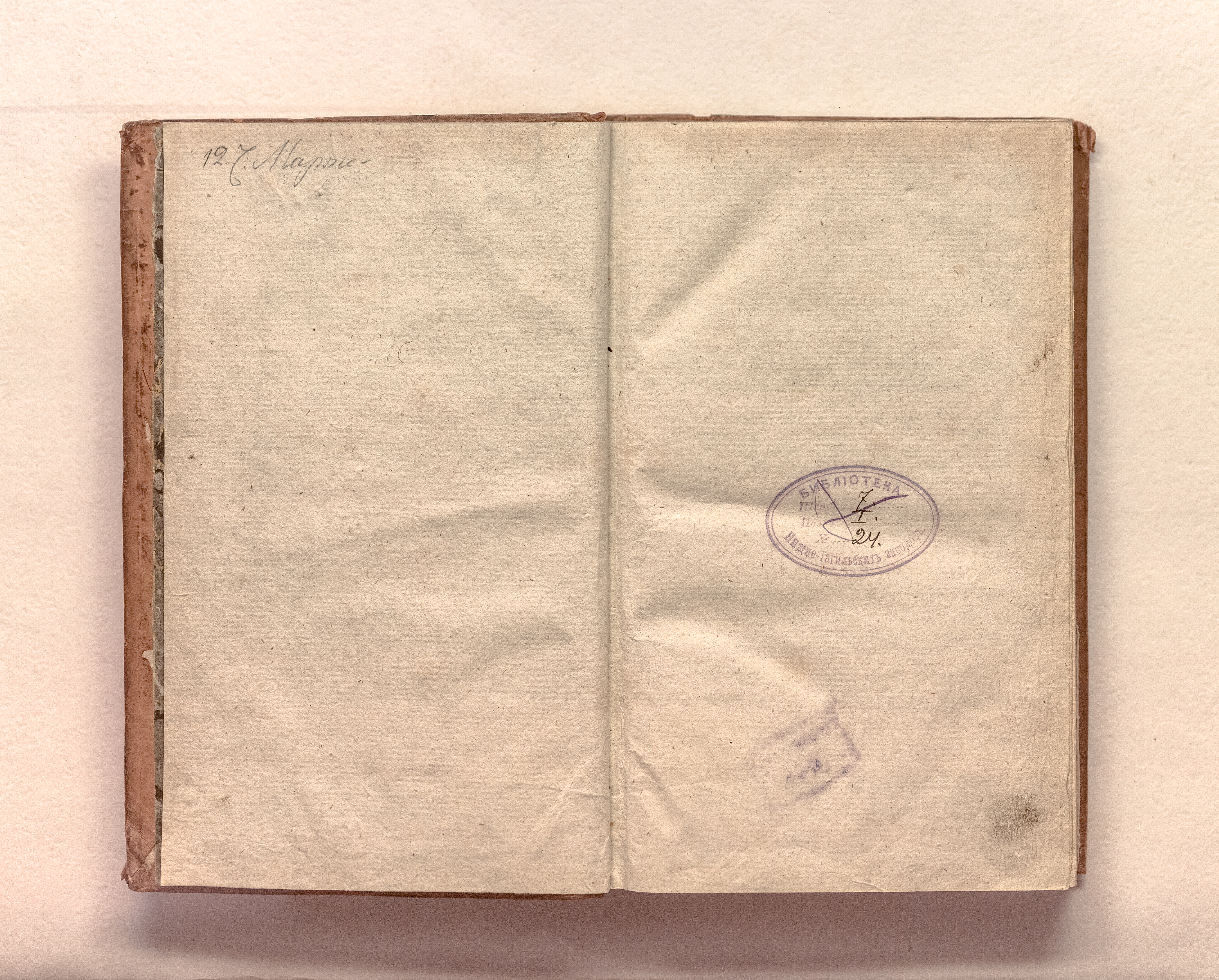 «Библиотека Нижне-Тагильских заводов. Шкаф 7. Полка I. № 24» (перепл. л);