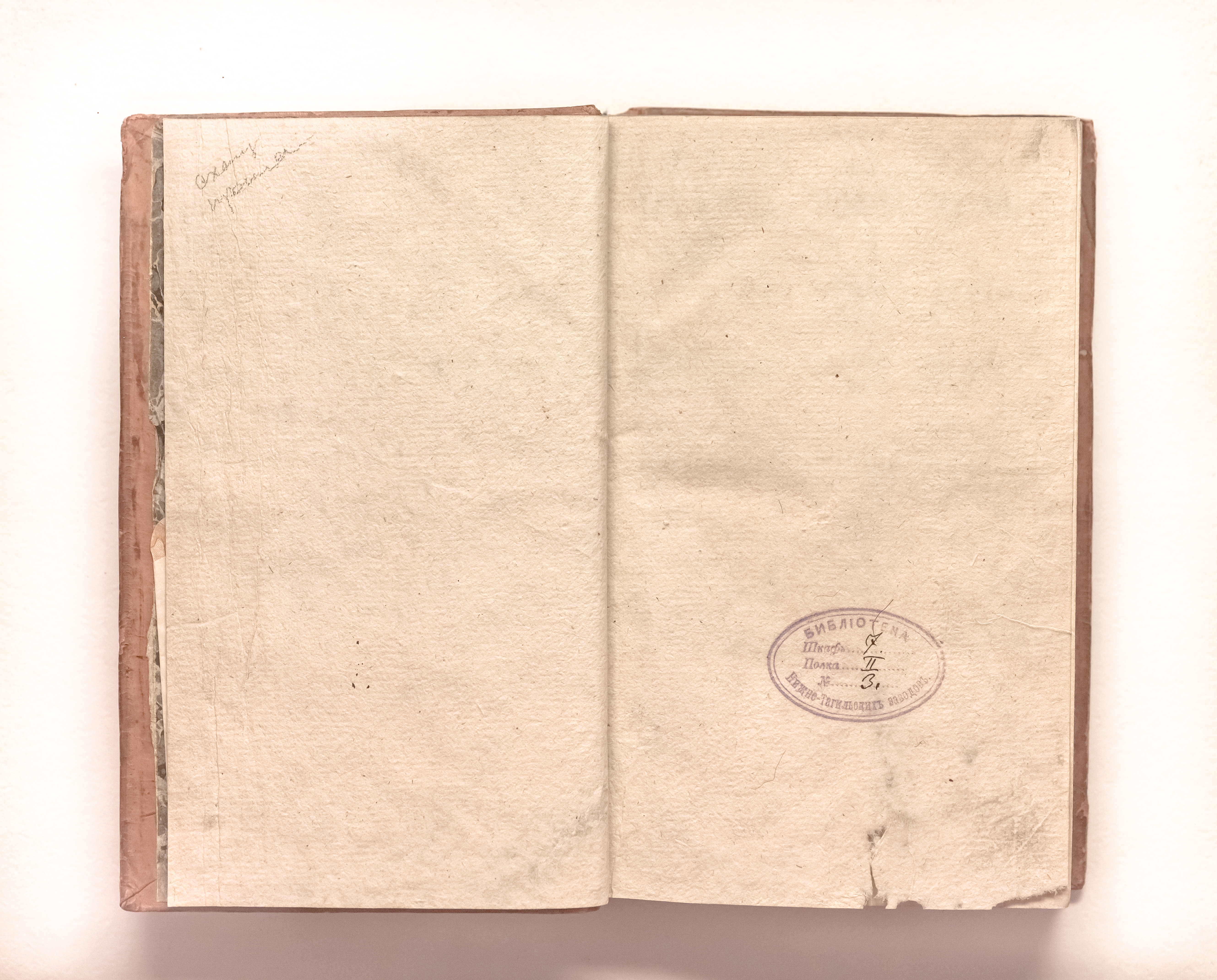 «Библиотека Нижне-Тагильских заводов. Шкаф 7. Полка II. № 3» (перепл. л.);