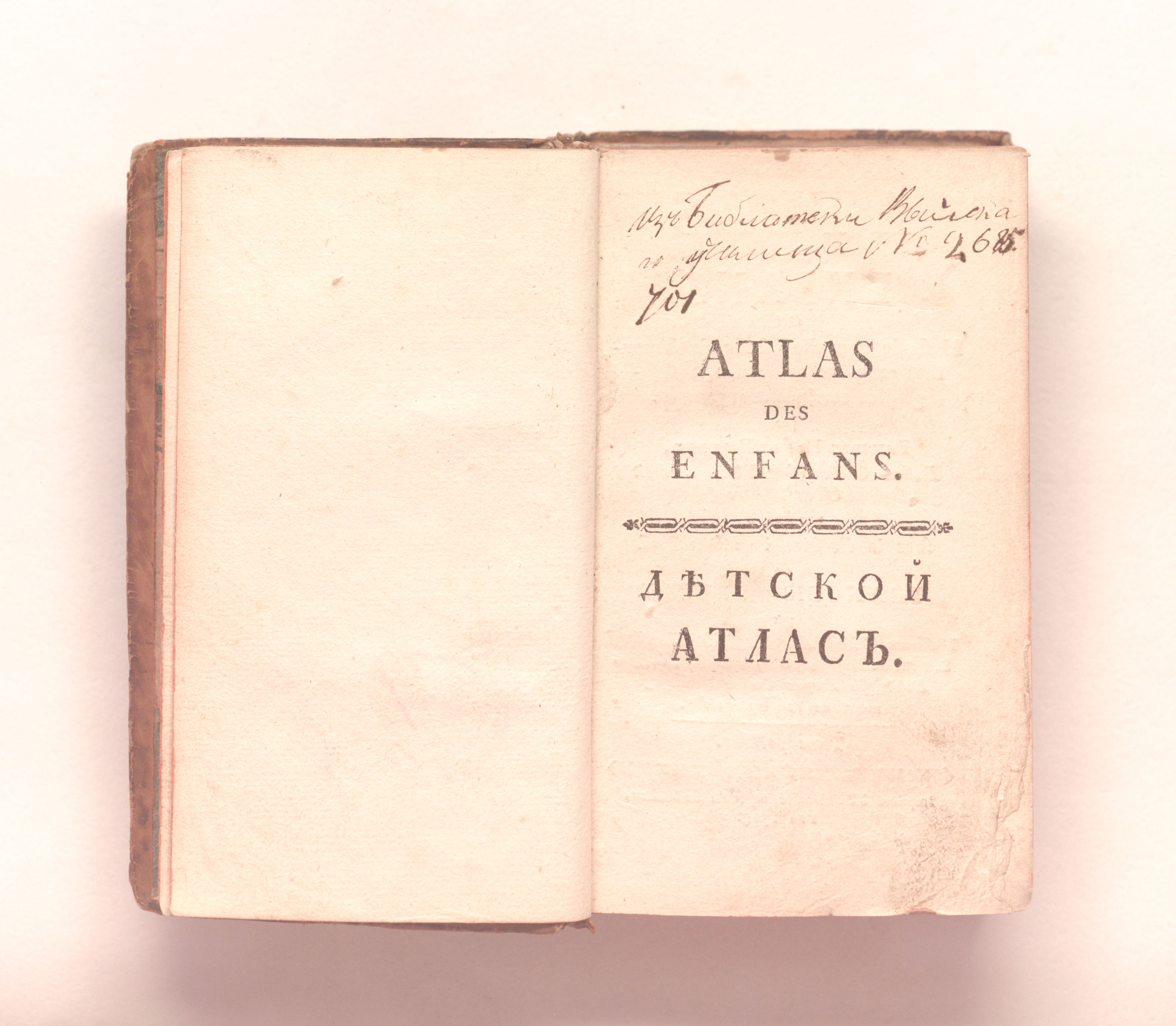 Дильтей, Филипп Генрих (1723-1781). Детской атлас, или Новой удобной и доказательной способ к учению географии / исправленной и умноженной Филиппом Генрихом Дилтеем, обоих прав доктором и профессором публичным юриспруденции и истории, ; Переведен под руководством тогоже проф[ессора] с французскаго на российской язык... — Москва : Печ. при Имп. Моск. Ун-те, 1768. — Т. 1. — [24], 261, [2] с. ; 17х10,5 см.