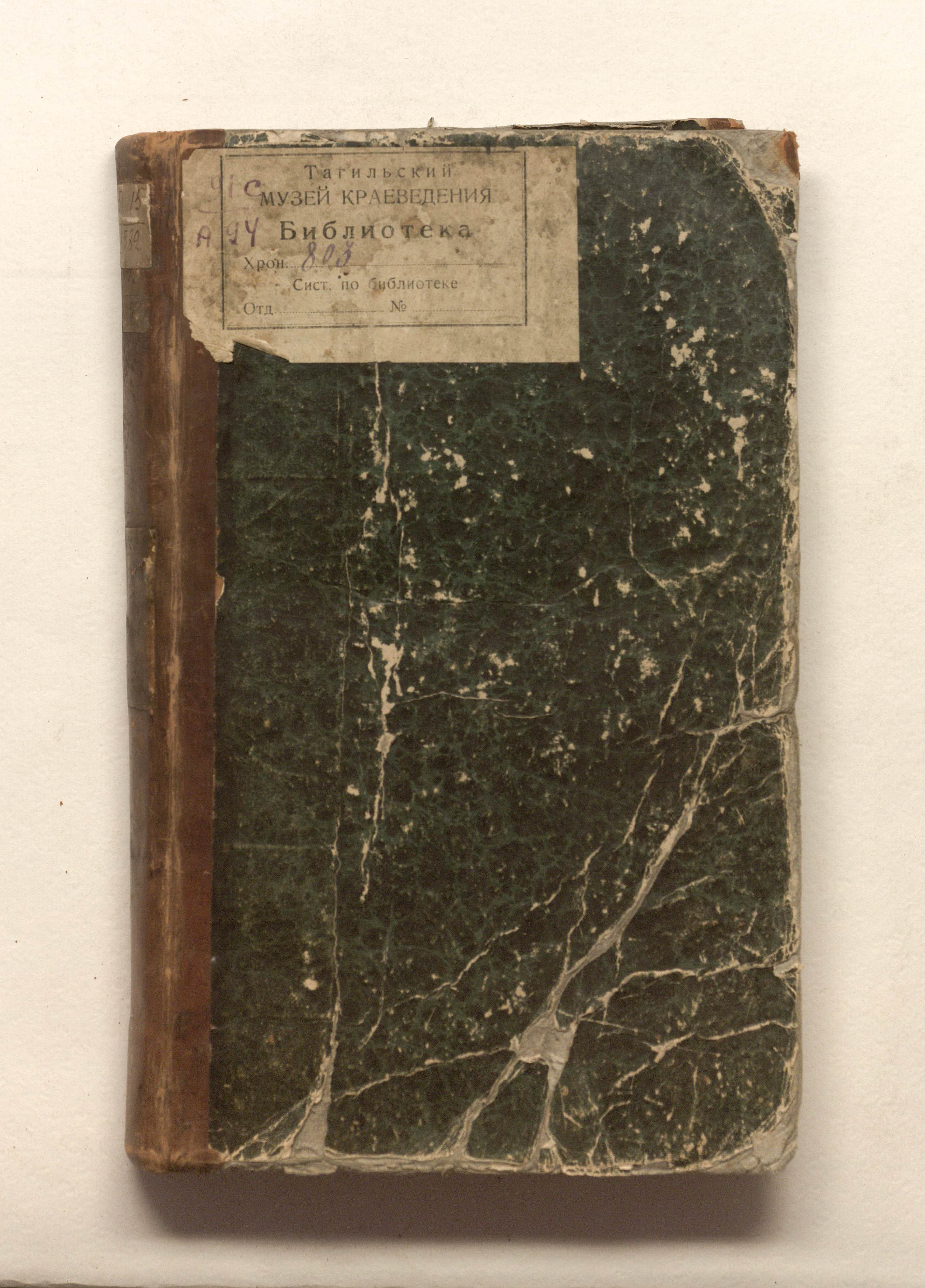 «Библиотека Нижне-Тагильских заводов. Шкаф 14. Полка II. № 24» (форзац);