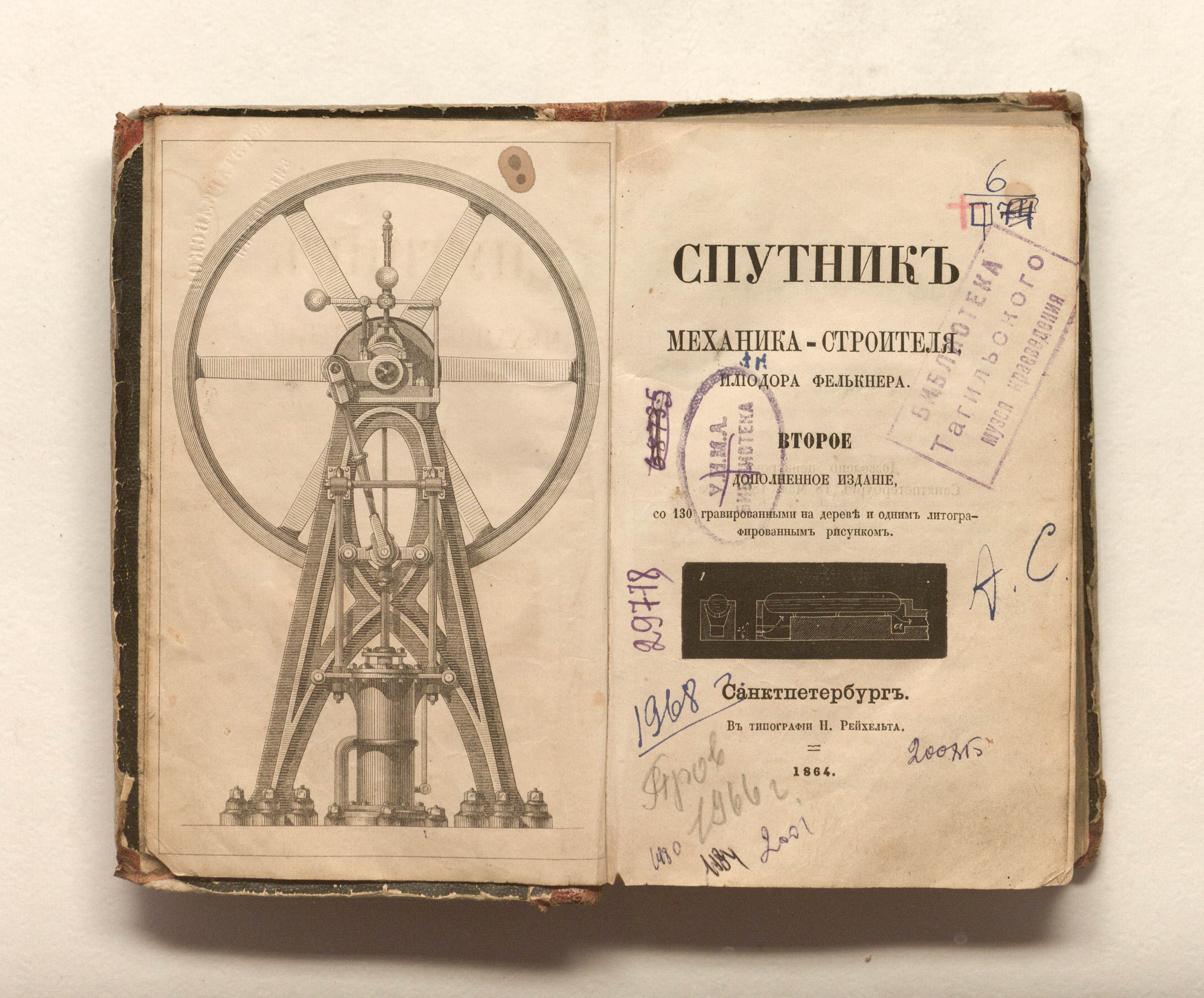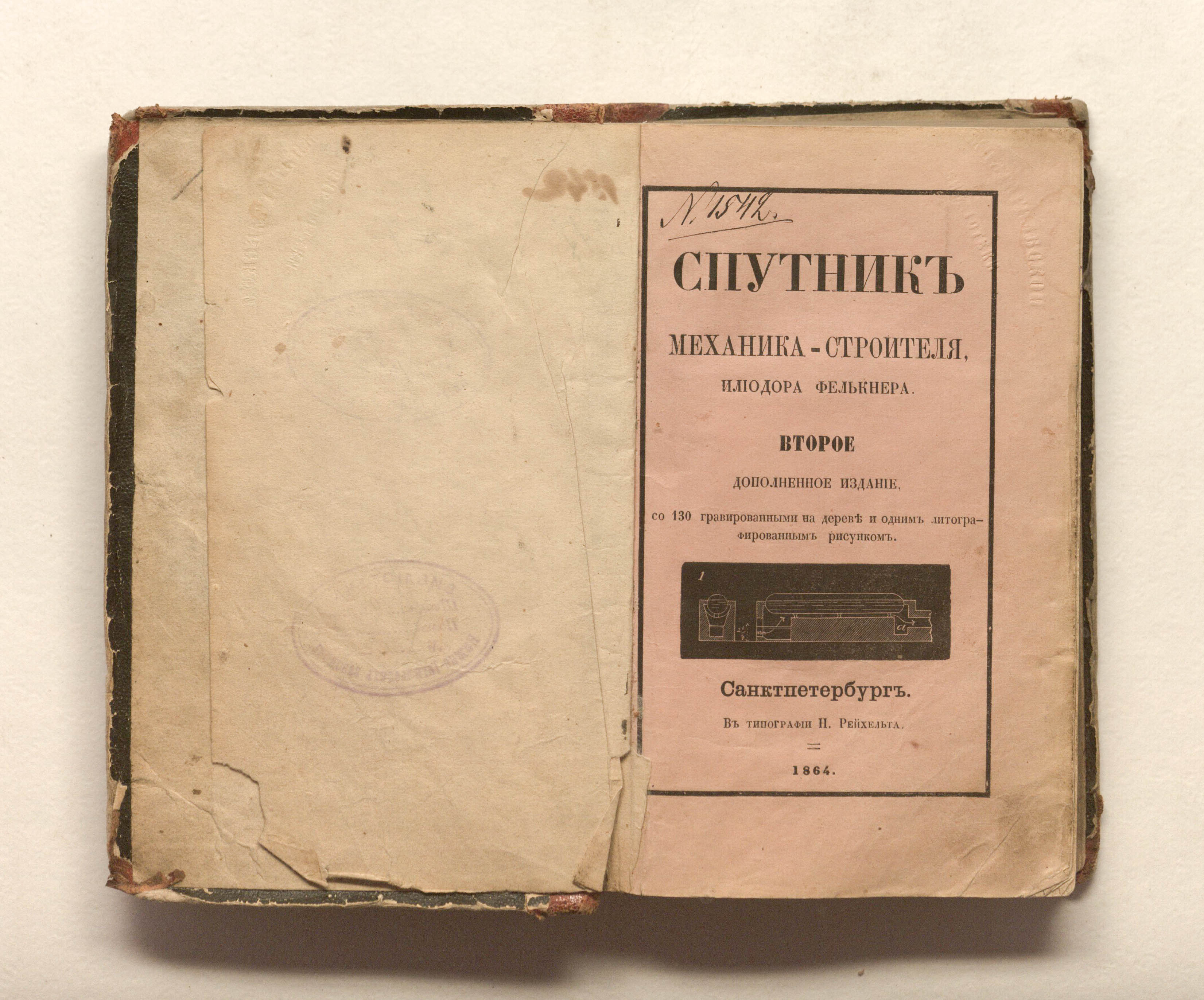 Спутник механика-строителя / И. Ф. Фелькнер. — 2-е изд., доп. — Санкт-Петербург : тип. Н. Рейхельта, 1864. — [2], XII, 381 с. : 1 л. фронт., ил. ; 17,5х11 см.