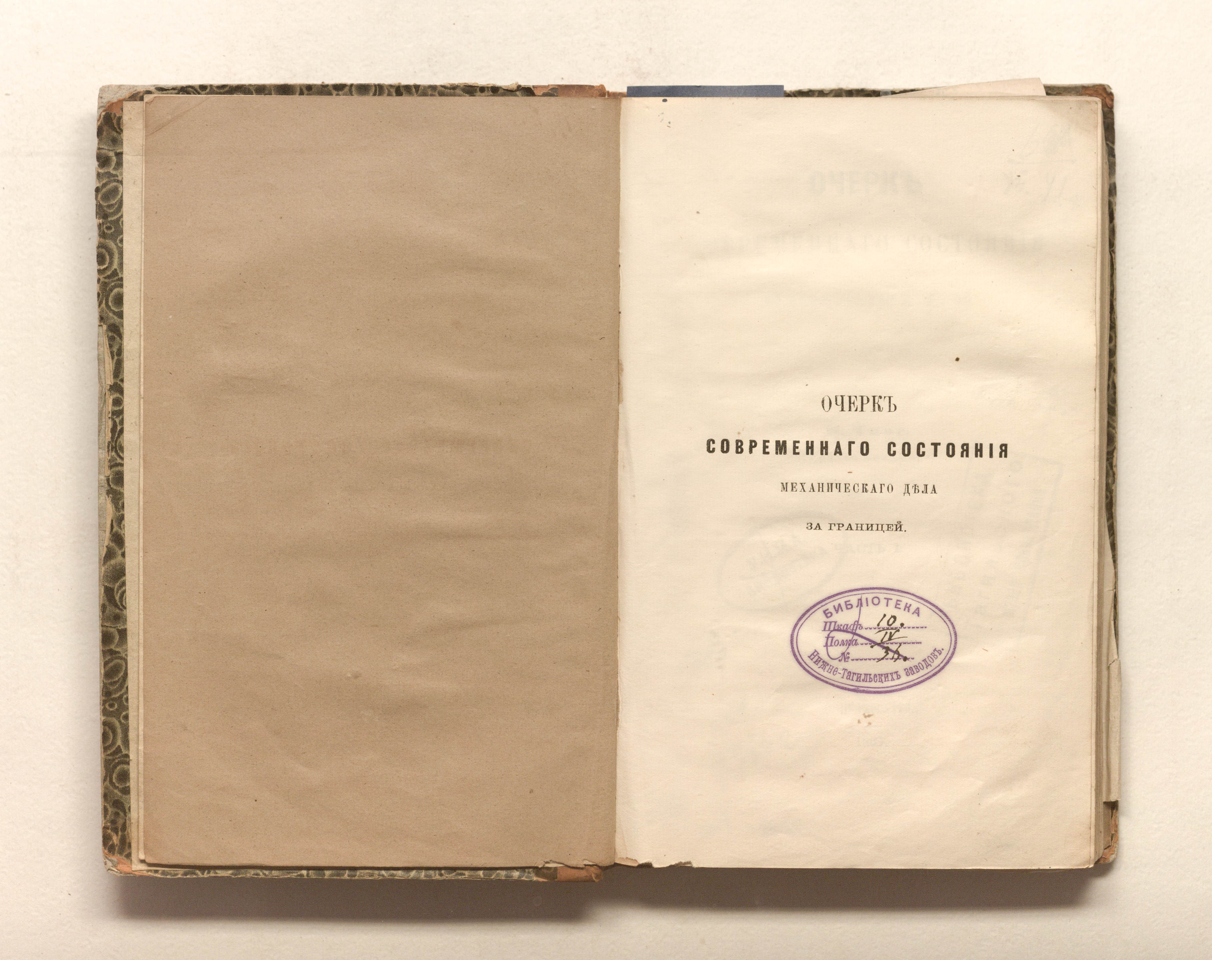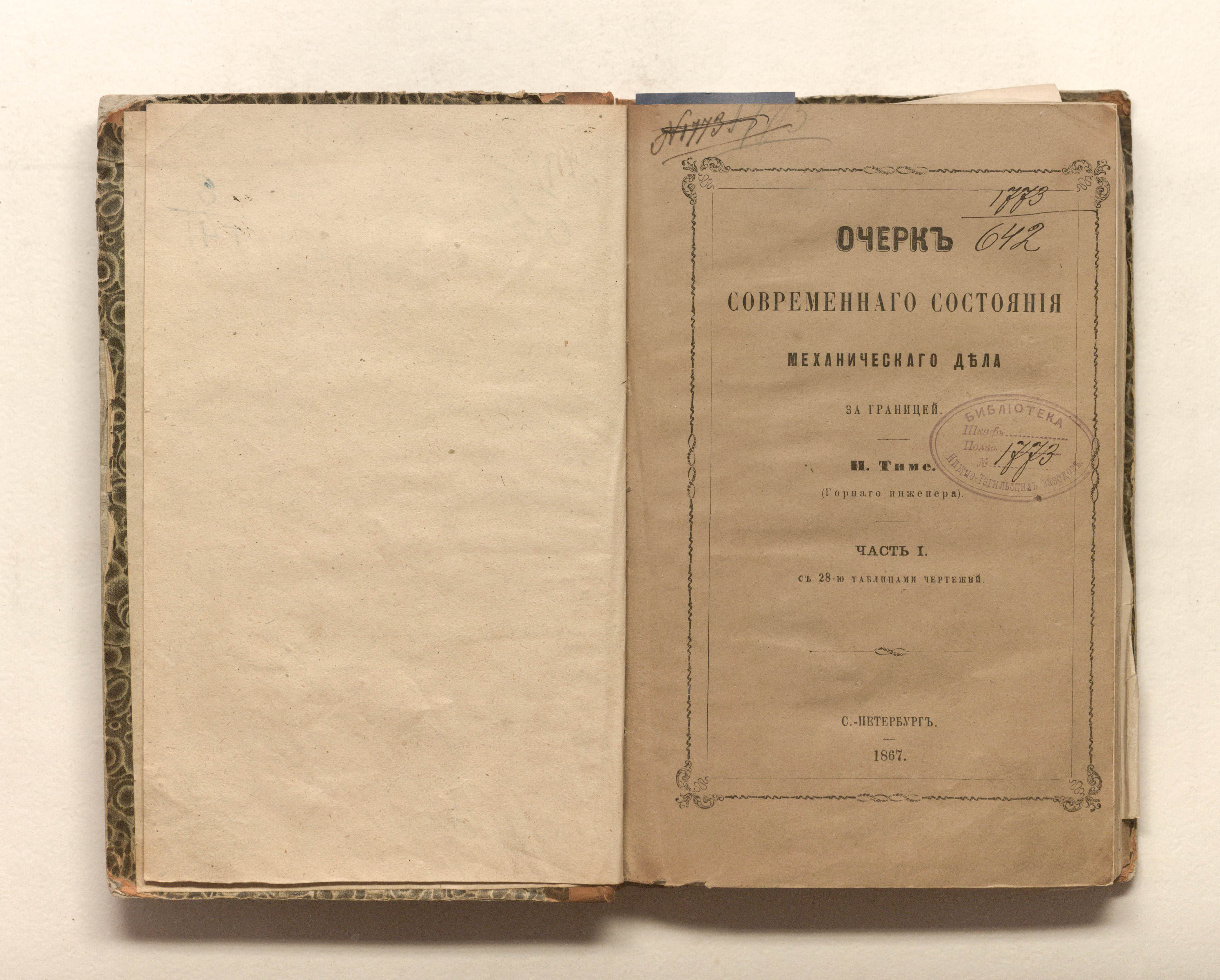 «Библиотека Нижне-Тагильских заводов. № 1773.» (форзац, изд. обл.);