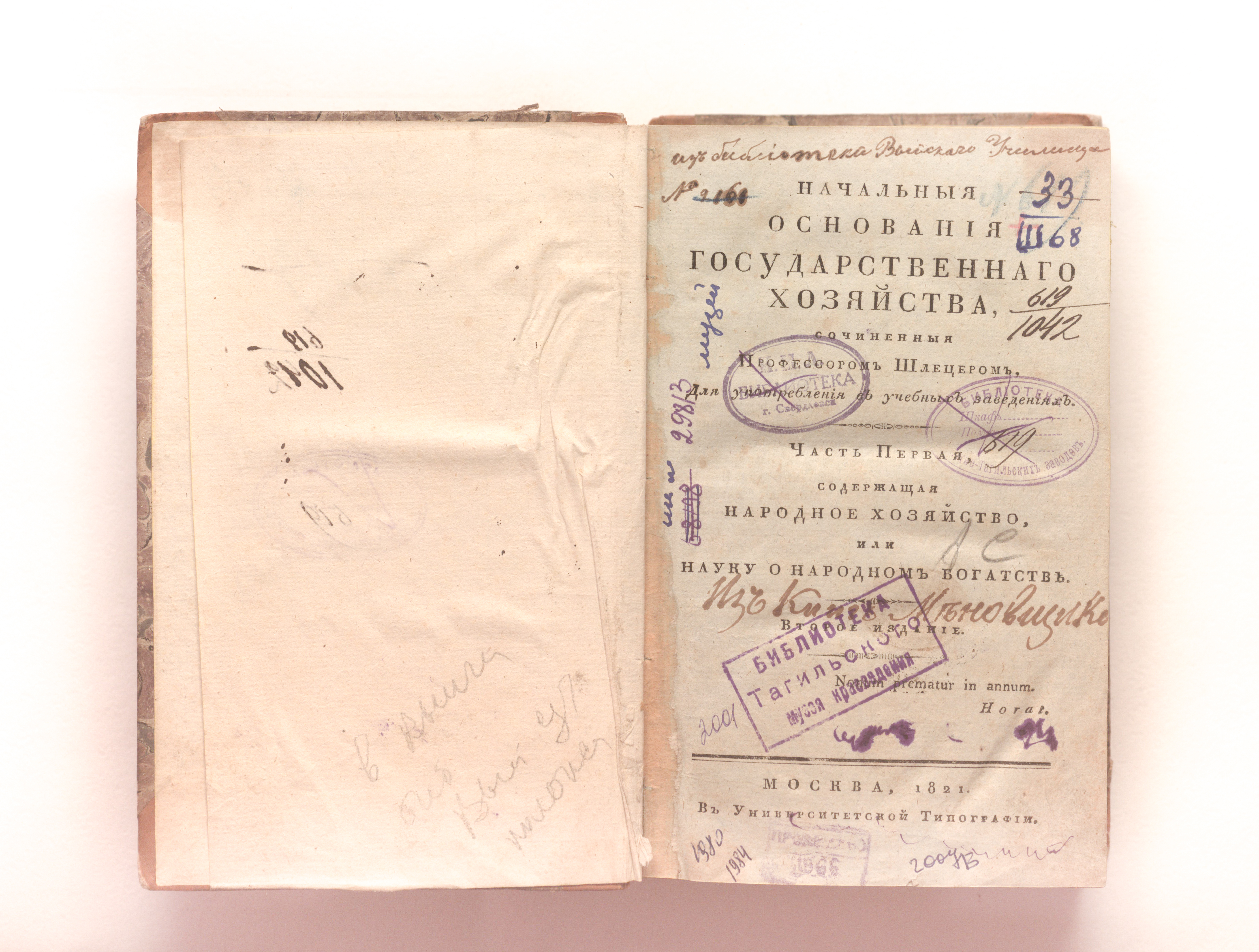 "Из библиотеки Выйскаго училища № 2161»(тит. л.); "Из книг Меновщикова»(тит. л.).