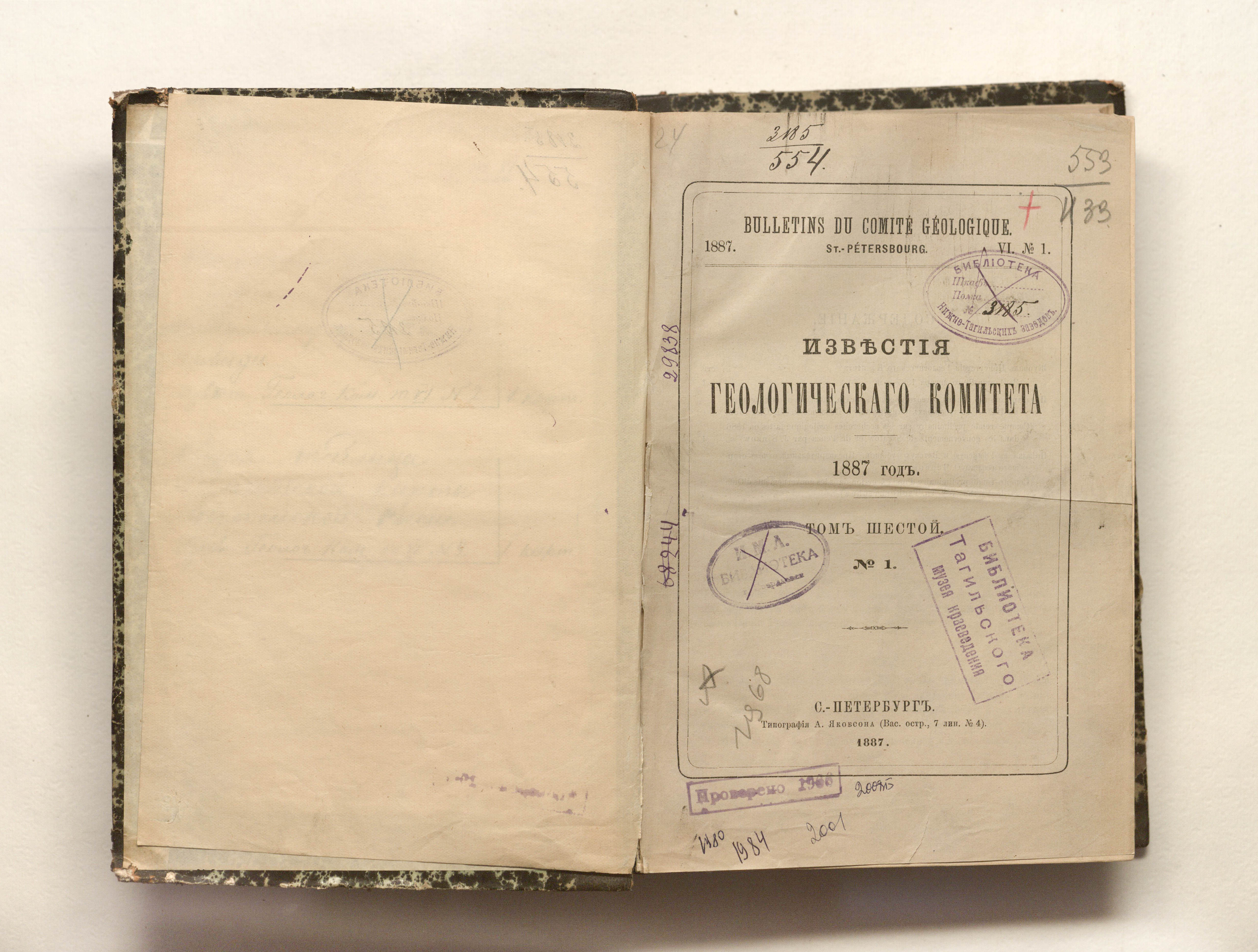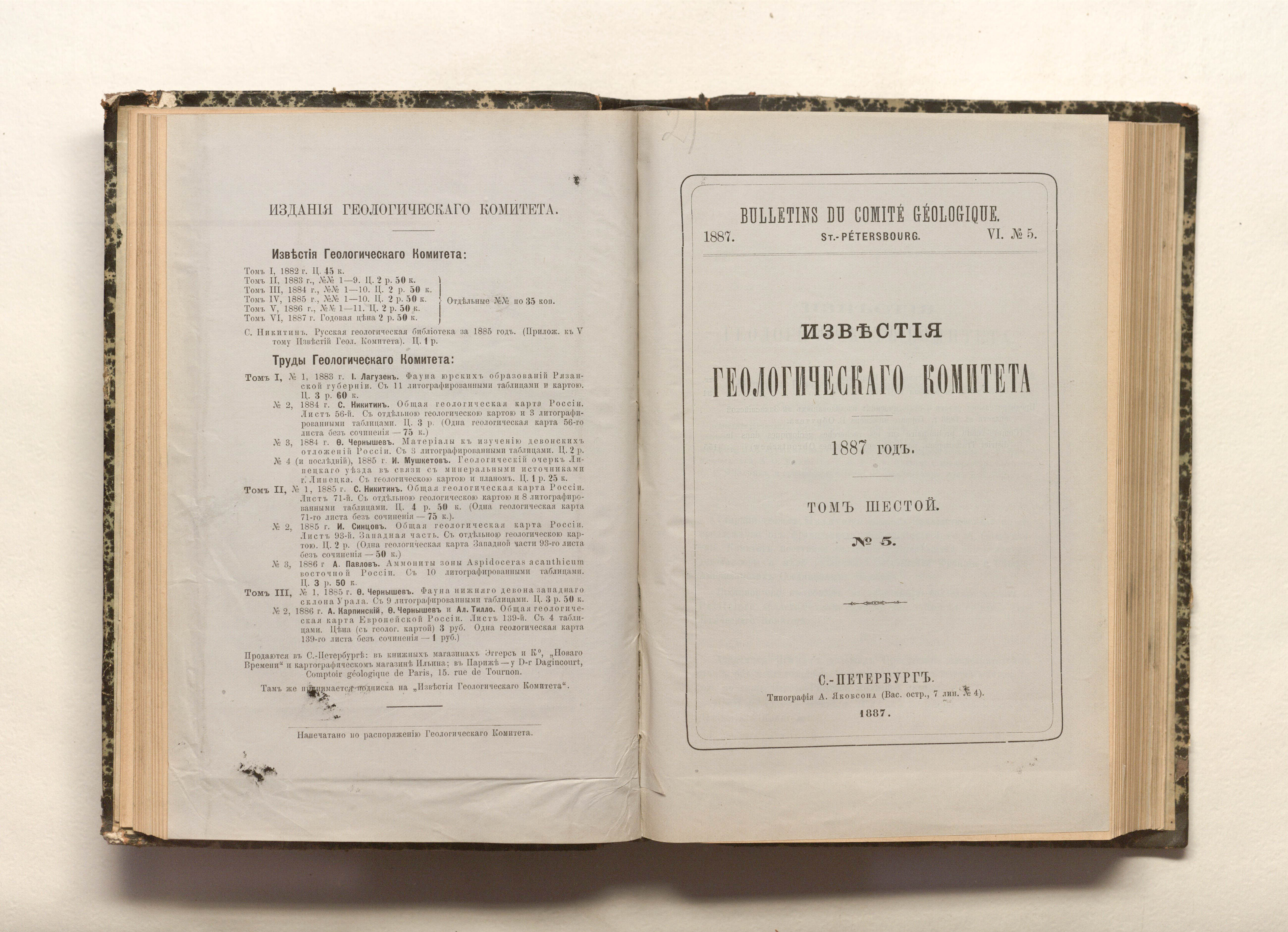Известия геологического комитета. Т. 6. — Санкт-Петербург : типография А. Якобсона, 1887. — разд. паг. : карты. ; 24,5х17 см.