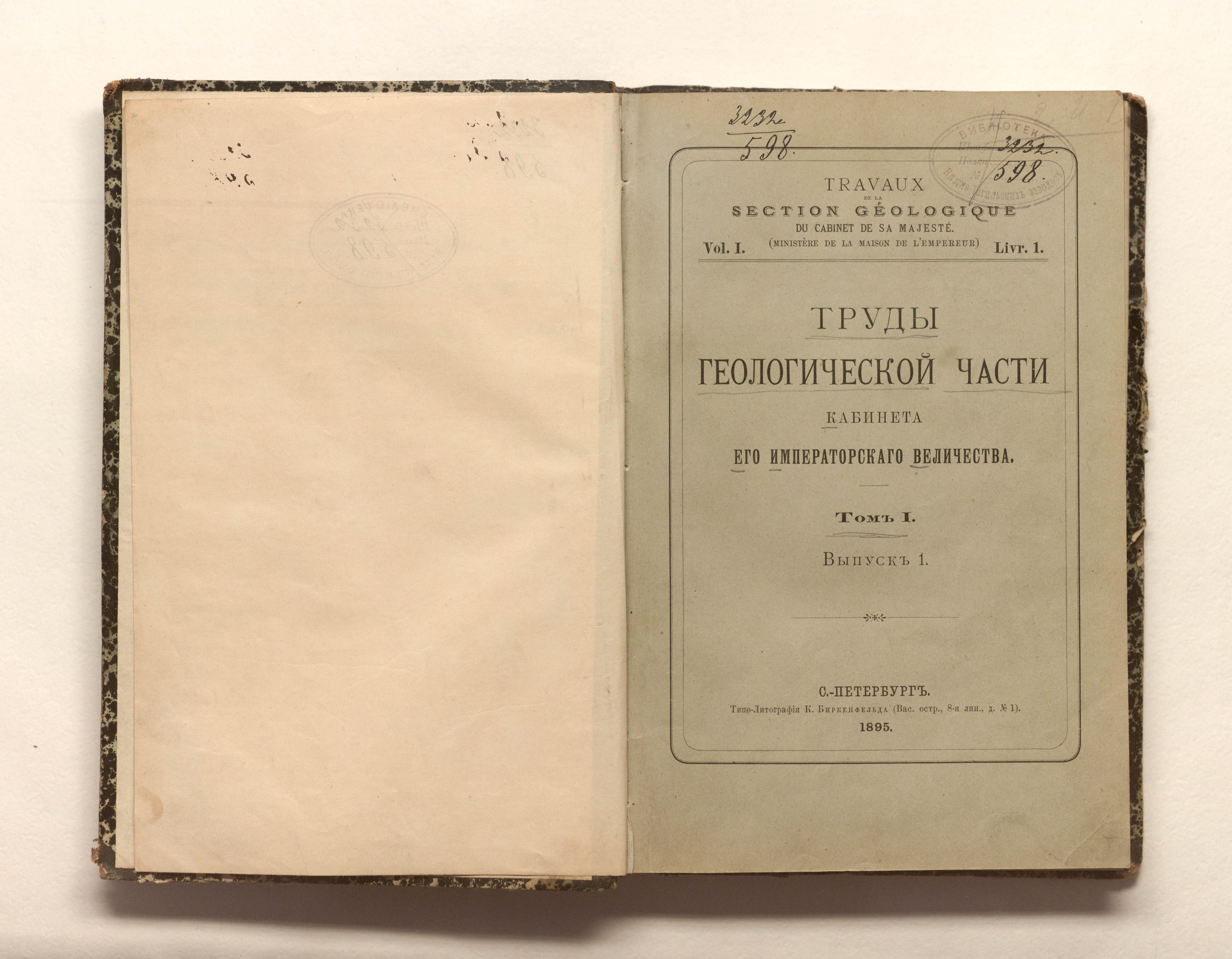 Труды Геологической части Кабинета его императорского величества. Т. 1. — Санкт-Петербург : типо-литография К. Биркенфельда, 1895-1896. — разд. пагинация : ил. ; 25х16,5 см.