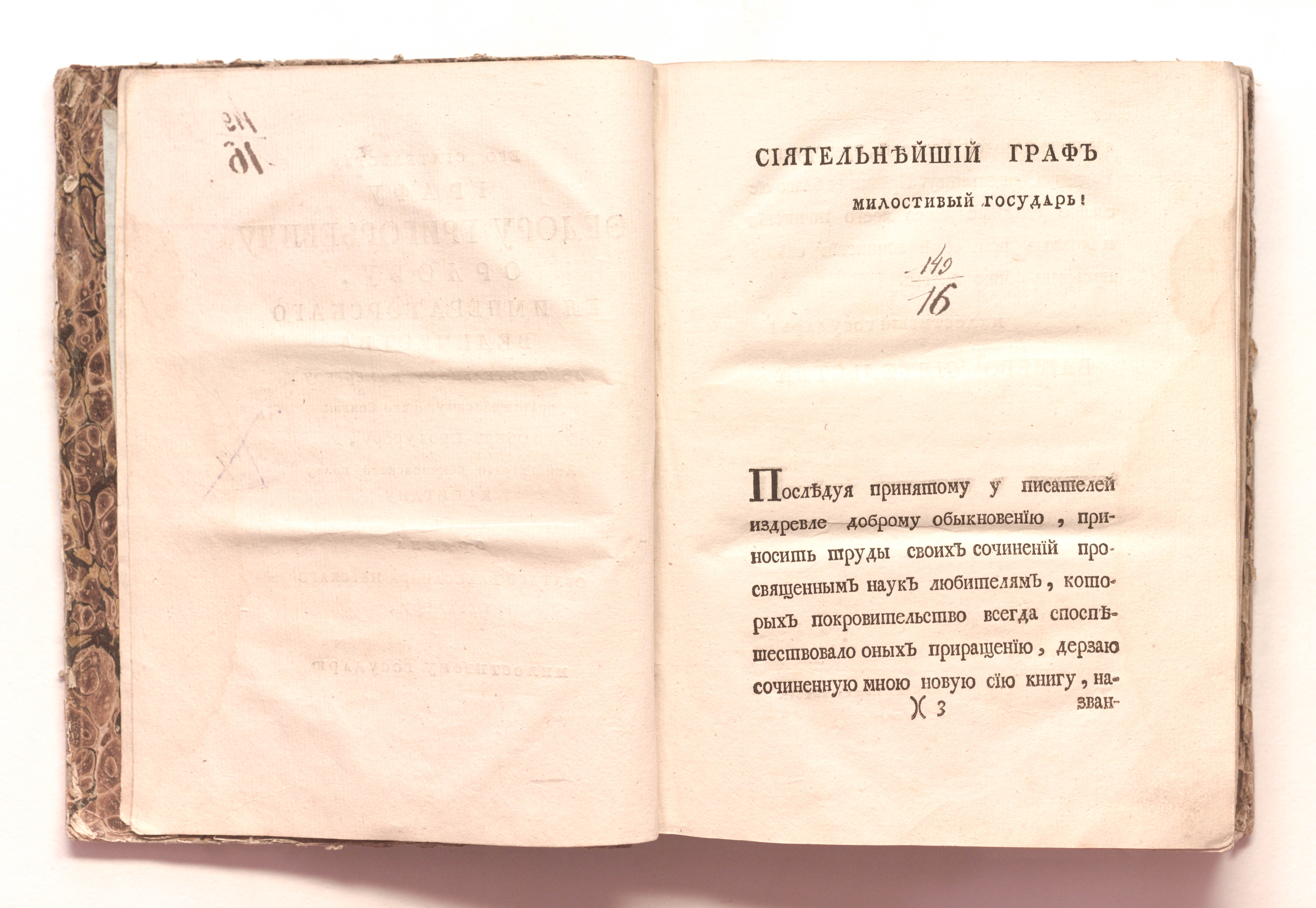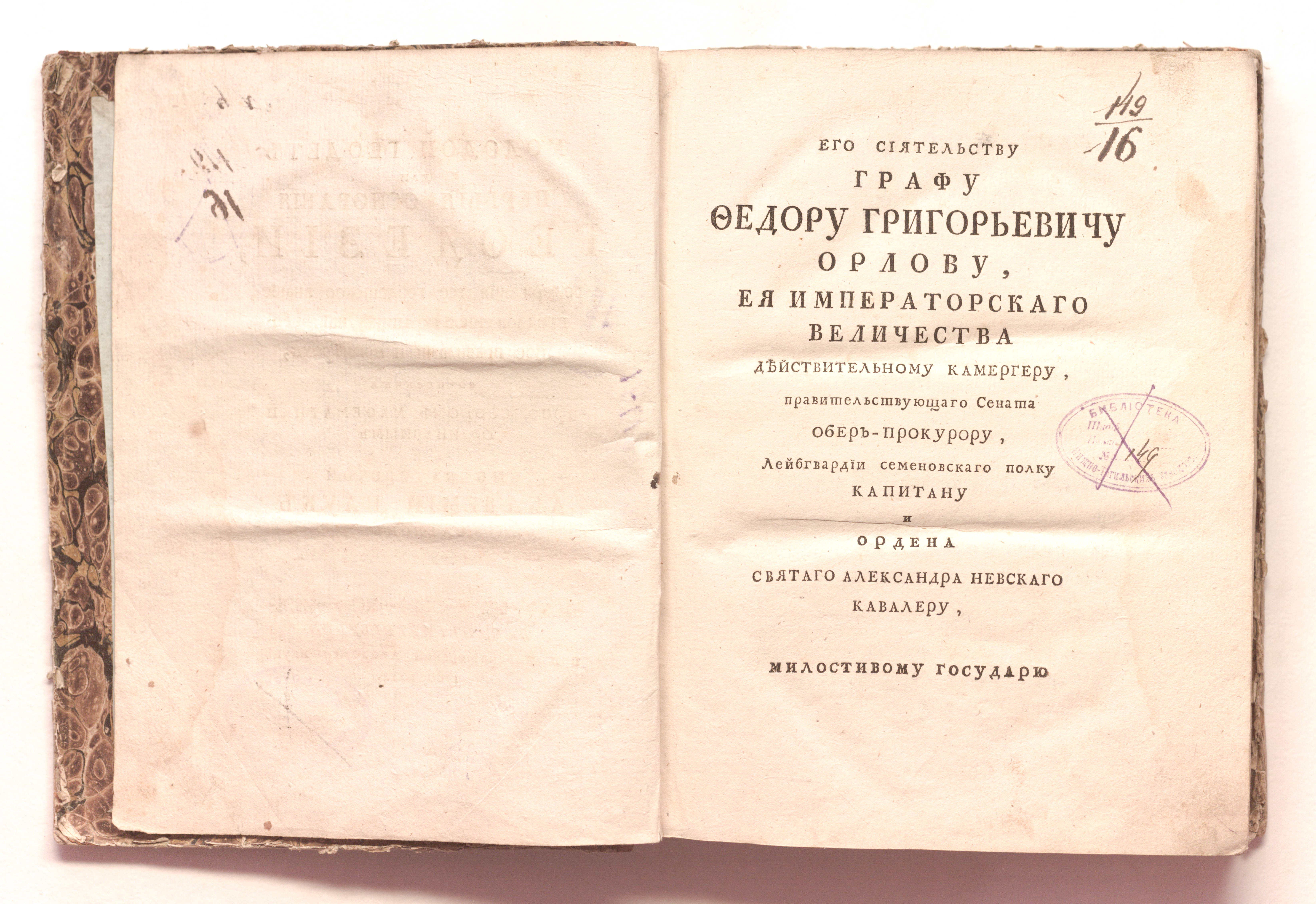 Книга в полукожаном владельческом переплете. Мраморная бумага.