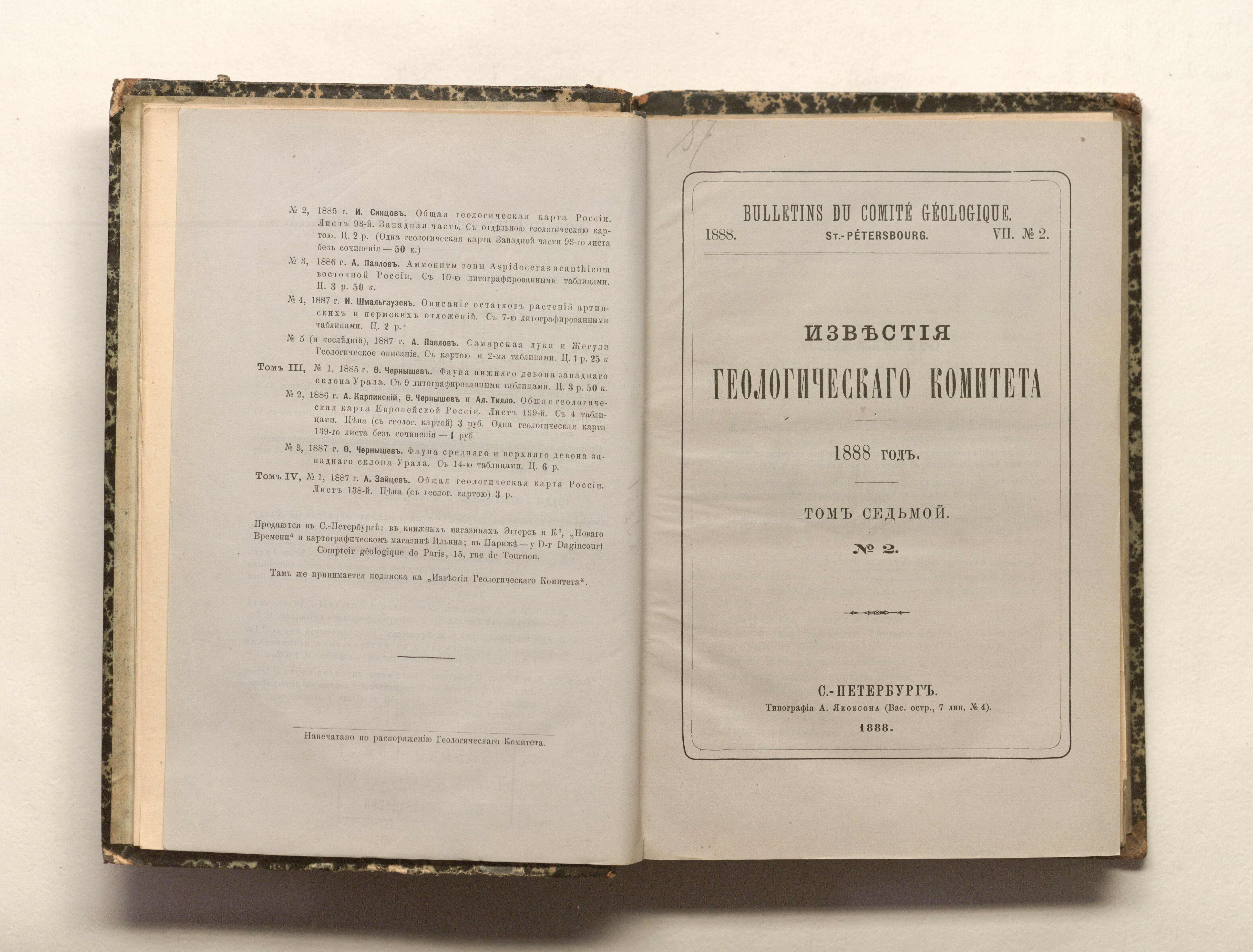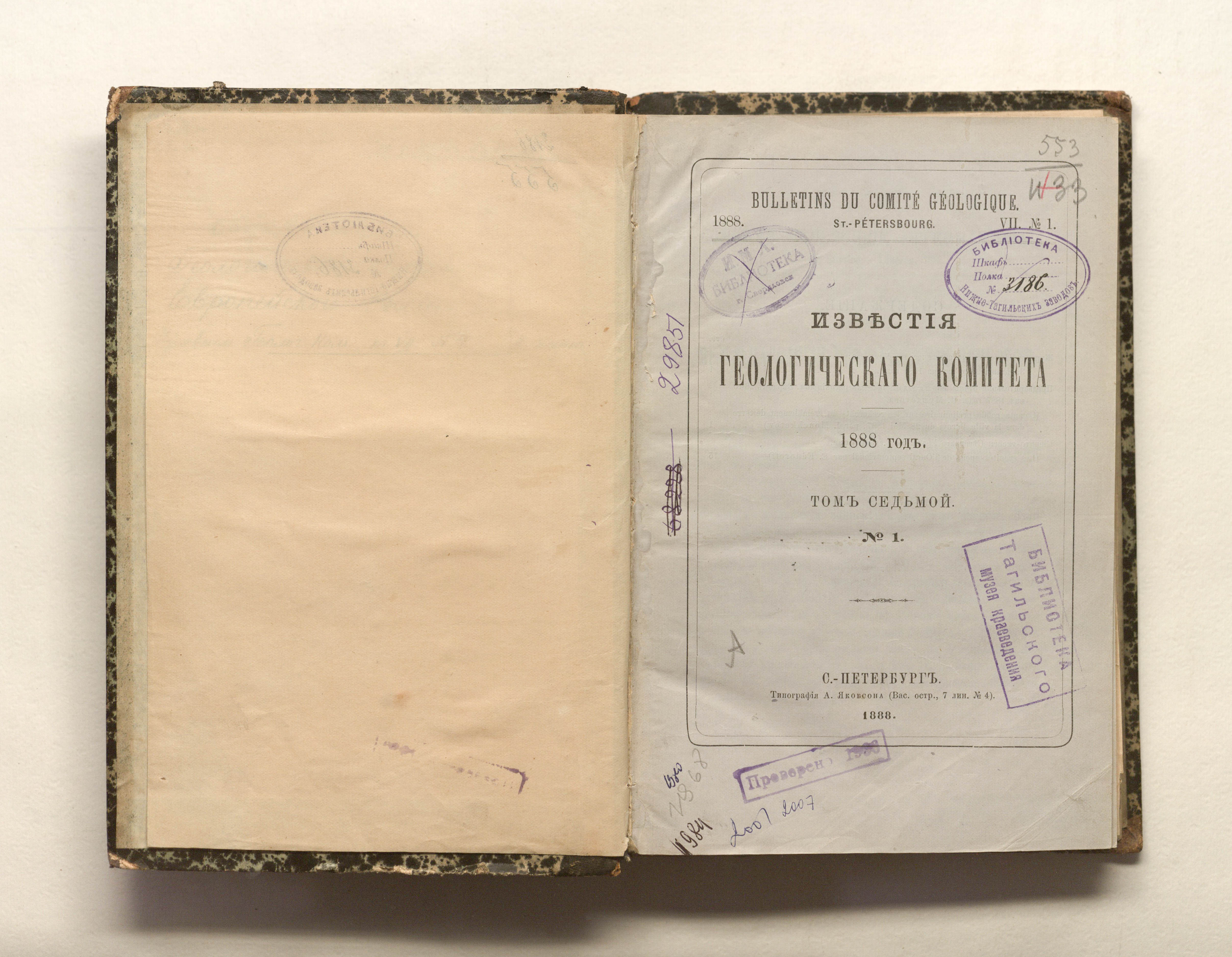Известия геологического комитета. Т. 7. — Санкт-Петербург : типография А. Якобсона, 1888. — разд. паг. : карты ; 24,5х17 см.
