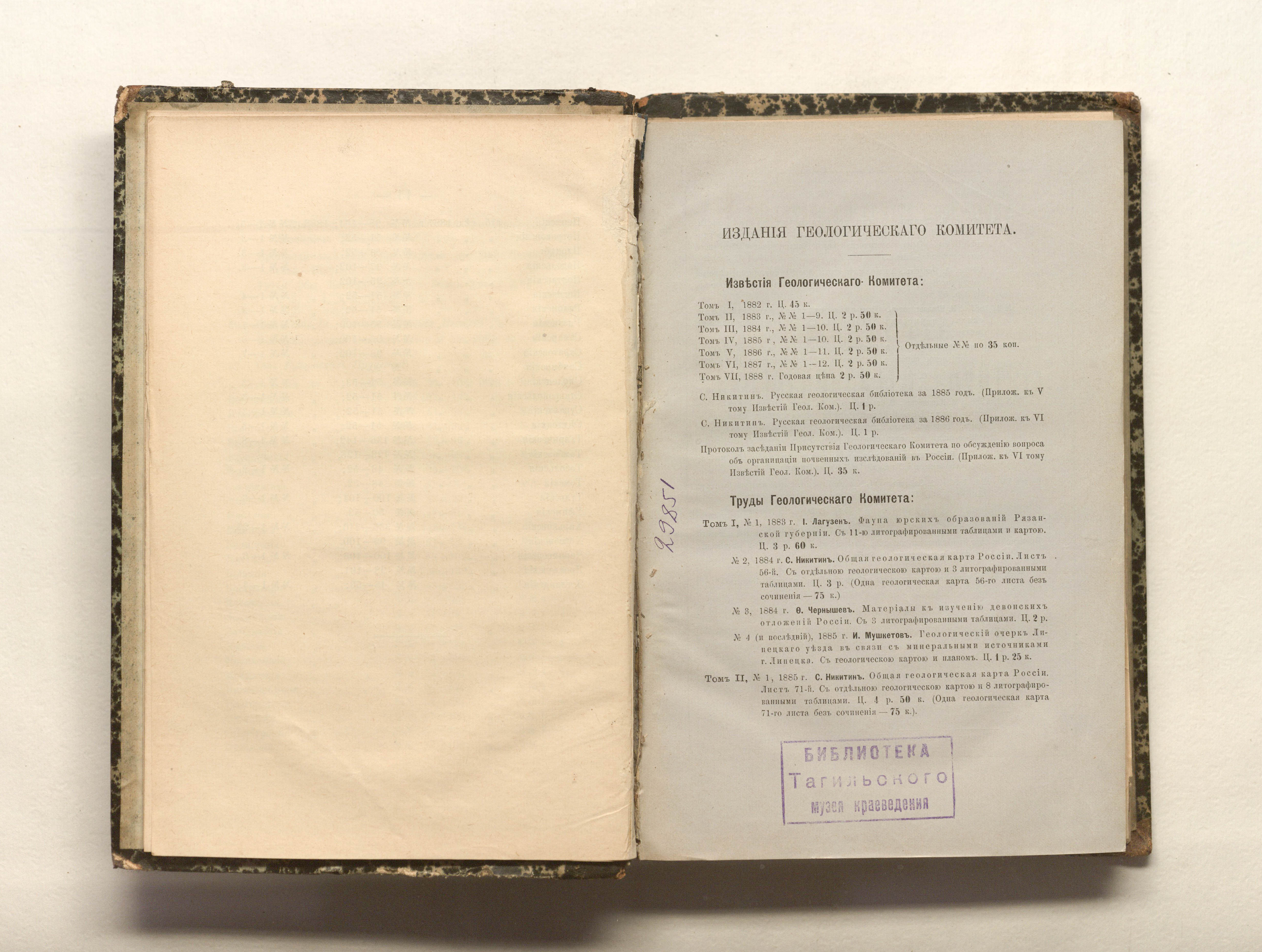 «Библиотека Нижне-Тагильских заводов. № 3186» (форзац, тит. л.);