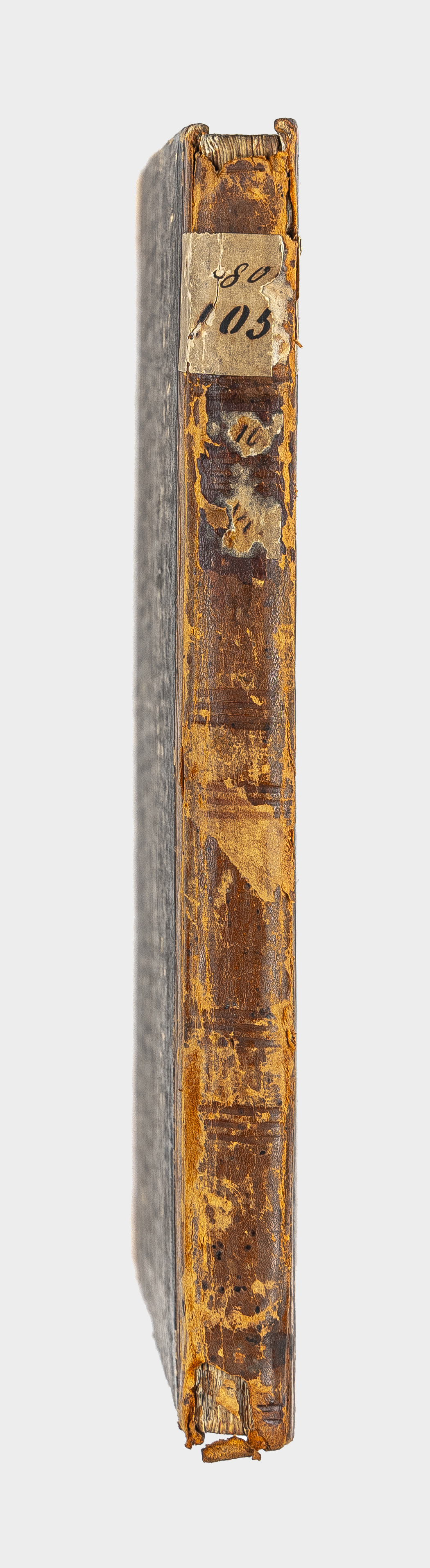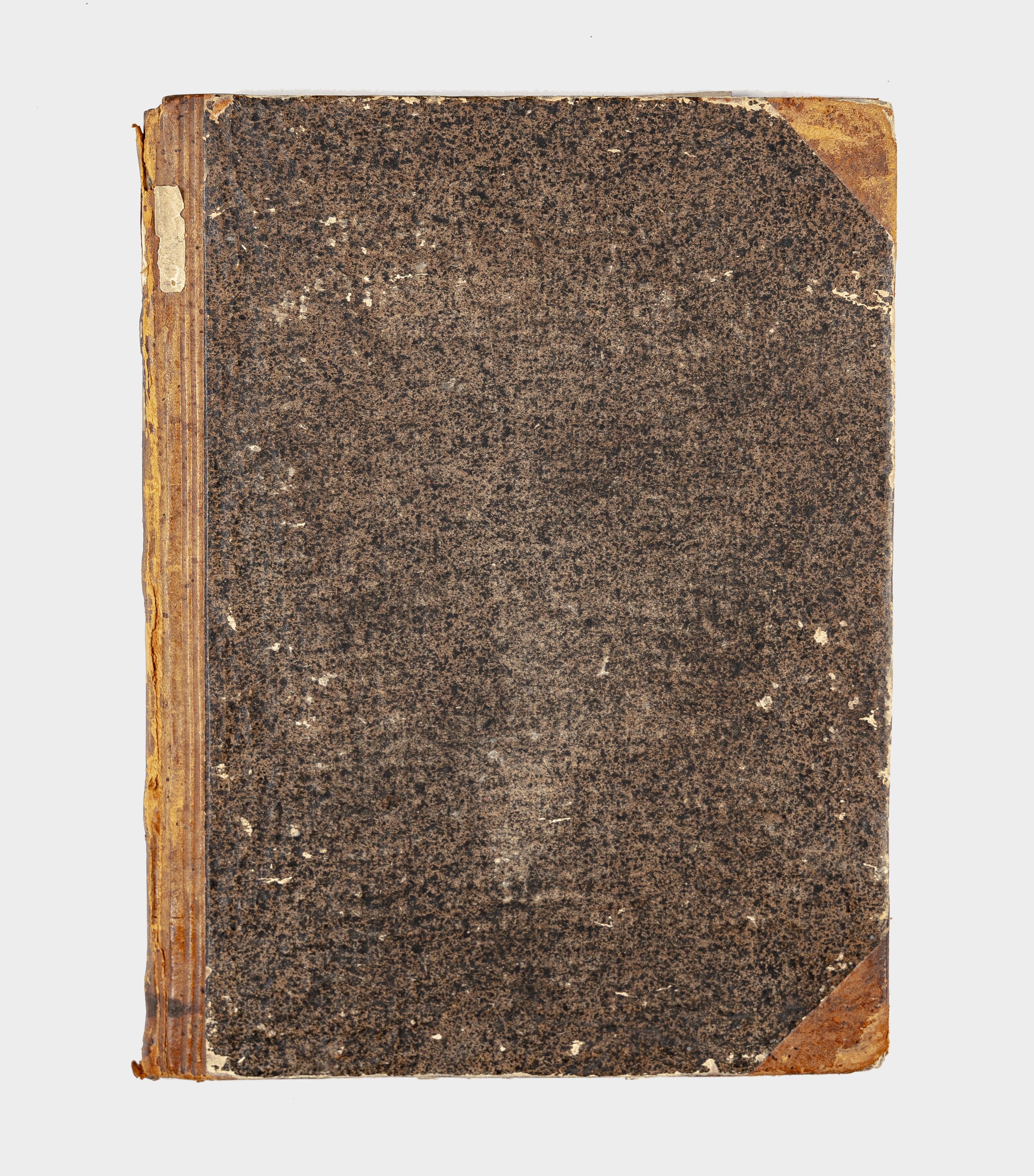 Книга в полукожаном владельческом переплете. Крышки переплета обтянуты бумагой с рисунком «под мрамор». Обрез тонированный. Бумага верже.