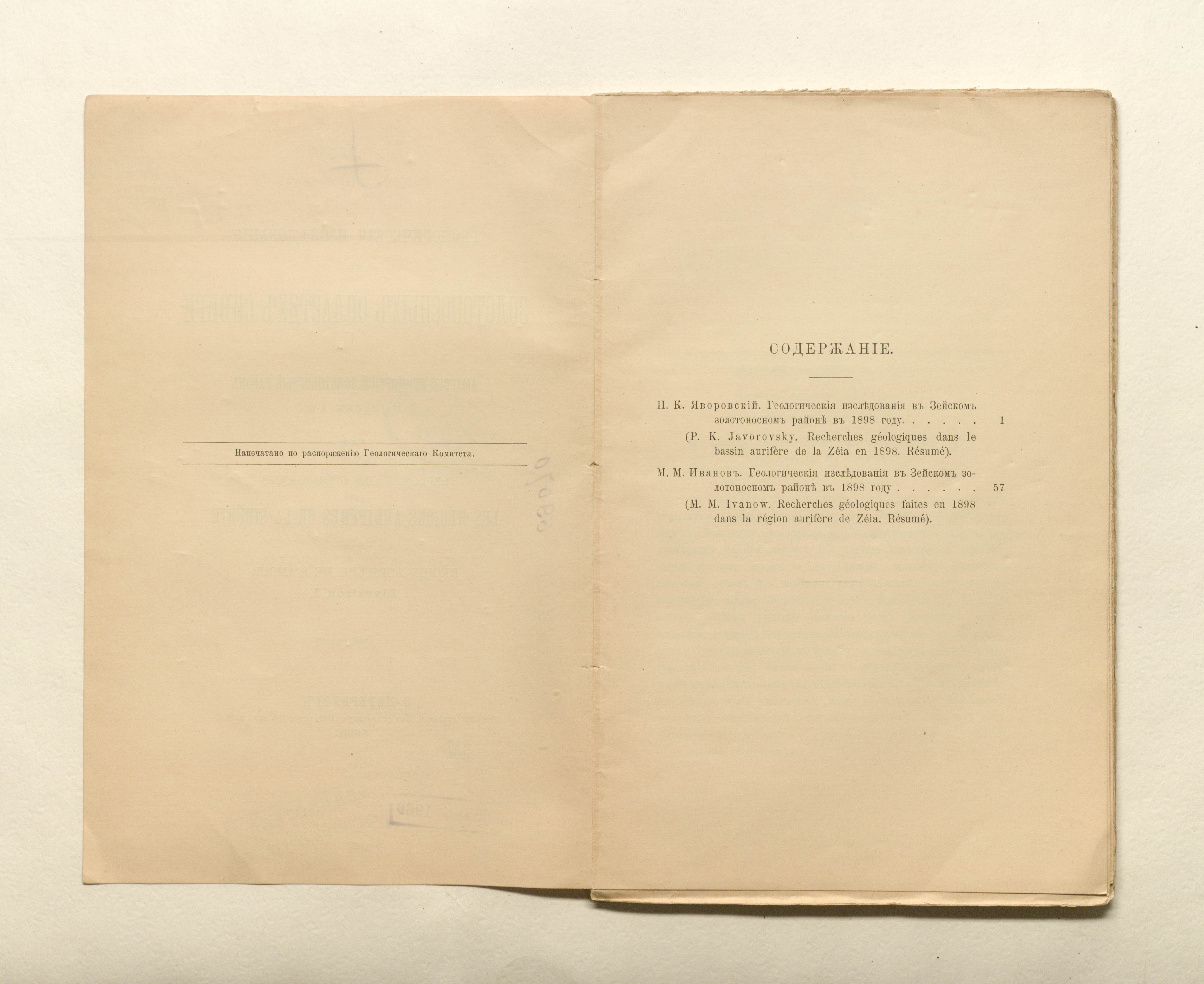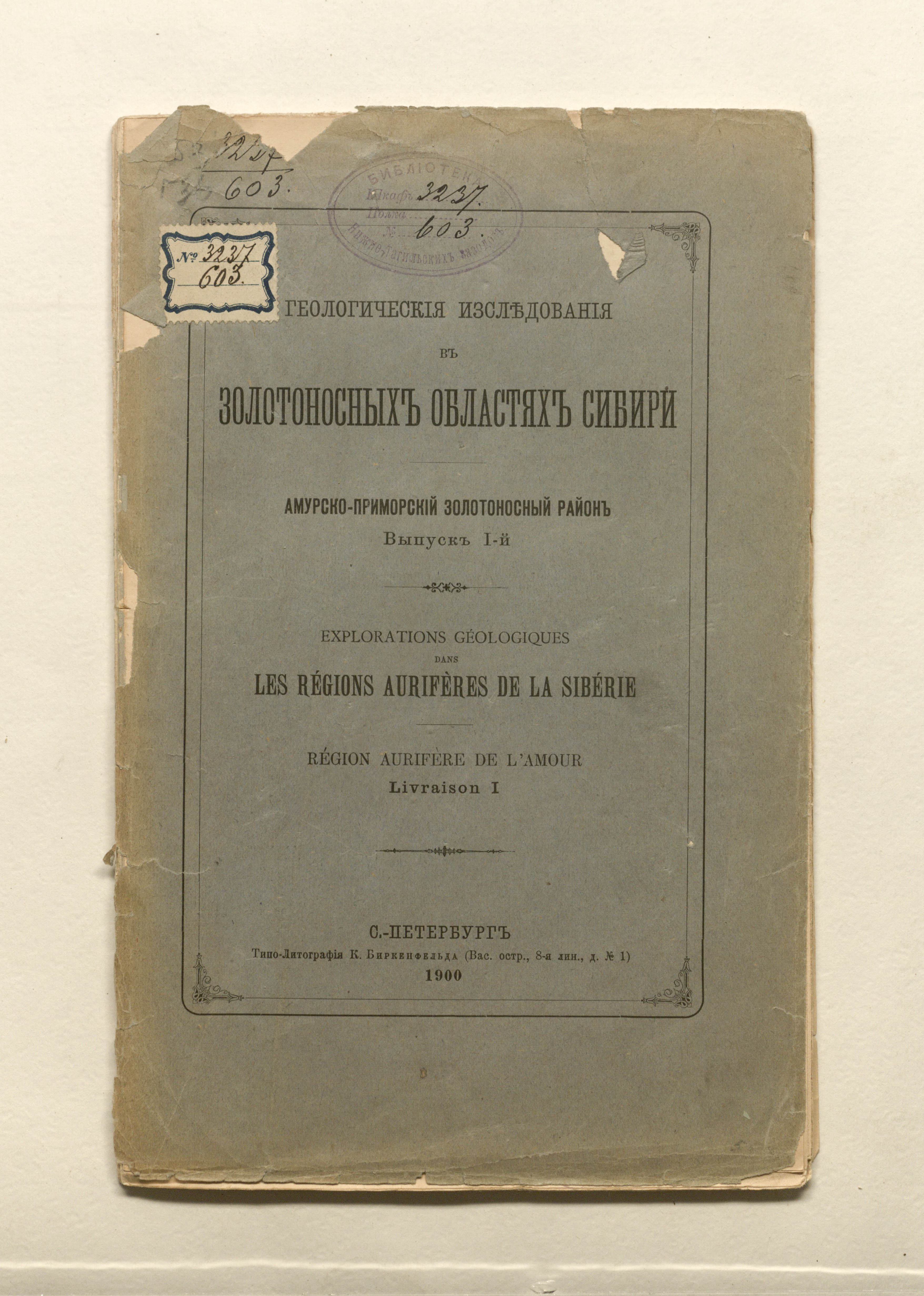 Геологические исследования в золотоносных областях Сибири. Вып. I. Амурско-Приморский золотоносный район. — Санкт-Петербург : типо-литография К. Биркенфельда, 1900. — [4], 90 с. ; 25,5х16 см.