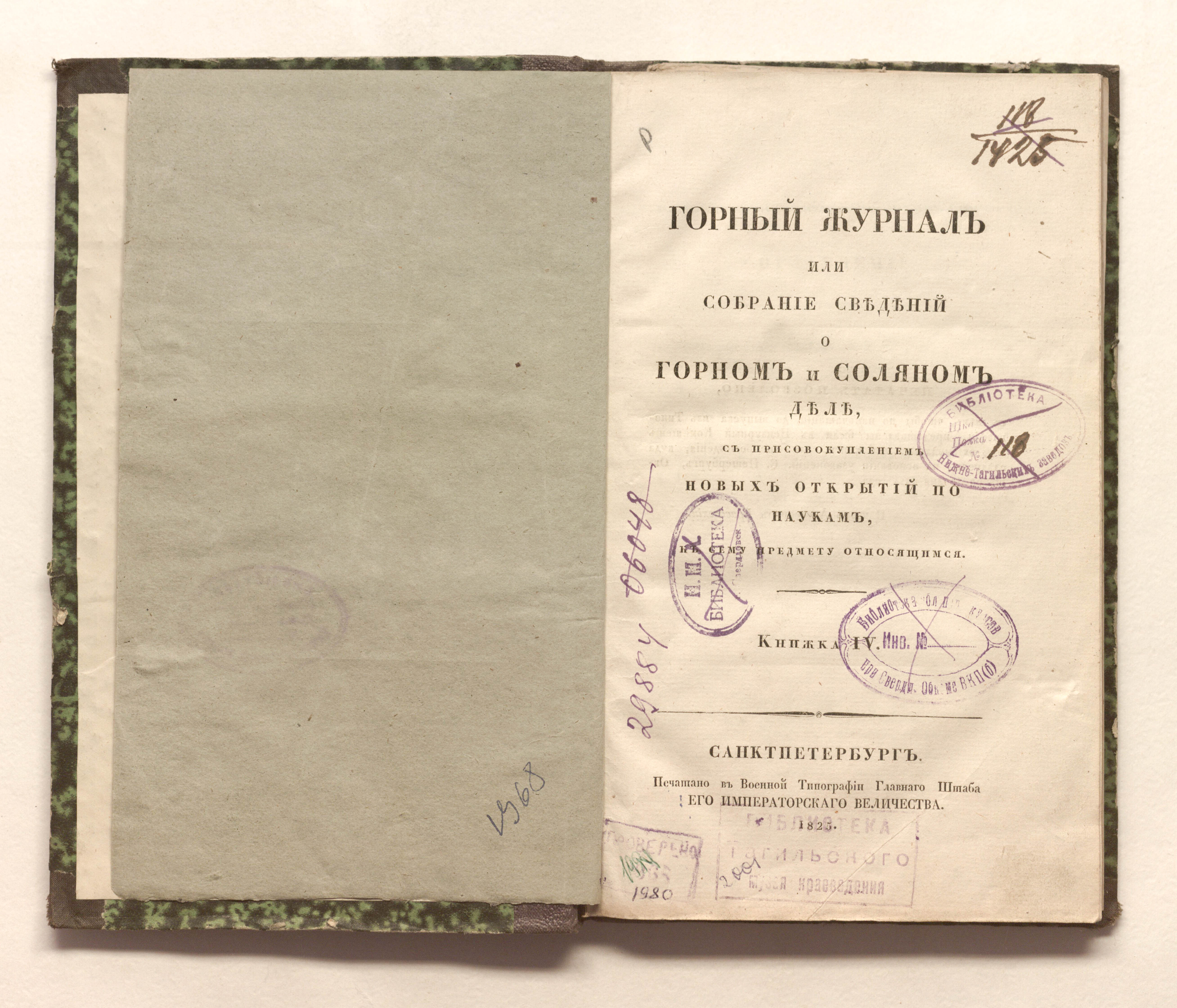 Горный журнал или Собрание сведений о горном и соляном деле, с присовокуплением новых открытий по наукам, к сему предмету относящимся.