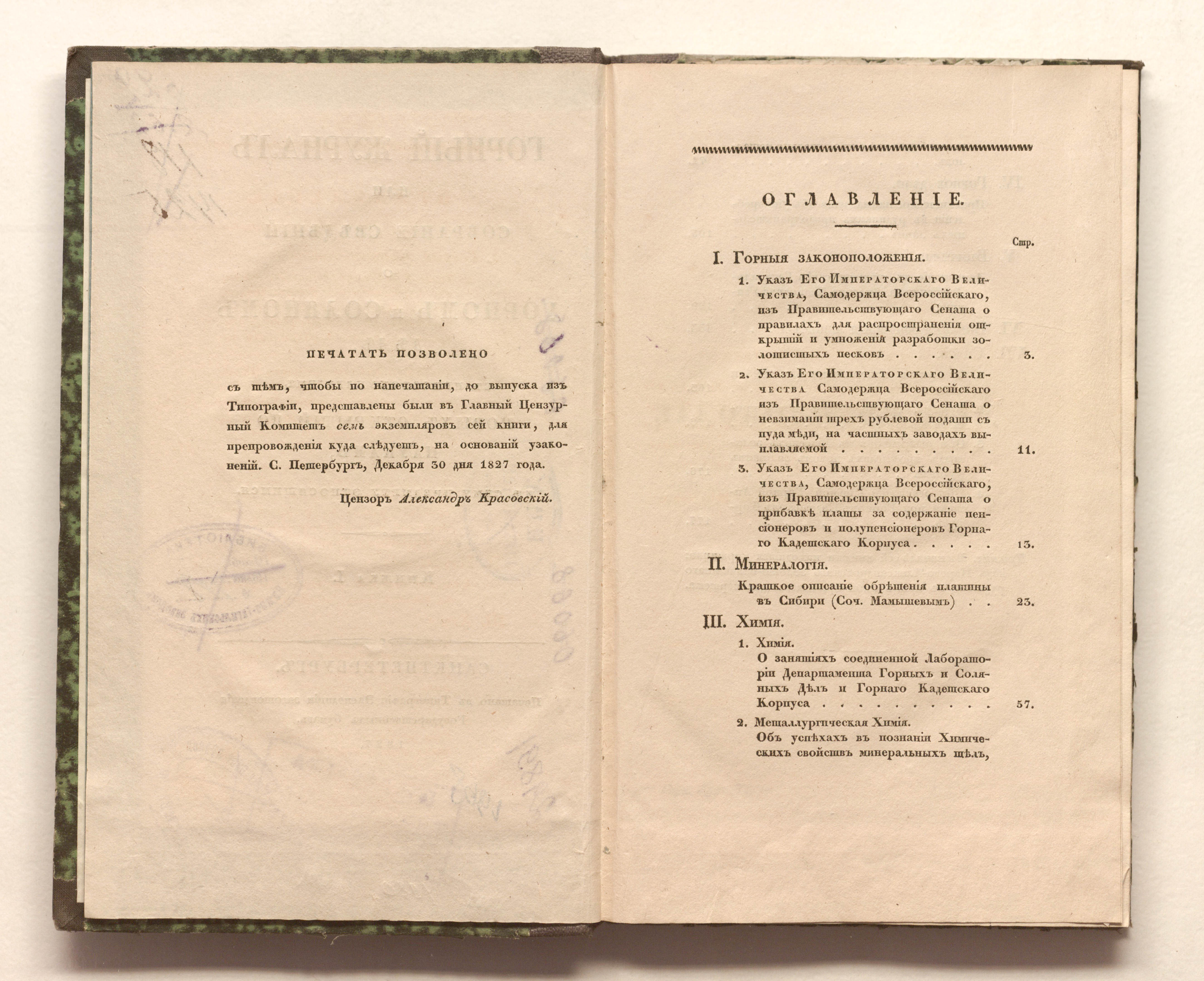 Кн. 1. — Санктпетербург : печатано в типографии Экспедиции заготовления Государственных бумаг, 1827. — [4], 180, [2] с., 1 л. грав. фронт. : 2 л. черт. ; 24х14,5 см.