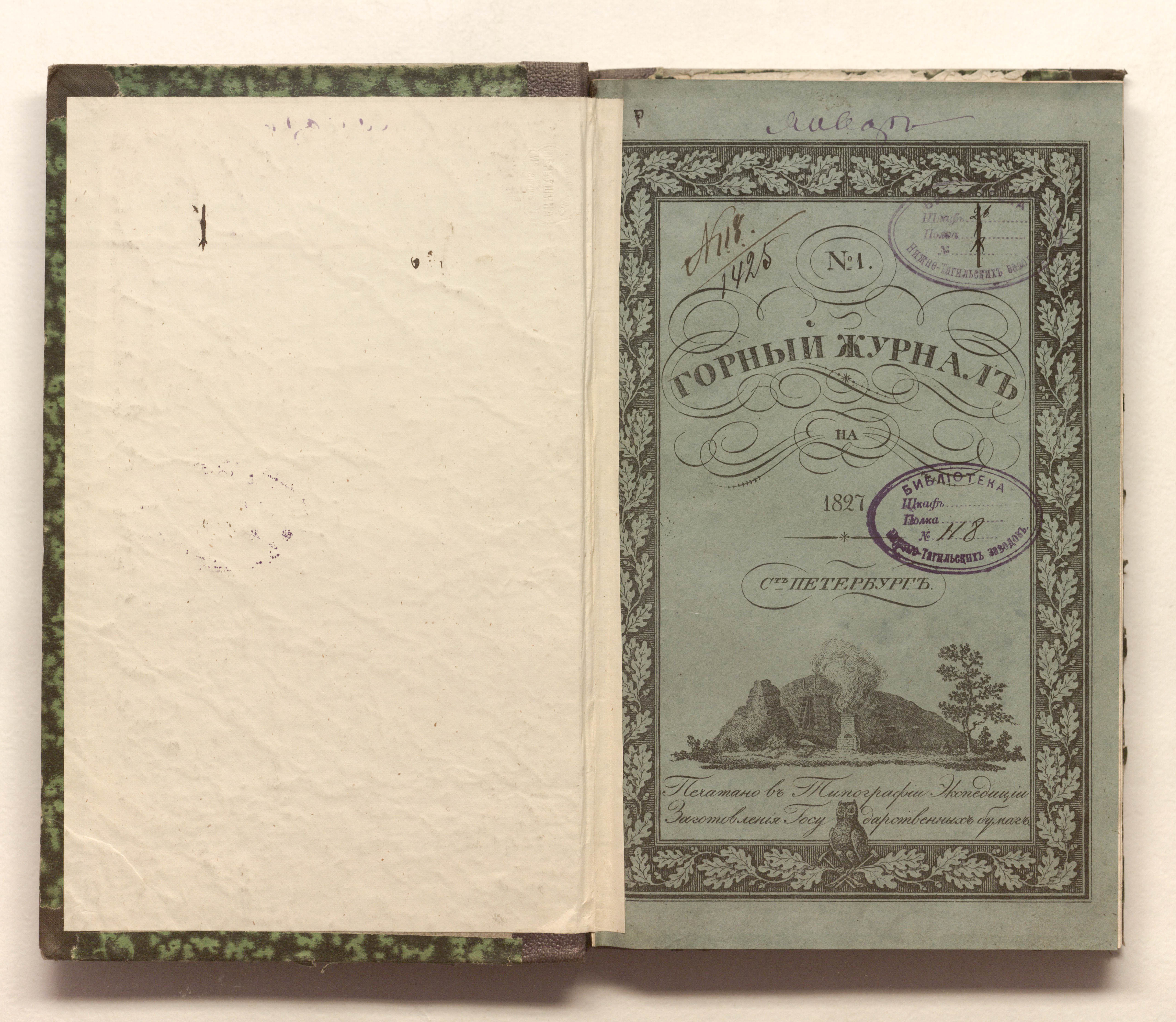 «Библиотека Нижне-Тагильских заводов № 118» (изд. обл., тит. л.);