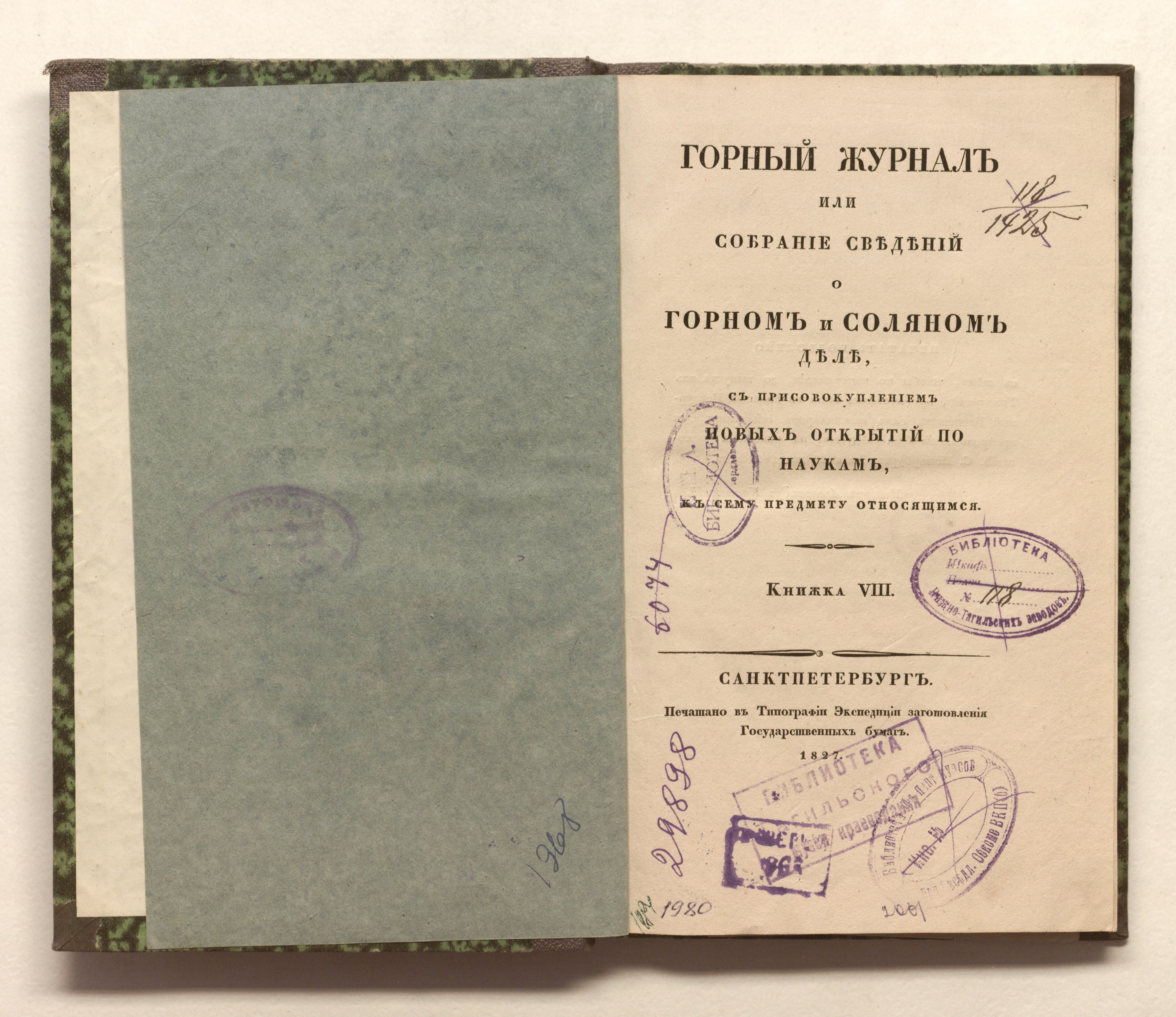 Кн. 8. — Санктпетербург : печатано в типографии Экспедиции заготовления Государственных бумаг, 1827. — [4], 127, [1] с. : [2] л. табл., [6] л. черт. ; 24х14,5 см.