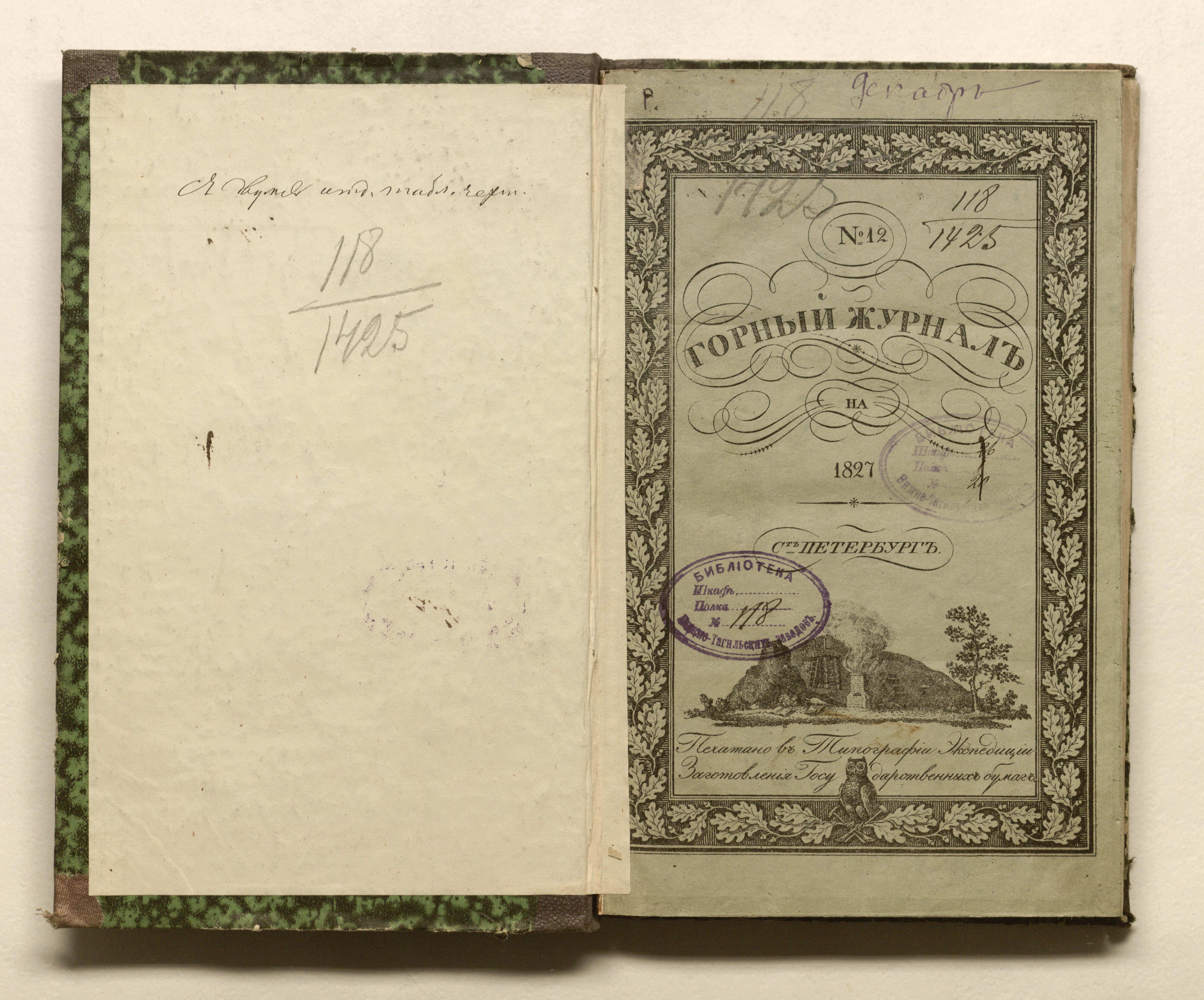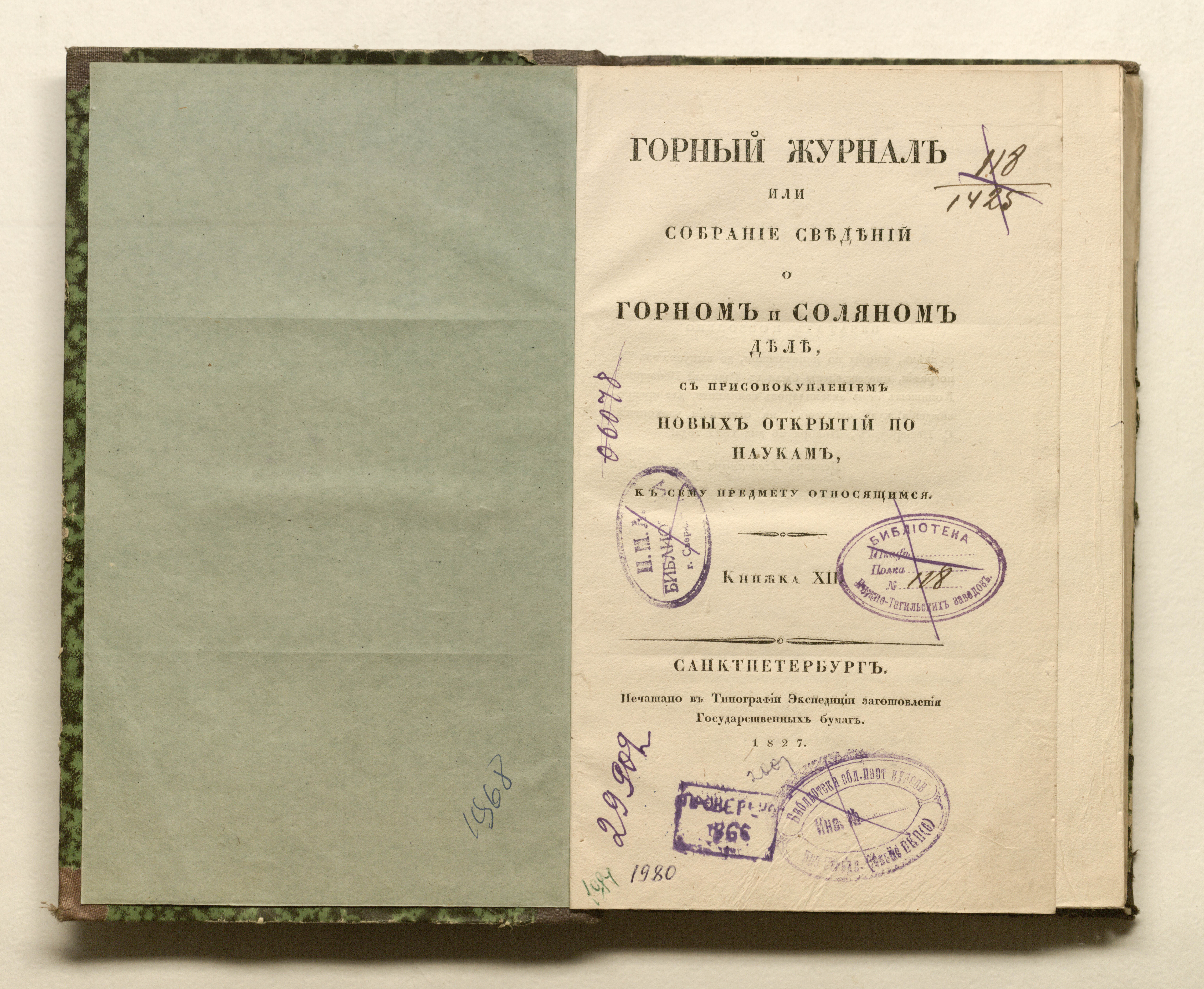 Кн. 12. — Санктпетербург : печатано в типографии Экспедиции заготовления Государственных бумаг, 1827. — [4], 167, [1] с. : [2] л. табл., [2] л. черт. ; 24х14,5 см.