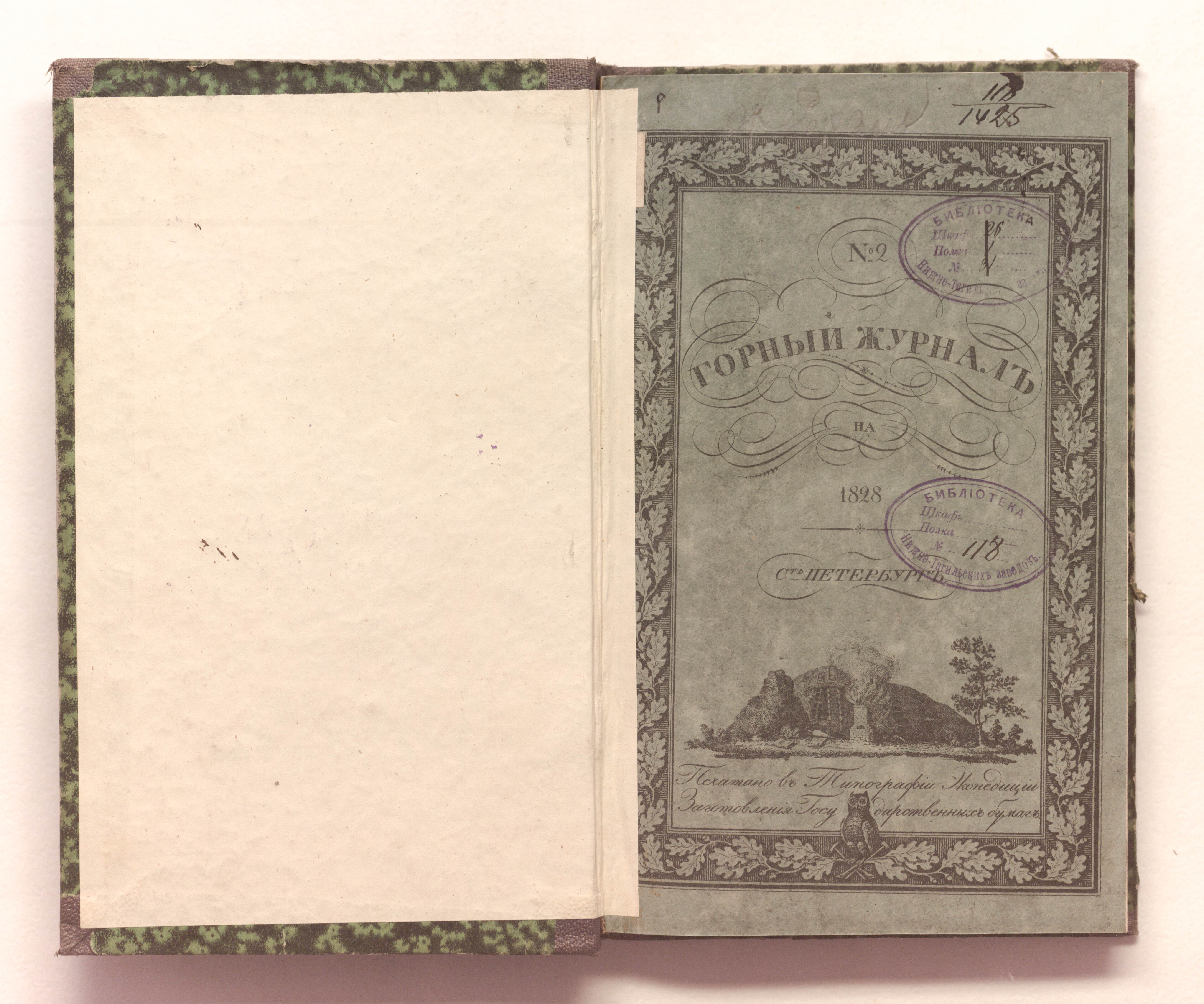 «Библиотека Нижне-Тагильских заводов № 118» (изд. обл., тит. л.);