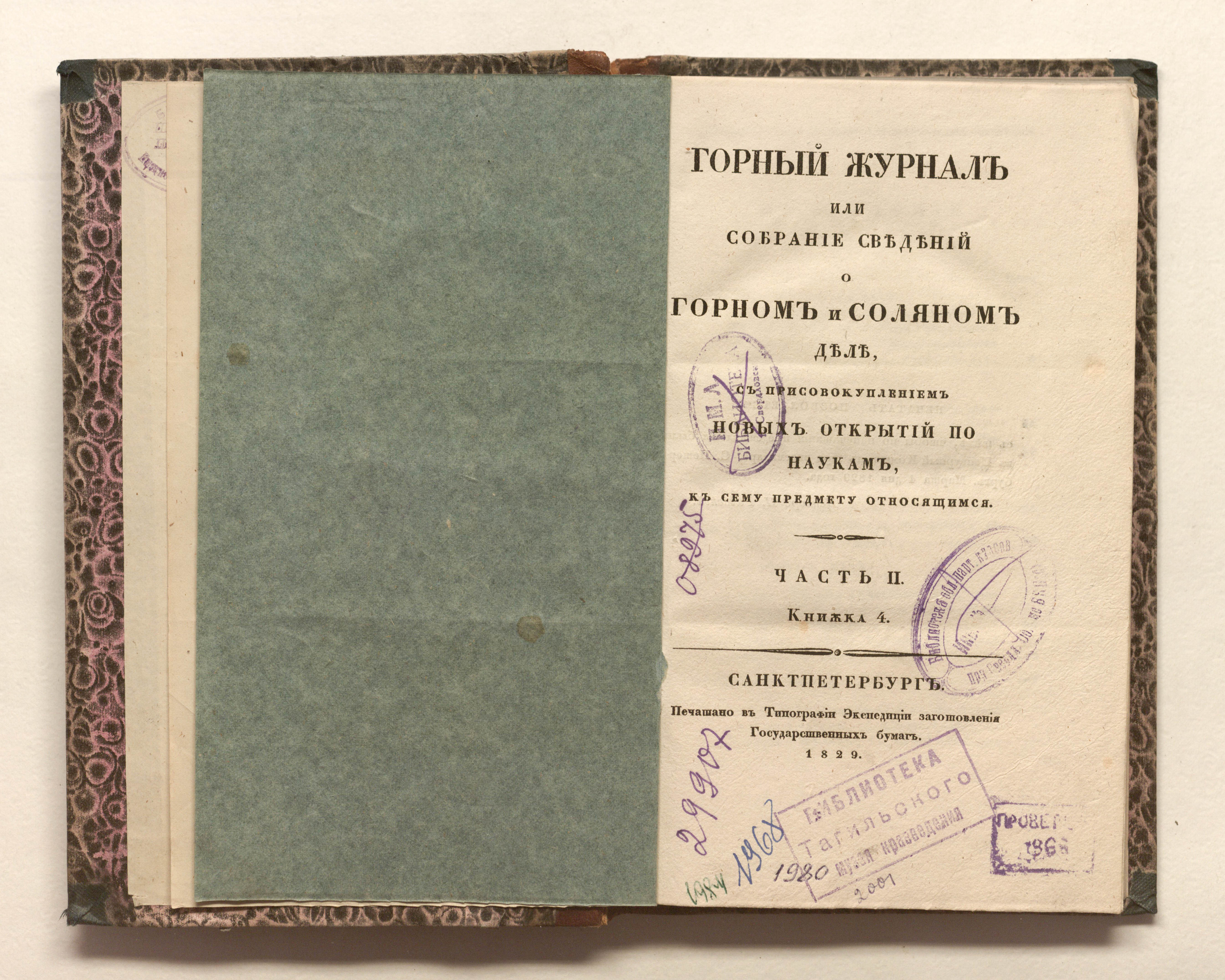 «Библиотека Нижне-Тагильских заводов. № 118» (форзац, изд. обл.);
