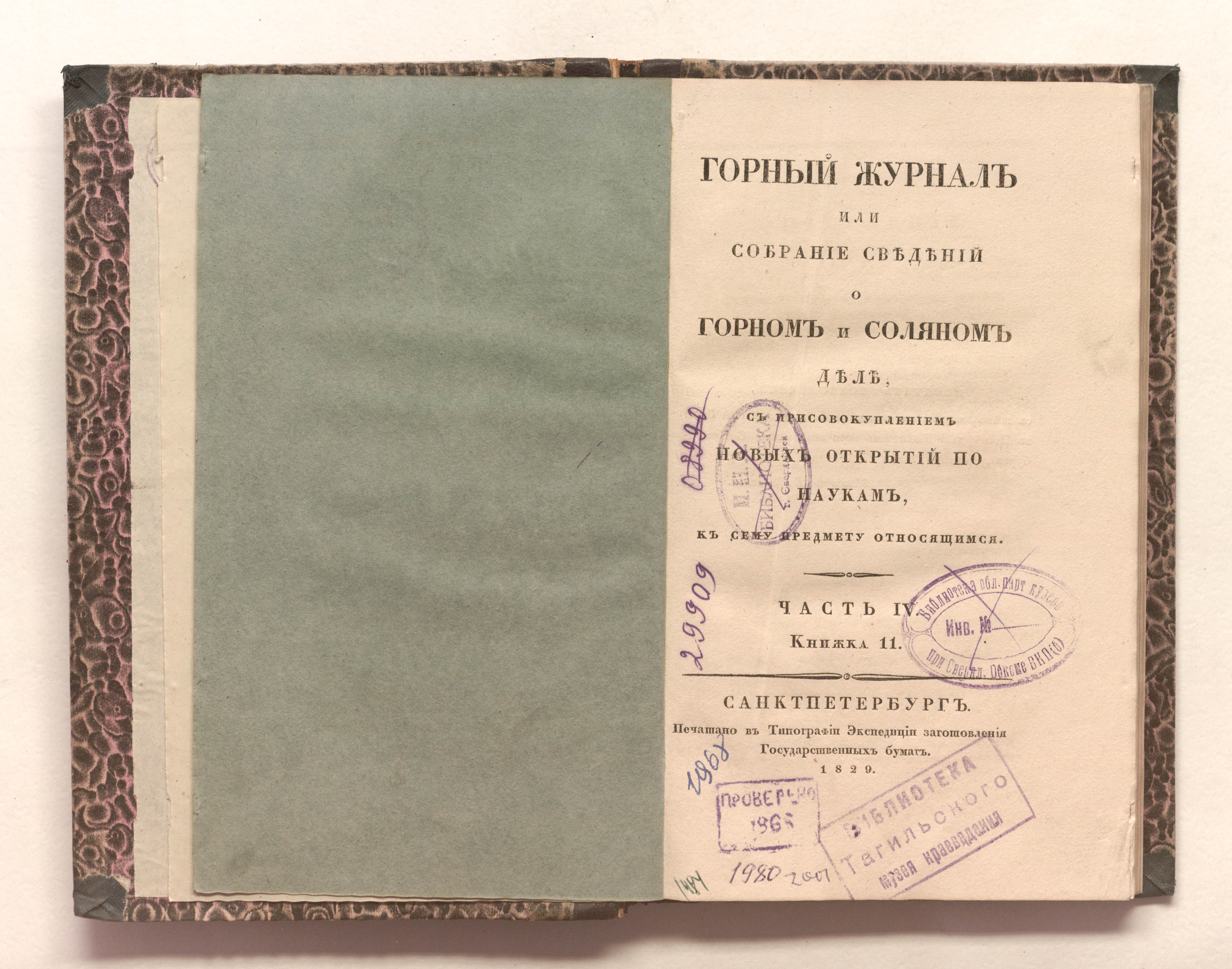 «Библиотека Нижне-Тагильских заводов. № 118» (форзац, изд. обл.);