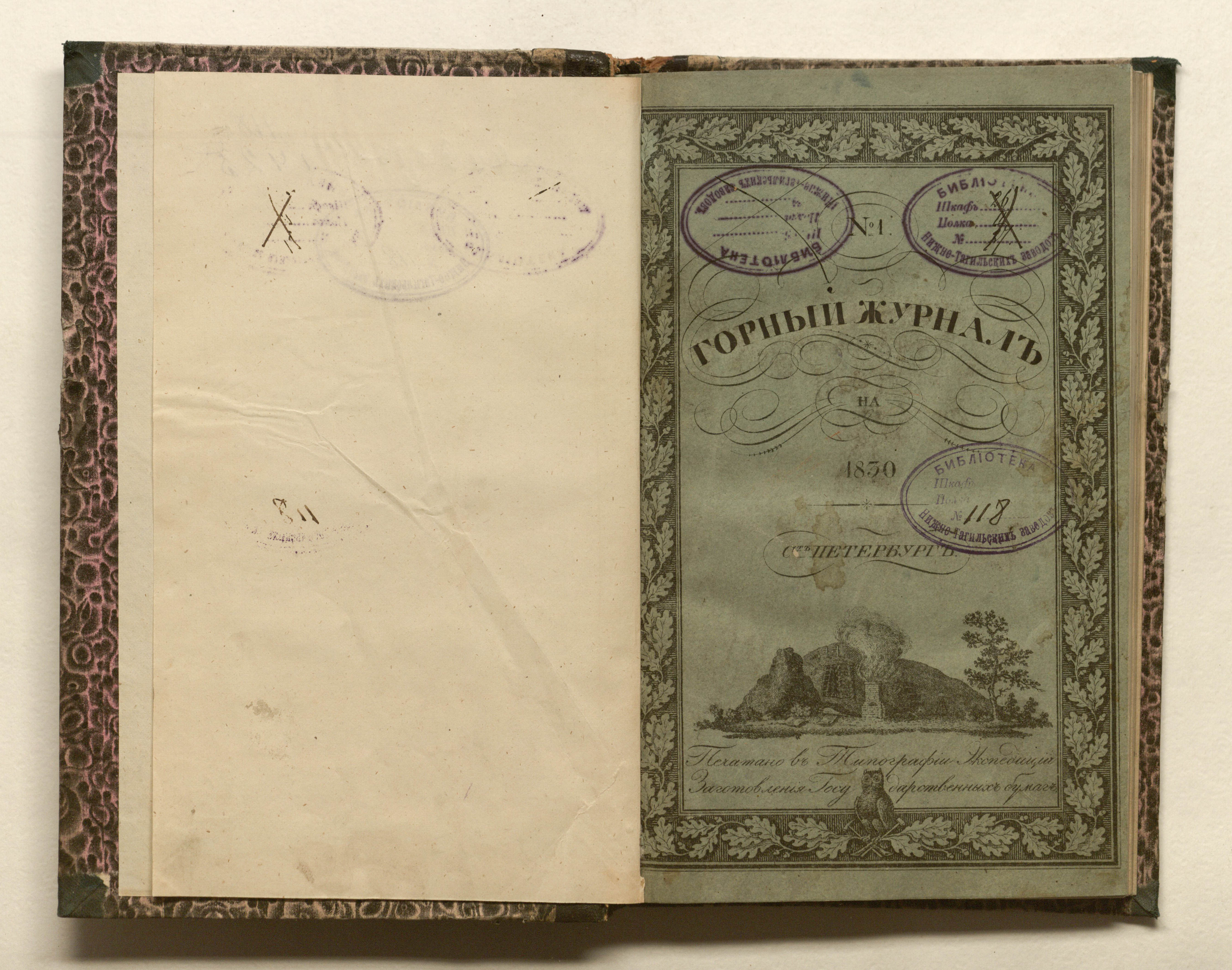 «Библиотека Нижне-Тагильских заводов. № 118» (форзац, изд. обл.);